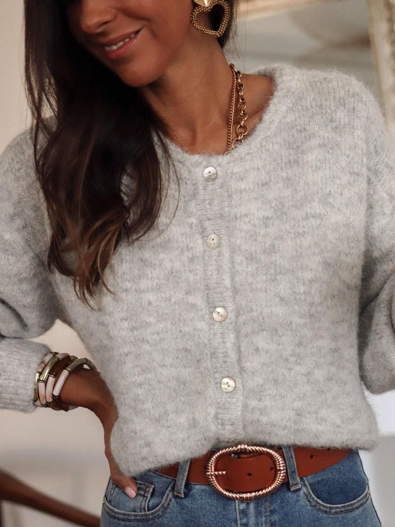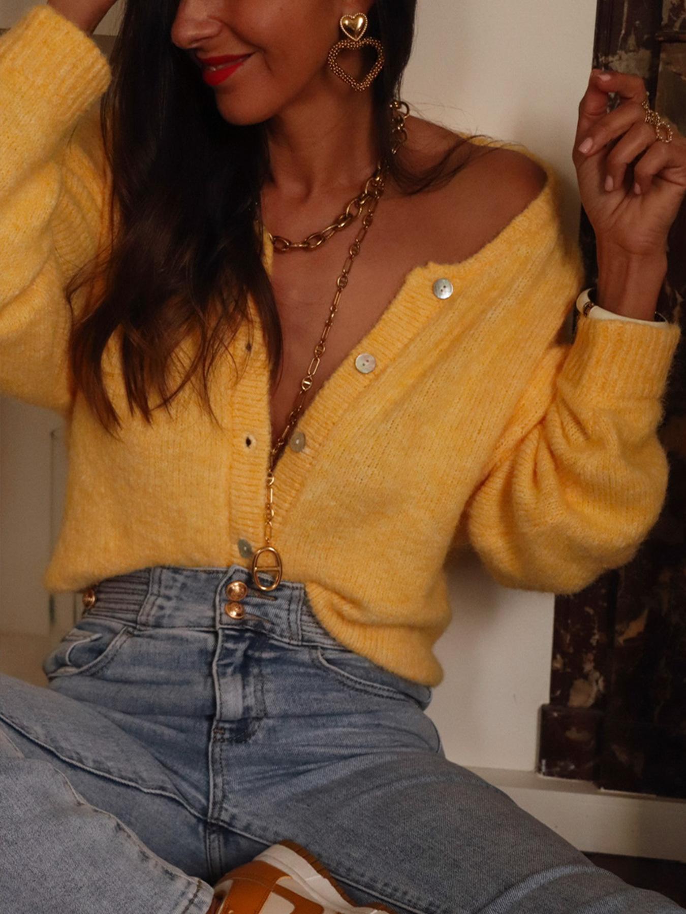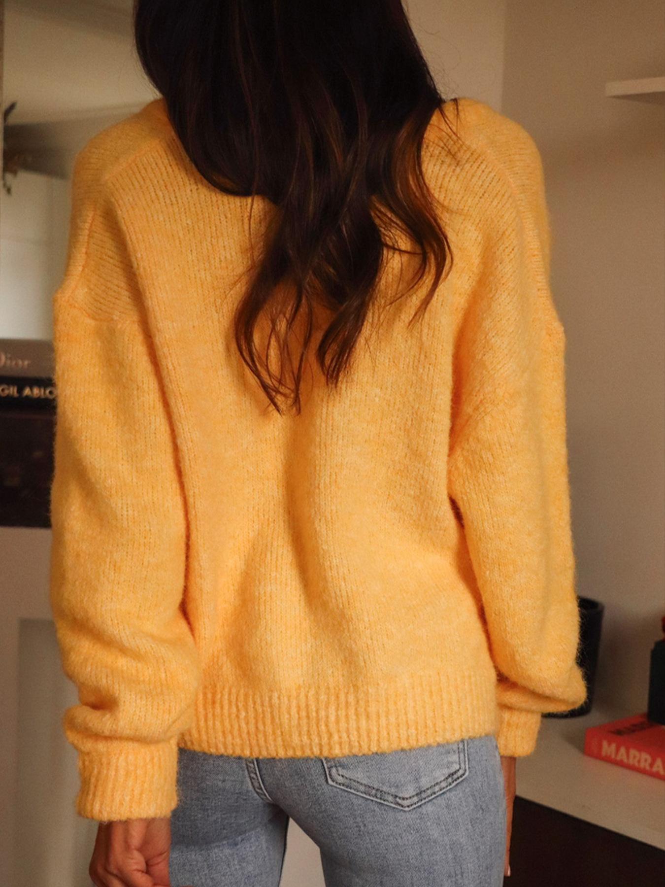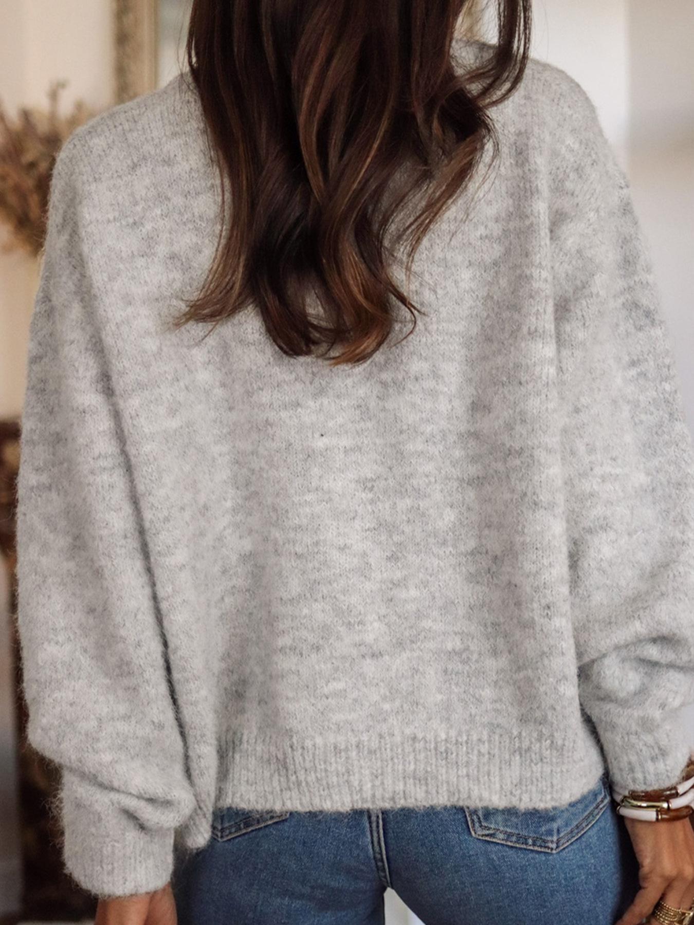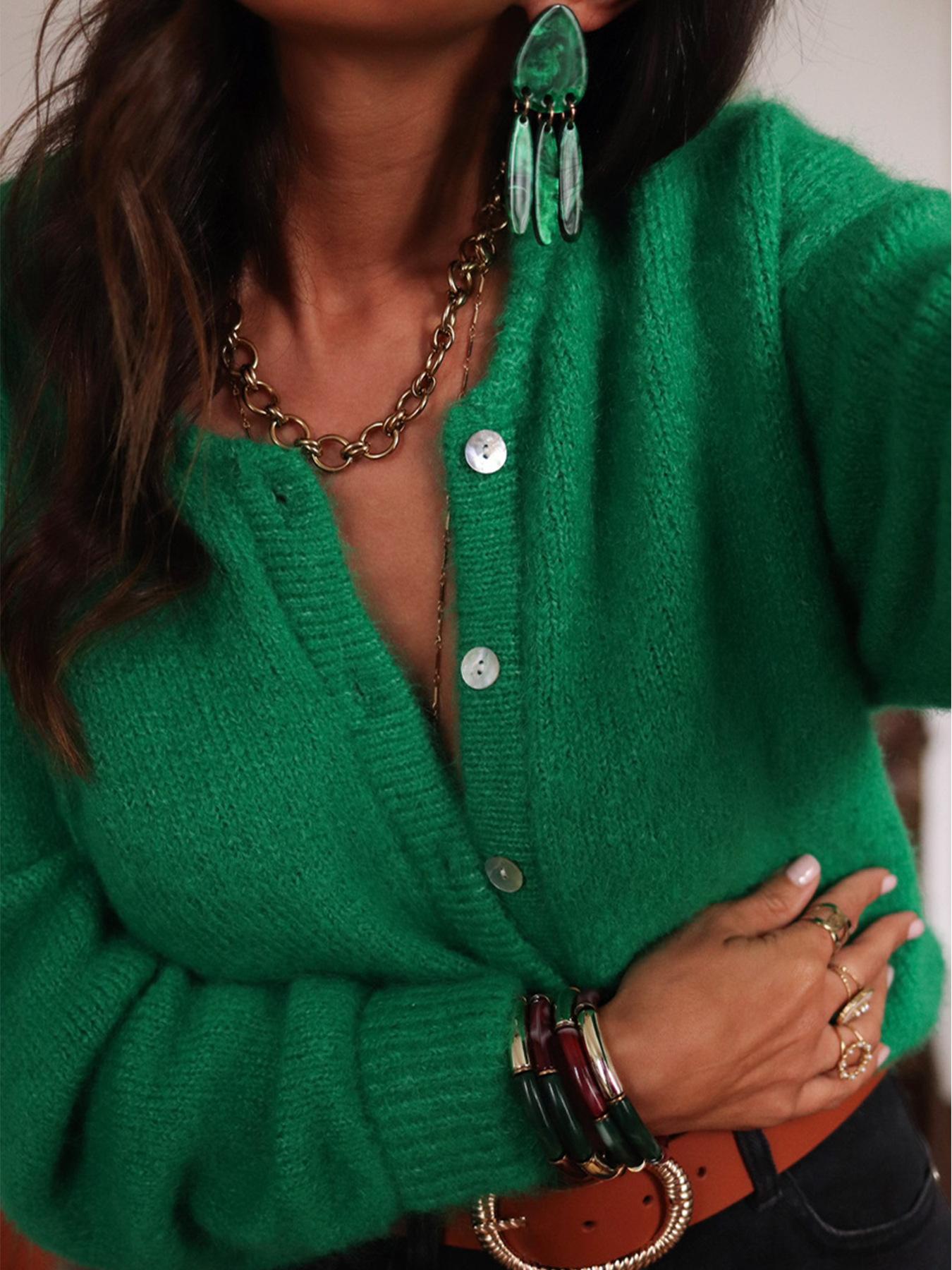 Cárdigan de punto de felpa de color puro transfronterizo europeo y americano con cuello en V profundo, top suelto y sexy, moda perezosa, suéter de otoño e invierno