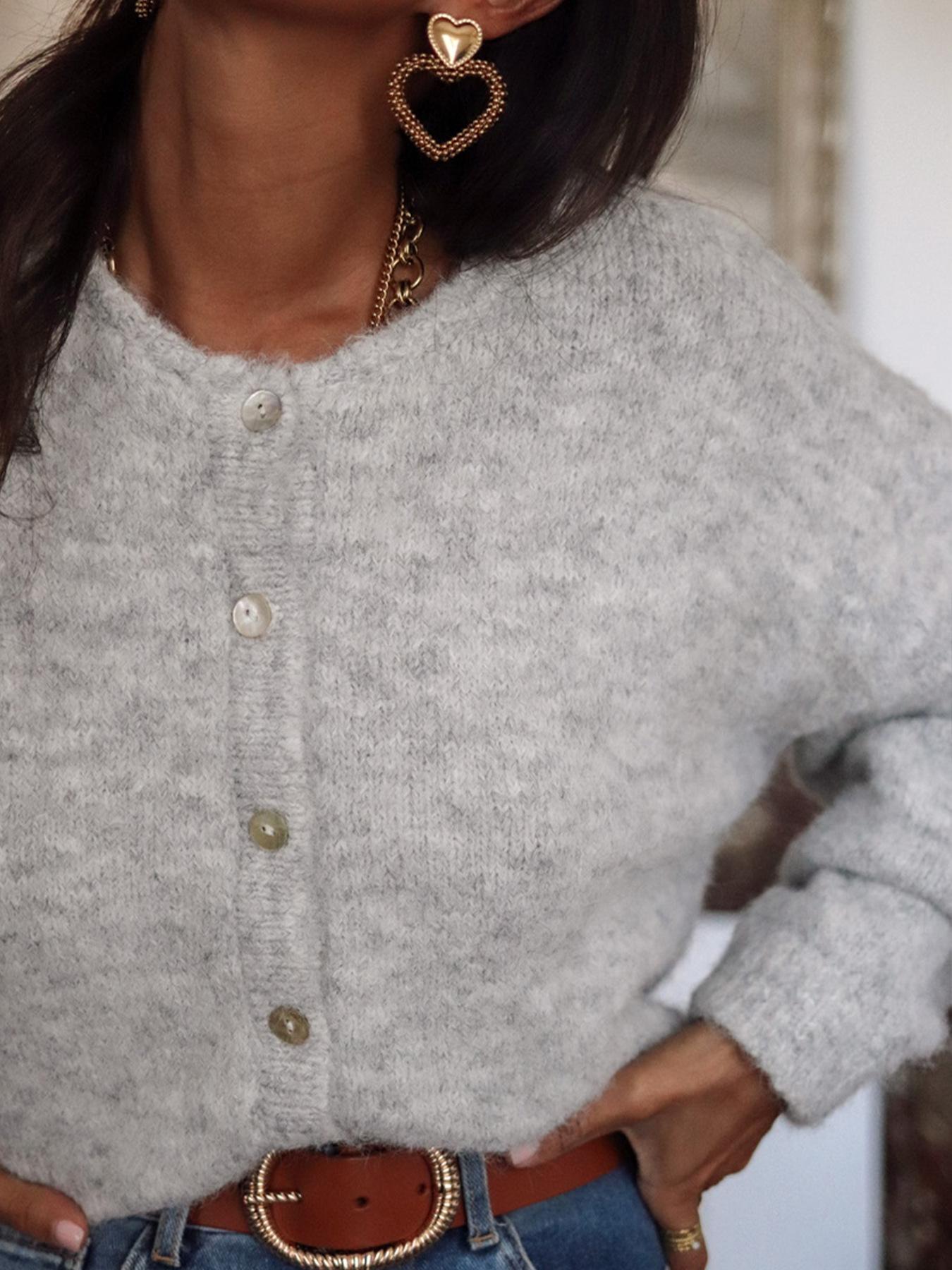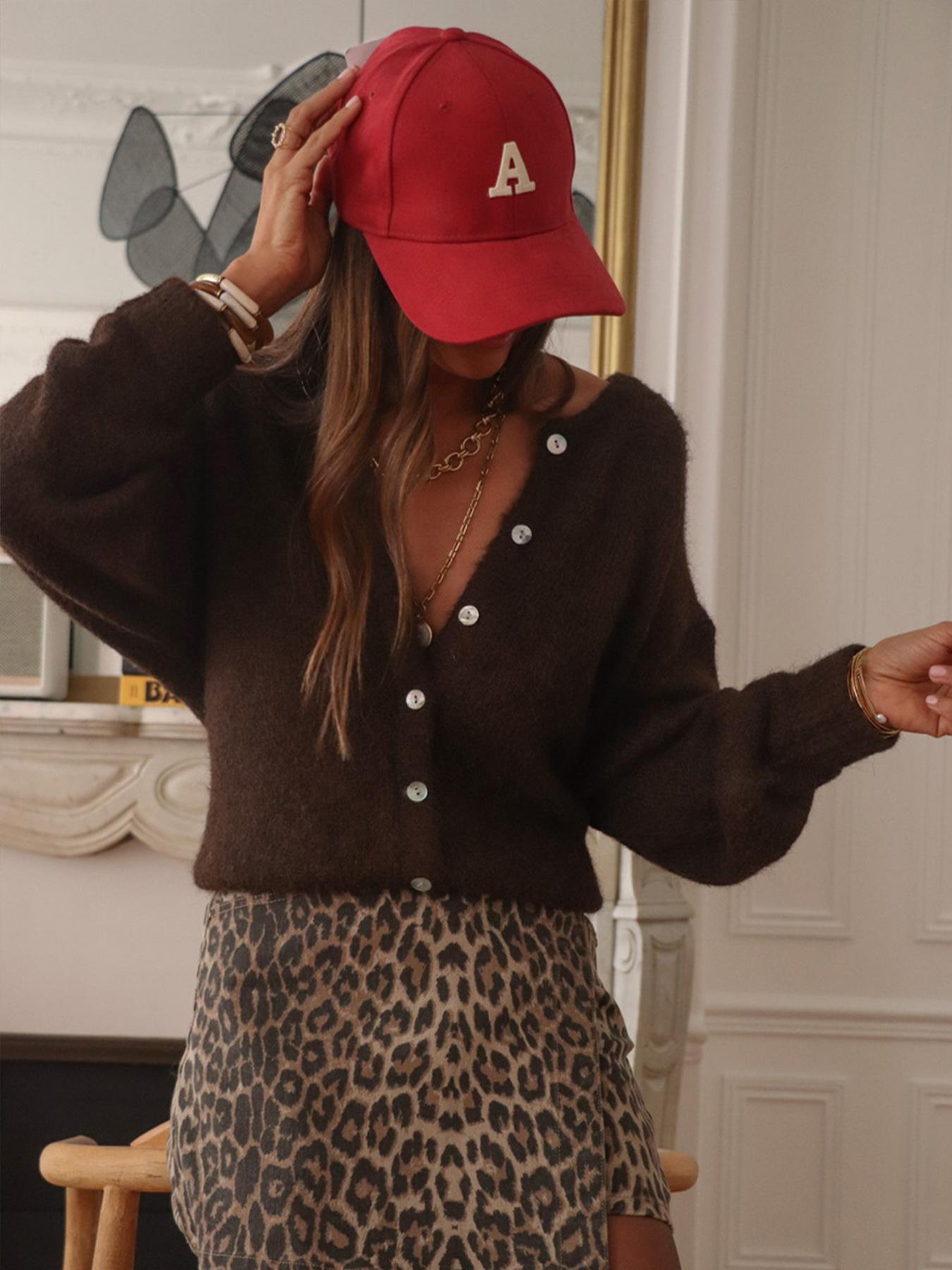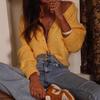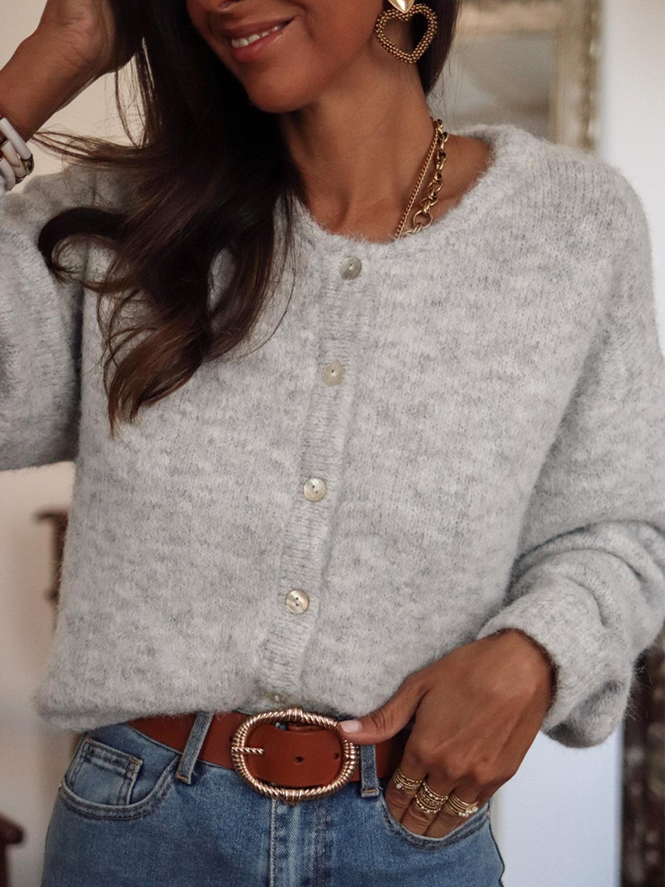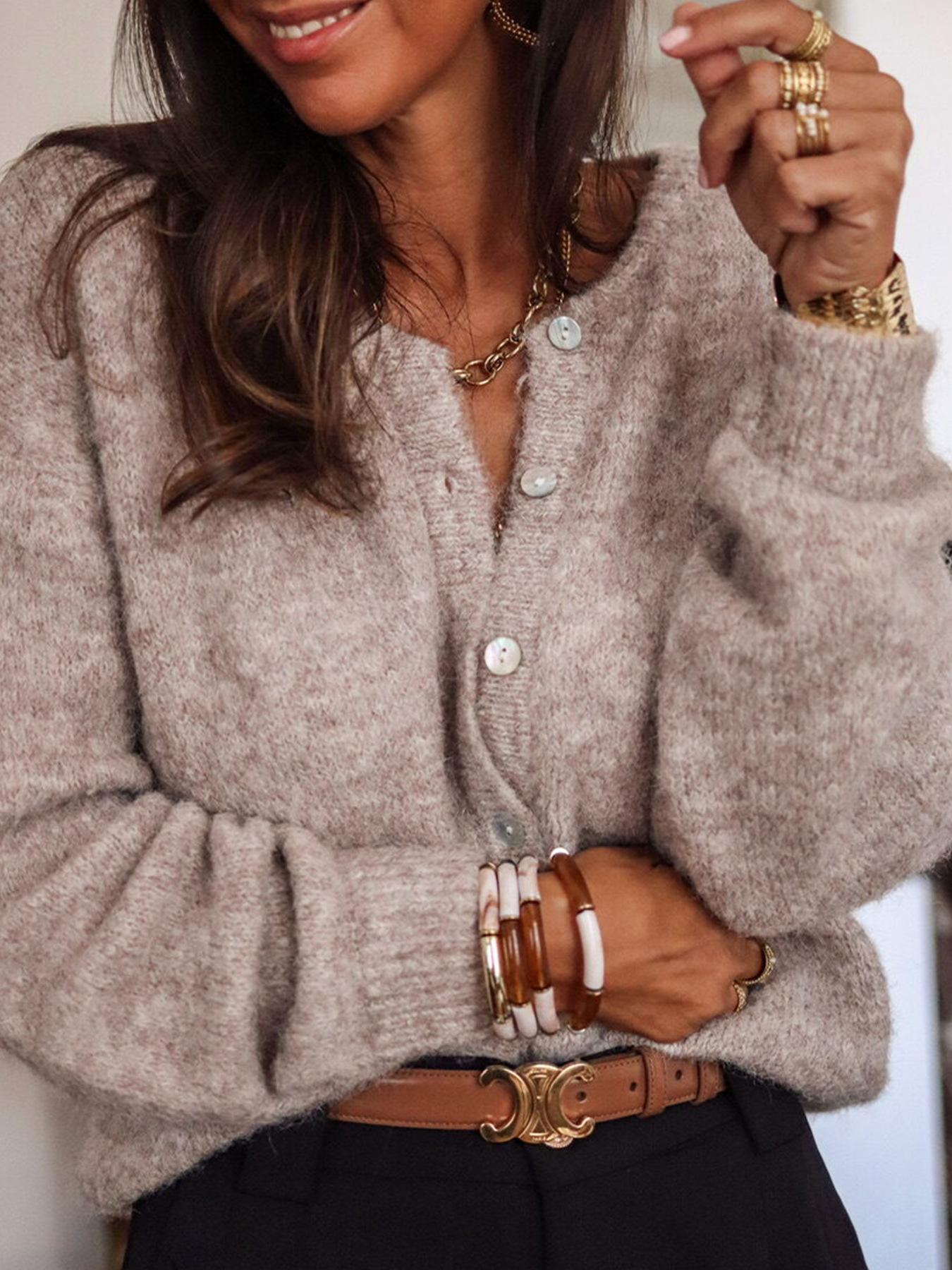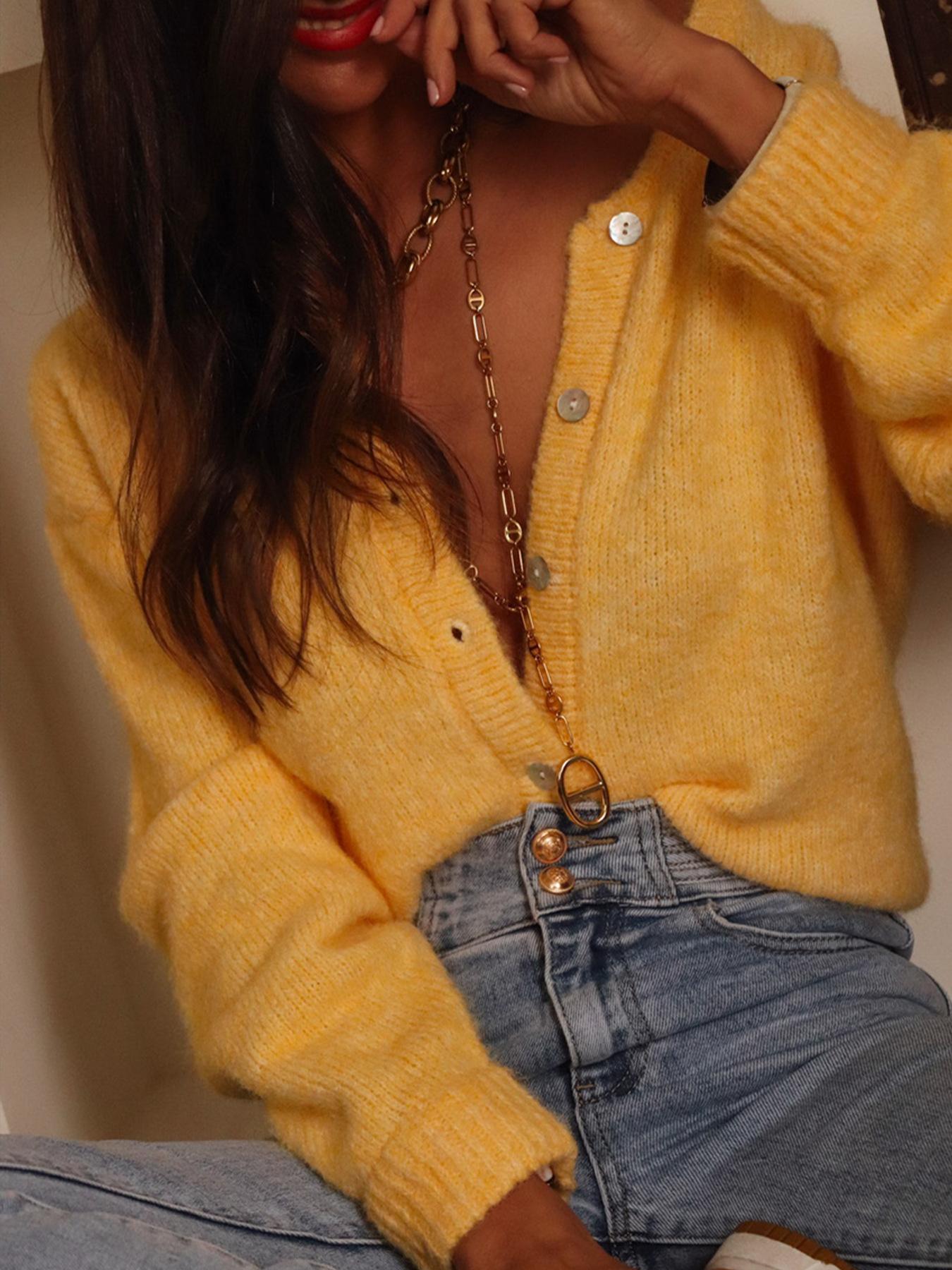 Cárdigan de punto de felpa de color puro transfronterizo europeo y americano con cuello en V profundo, top suelto y sexy, moda perezosa, suéter de otoño e invierno