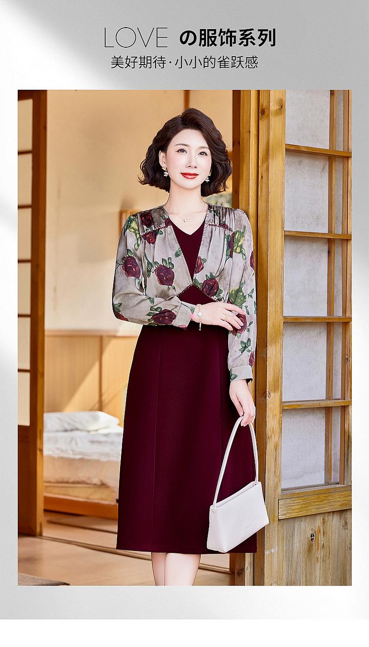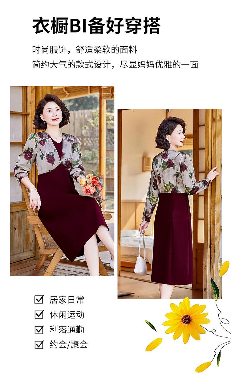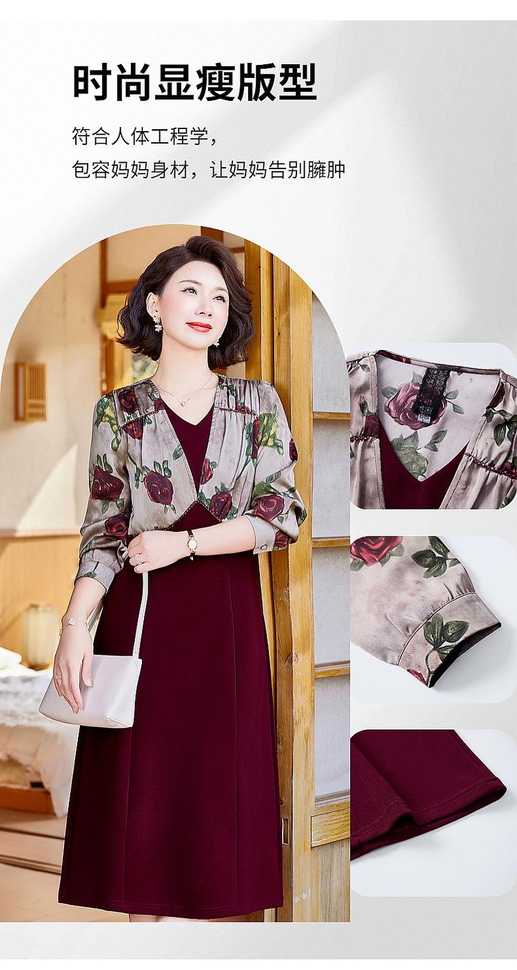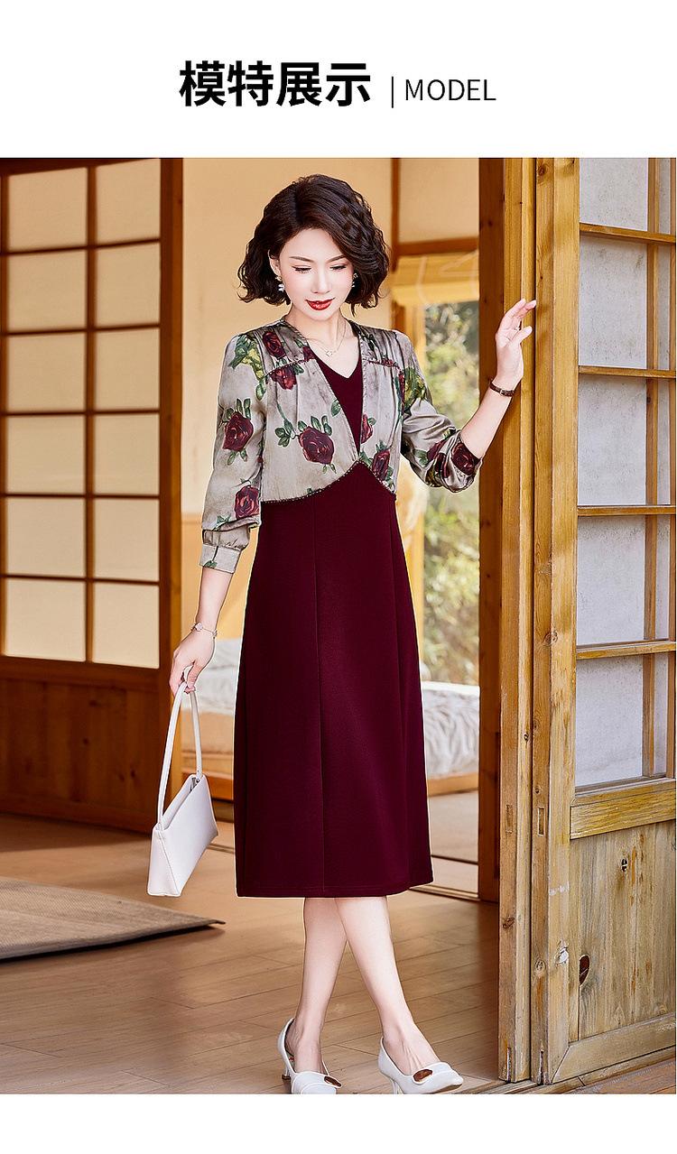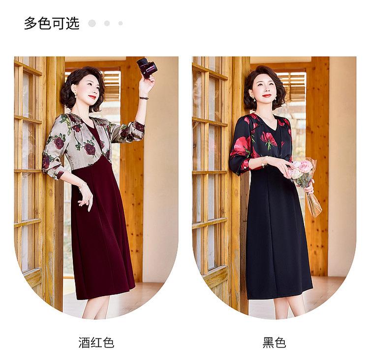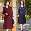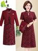 Vestido falso de dos piezas para banquete de boda de suegra para mujeres de mediana edad y ancianas 2025 madre primavera y otoño vestido de temperamento de manga larga mujeres rojo