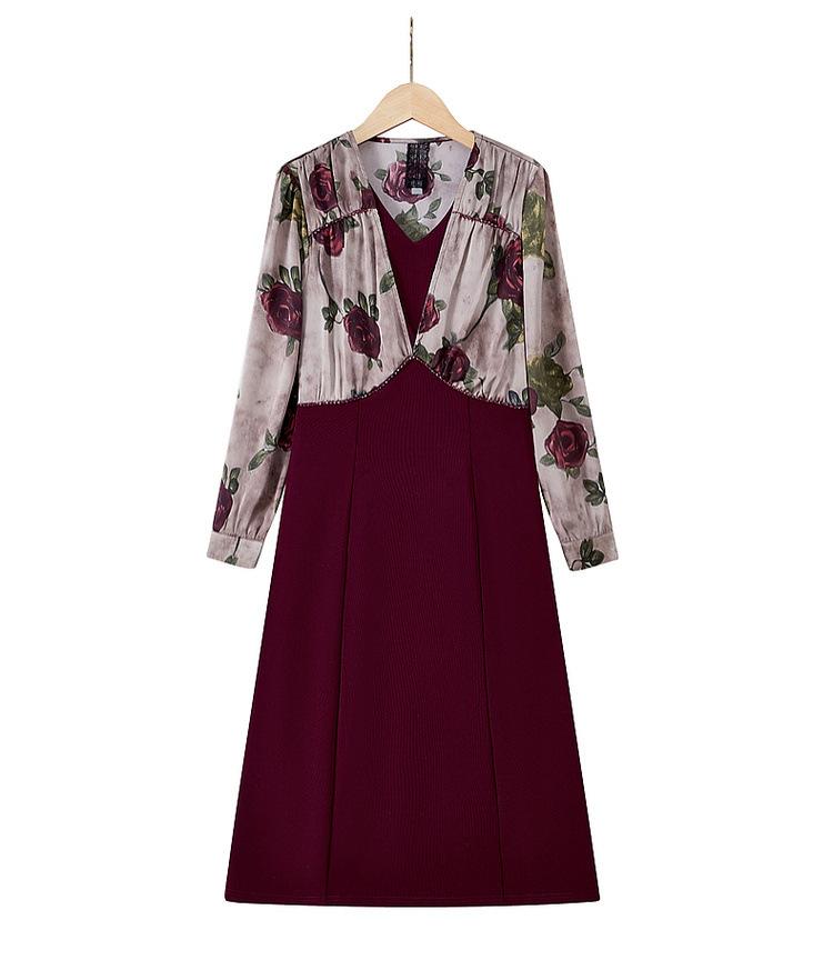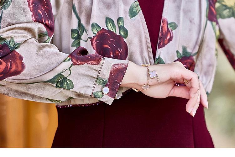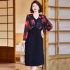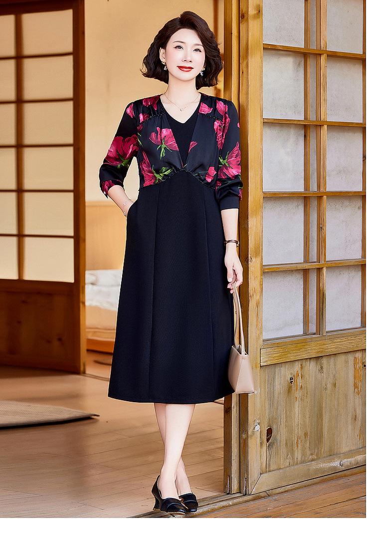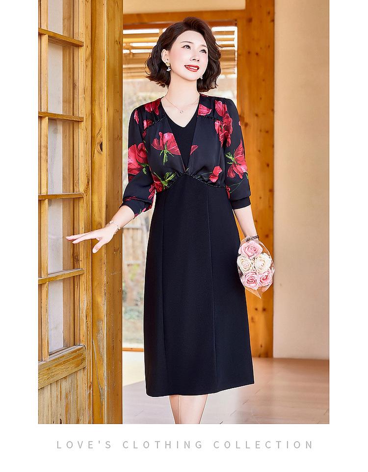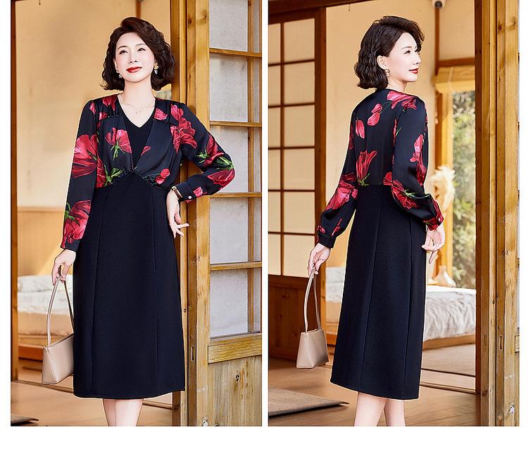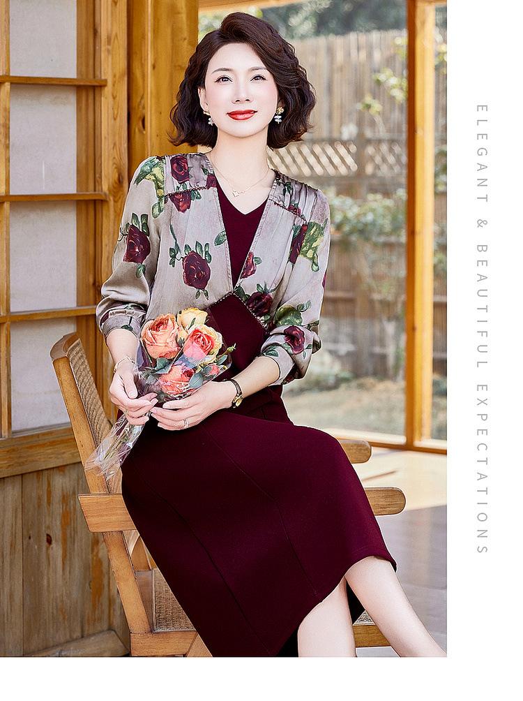 Vestido falso de dos piezas para banquete de boda de suegra para mujeres de mediana edad y ancianas 2025 madre primavera y otoño vestido de temperamento de manga larga mujeres rojo