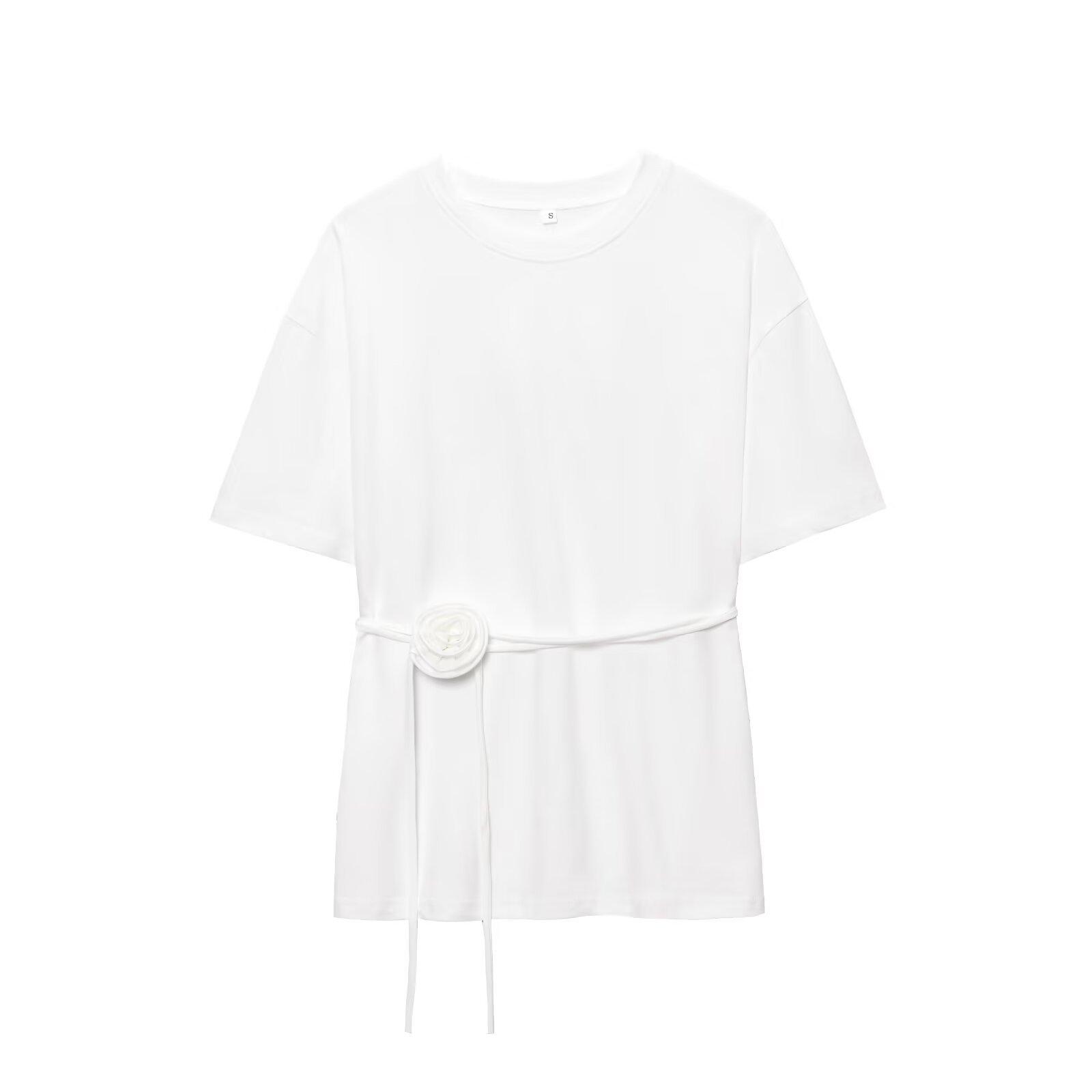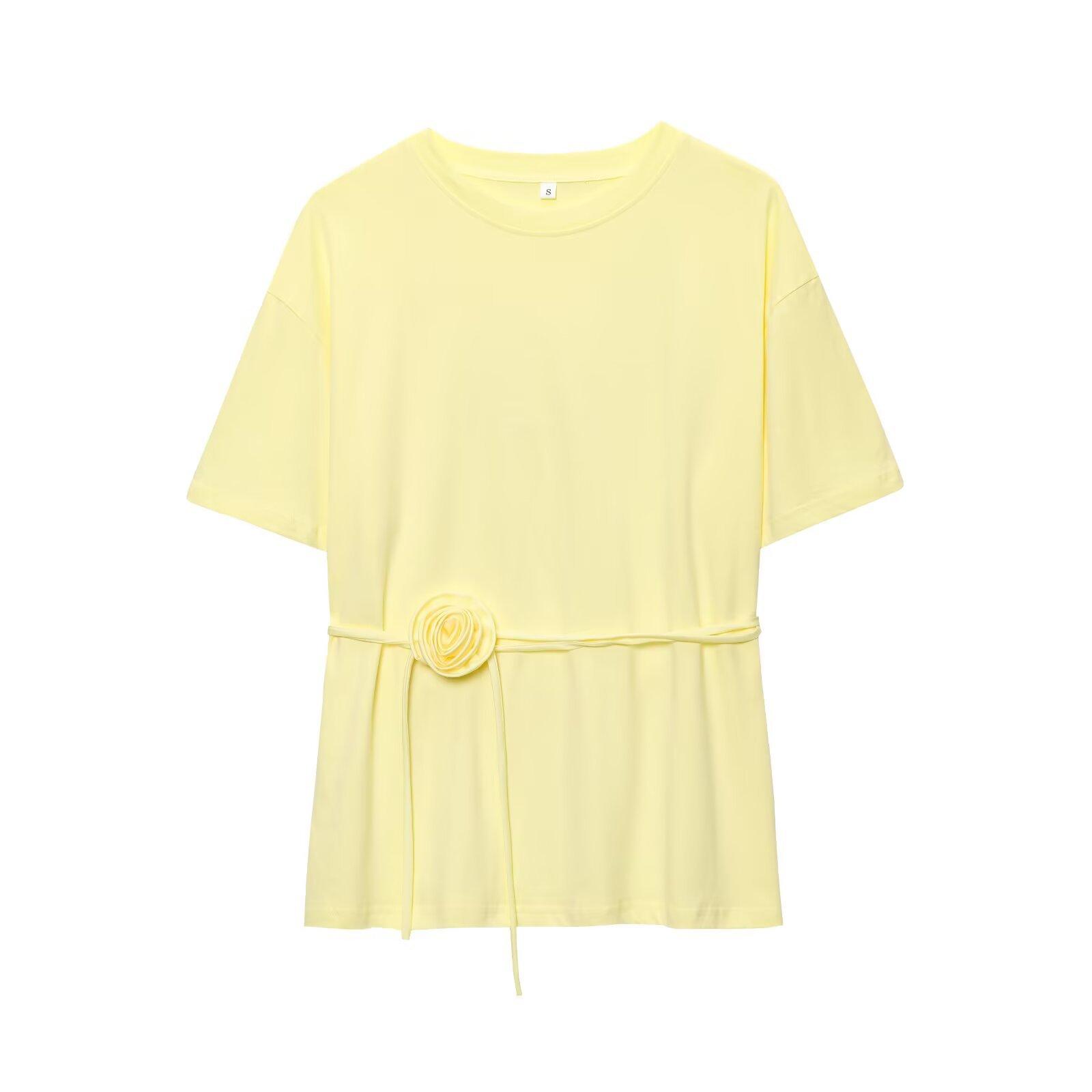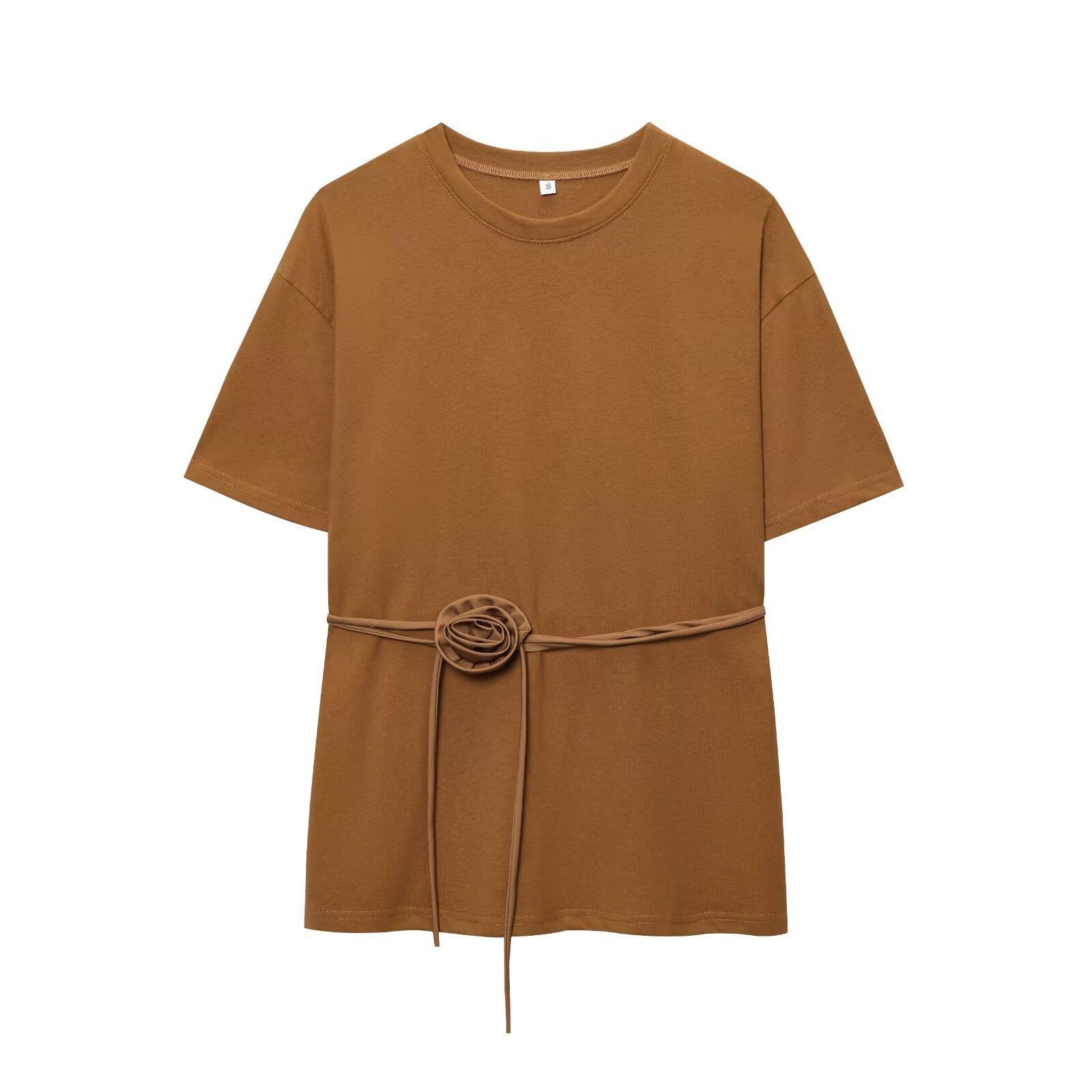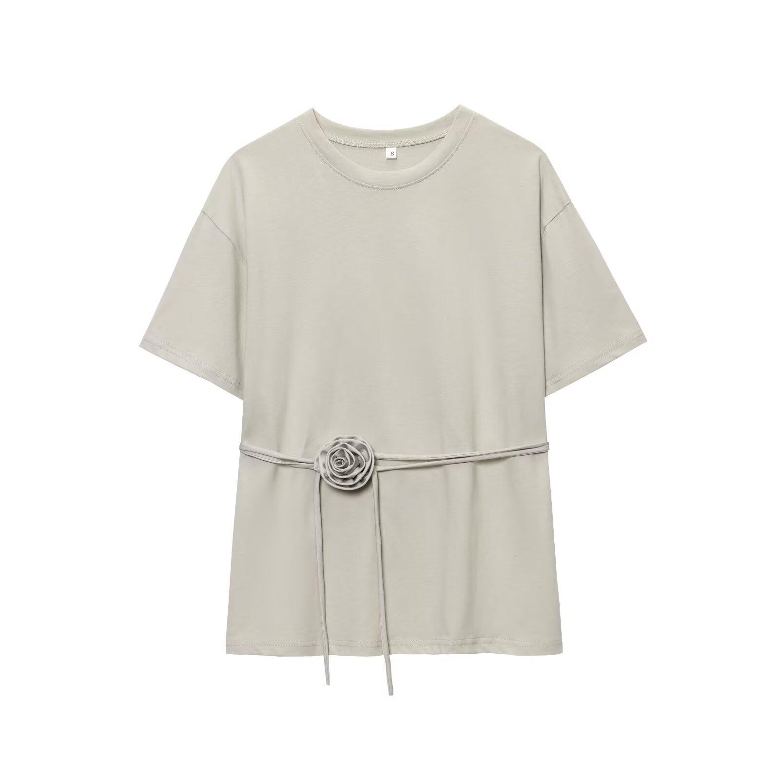 Aliexpress Transfronterizo Ropa Europea y Americana al por Mayor 2025 Principios de Primavera Nuevo Manga Corta de Rosa Hecha a Mano