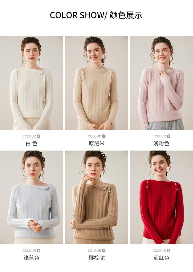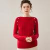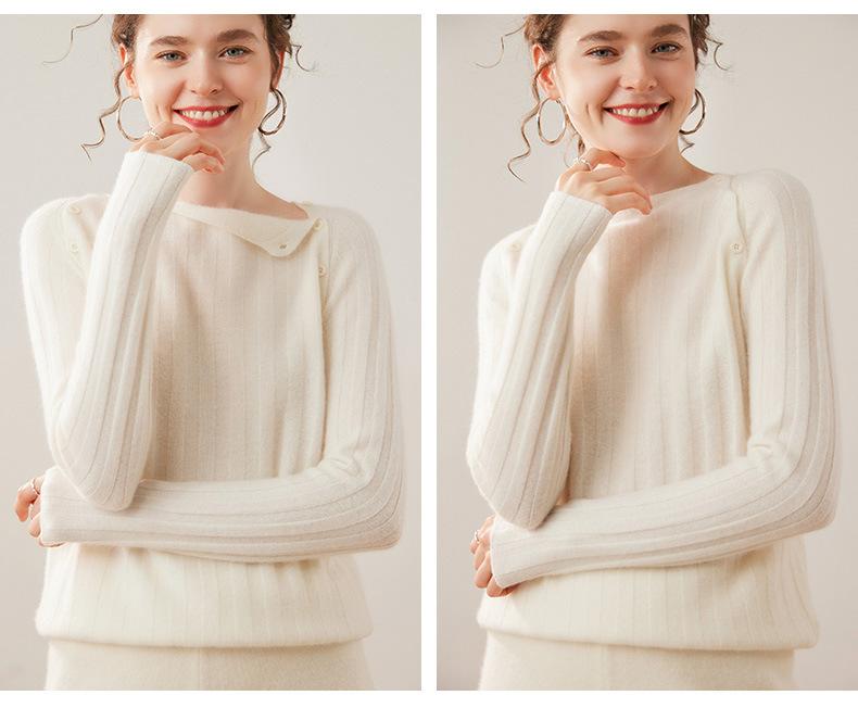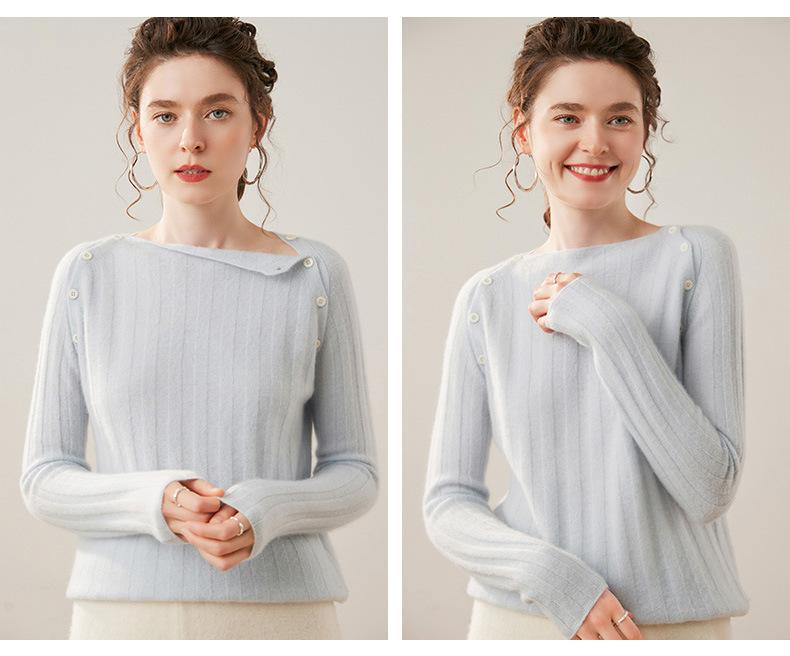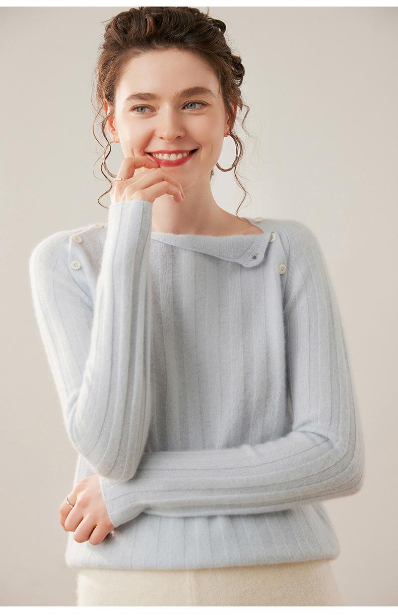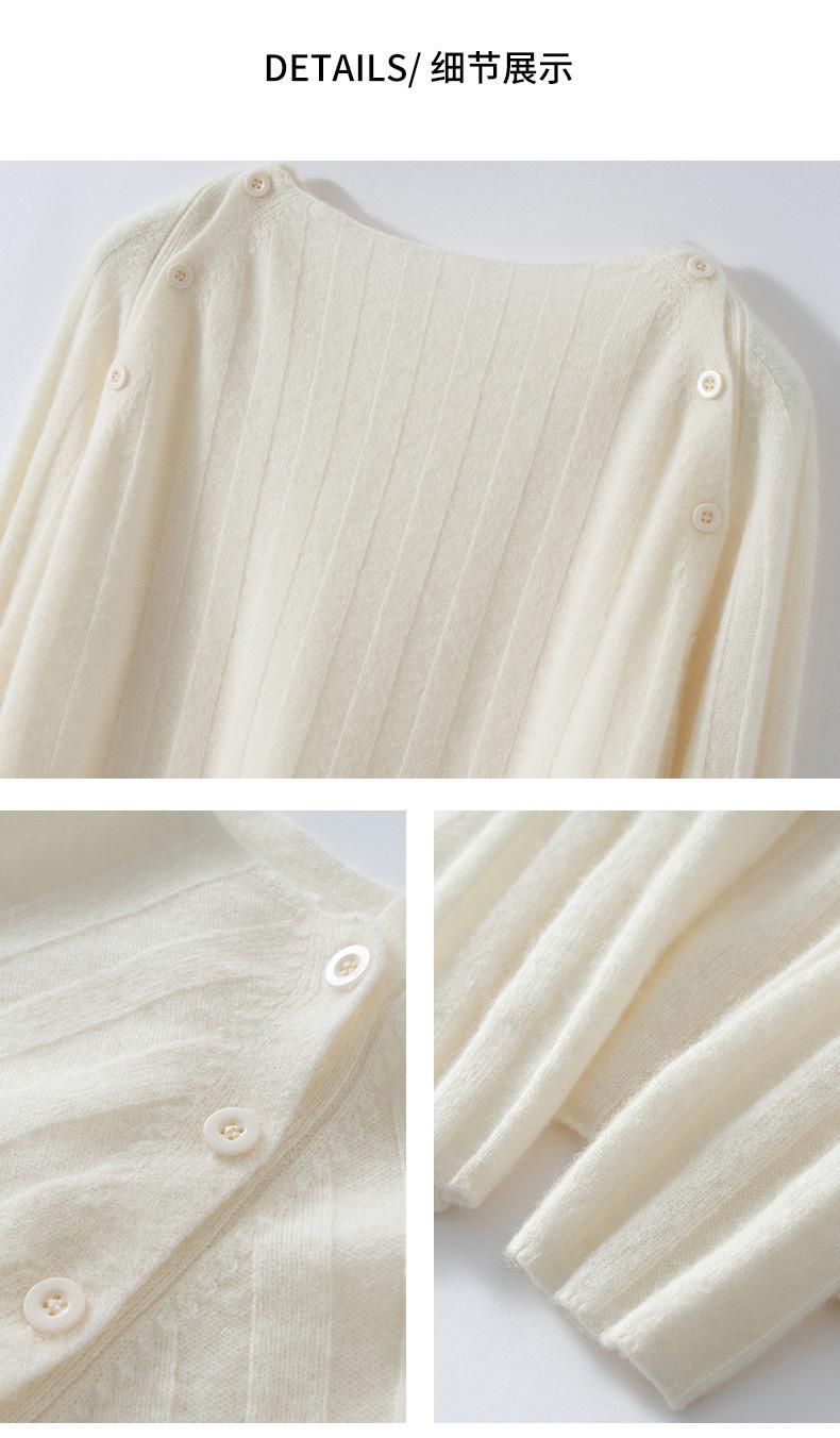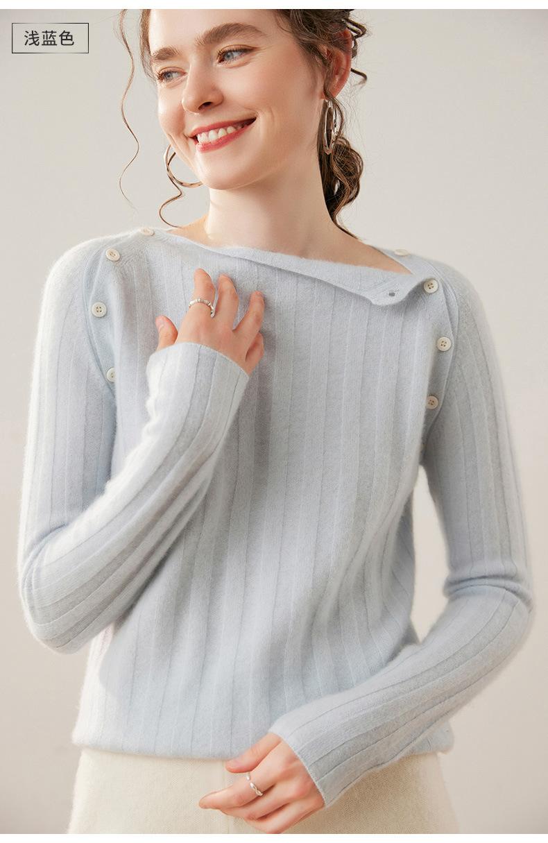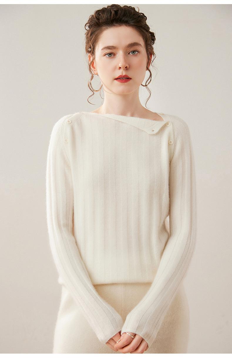 Suéter Delgado de Cachemira para Mujer Otoño/Invierno 2025 Nuevo Botón en el Hombro Un Hombro Suéter Base Tejido Corto de Alta Gama