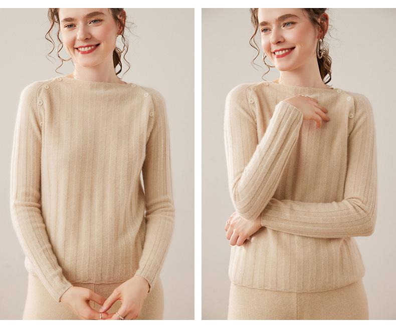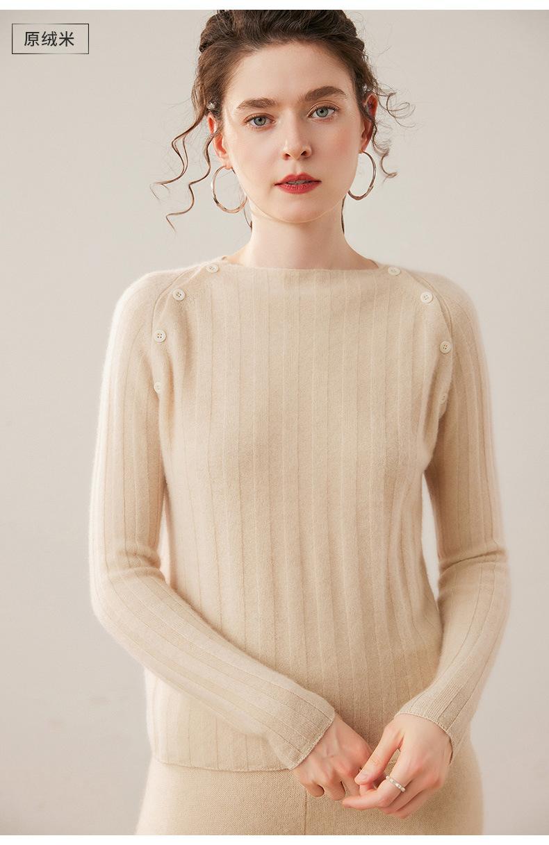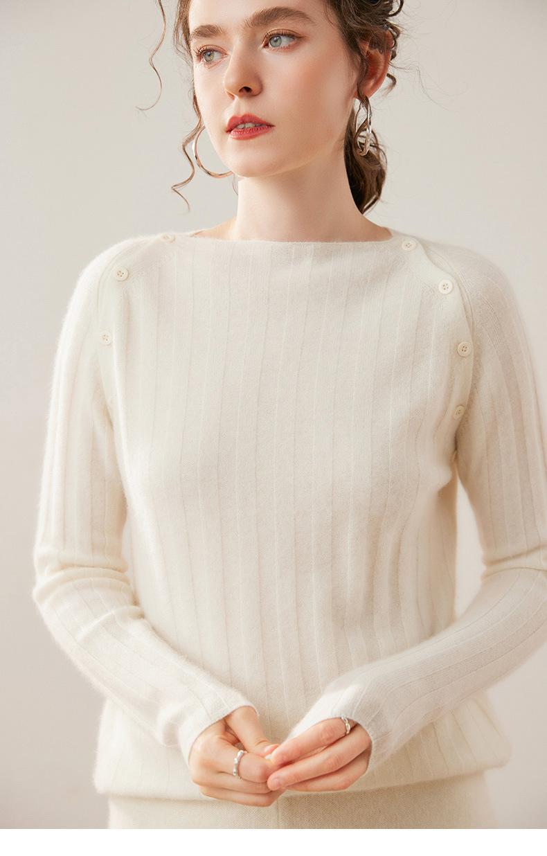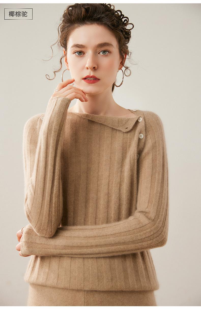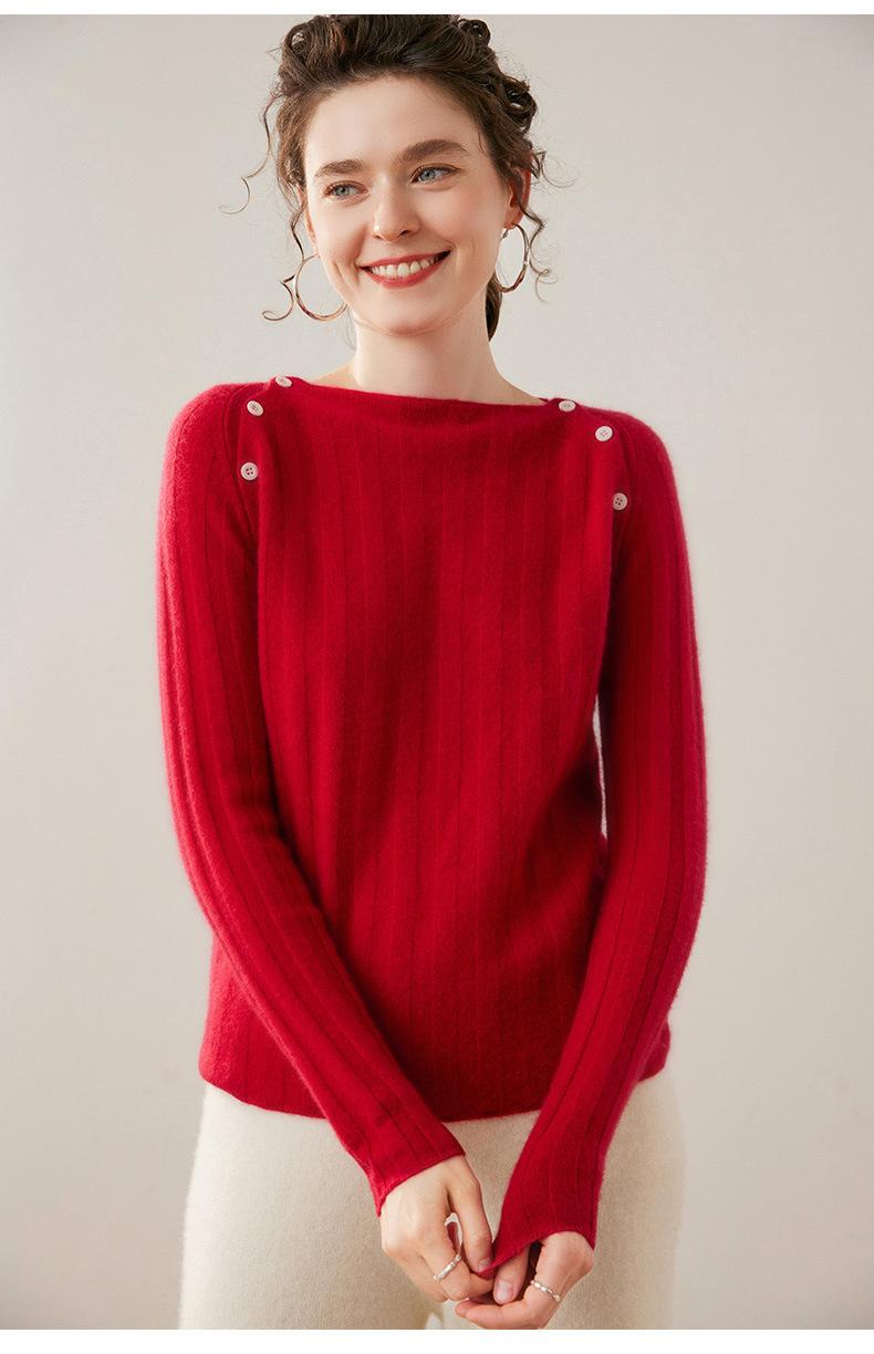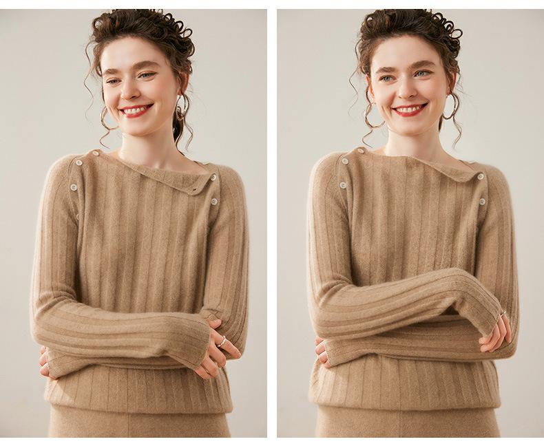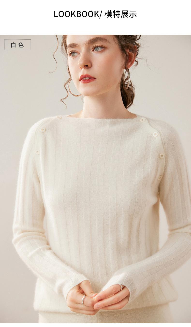 Suéter Delgado de Cachemira para Mujer Otoño/Invierno 2025 Nuevo Botón en el Hombro Un Hombro Suéter Base Tejido Corto de Alta Gama