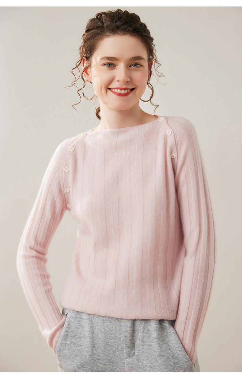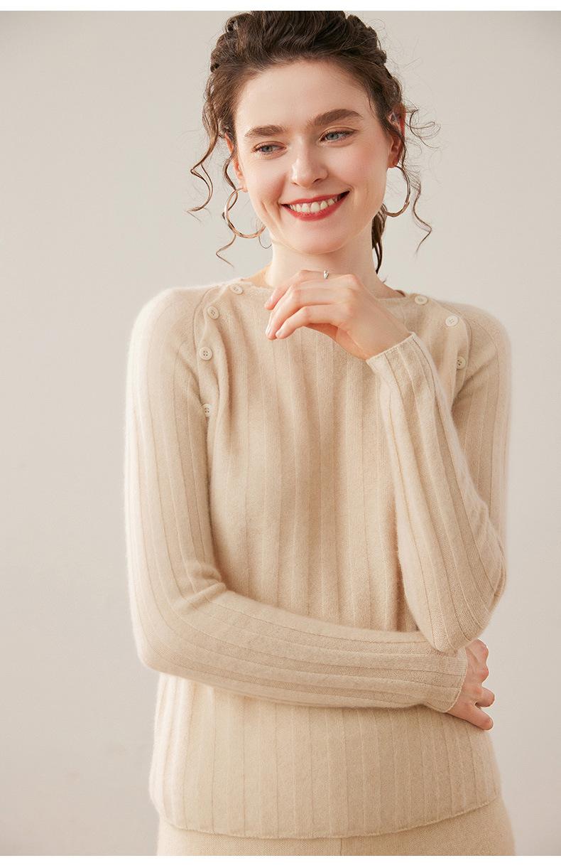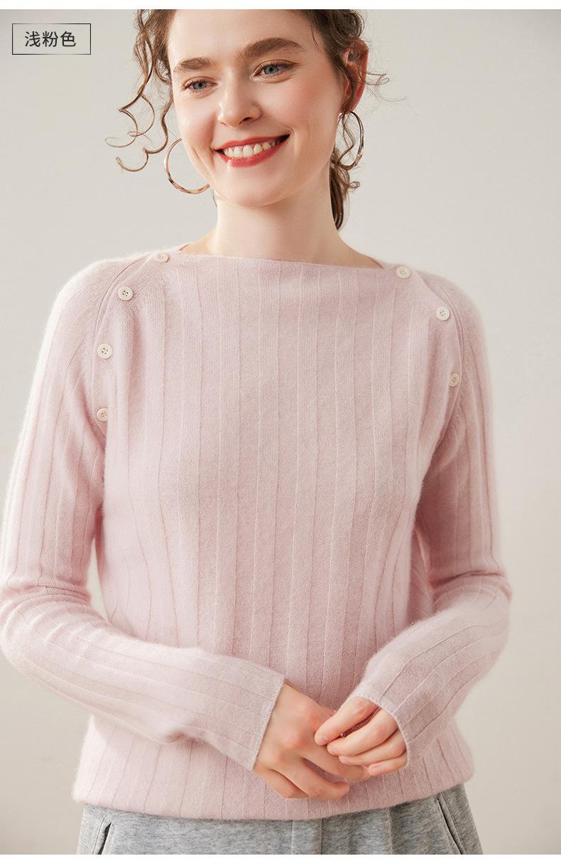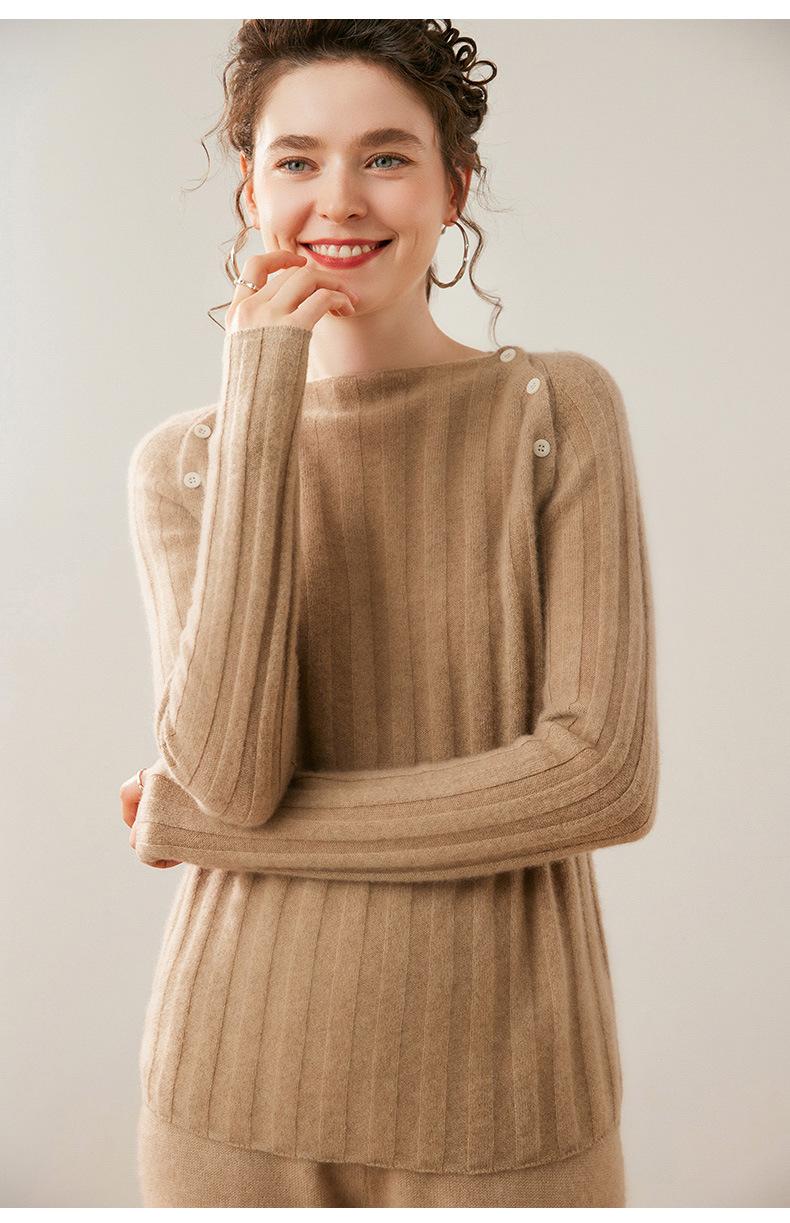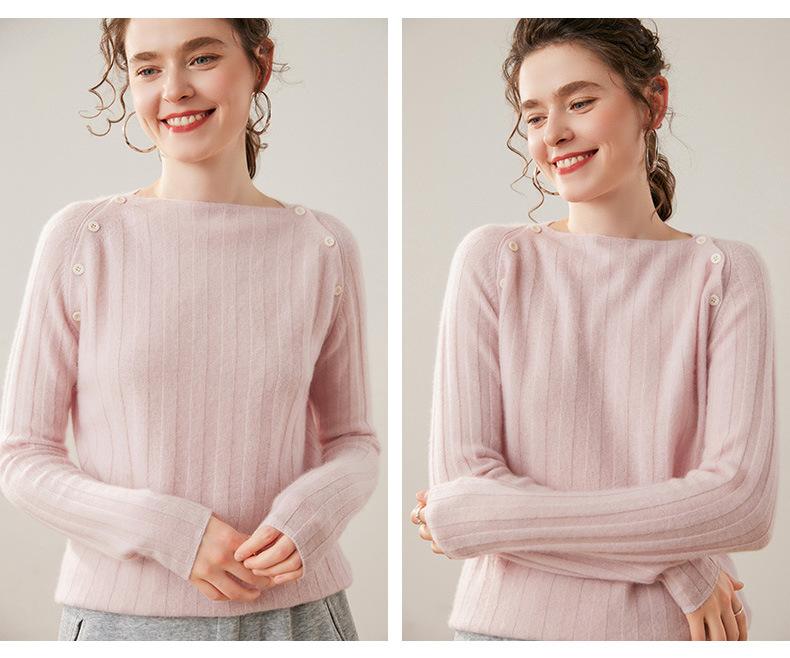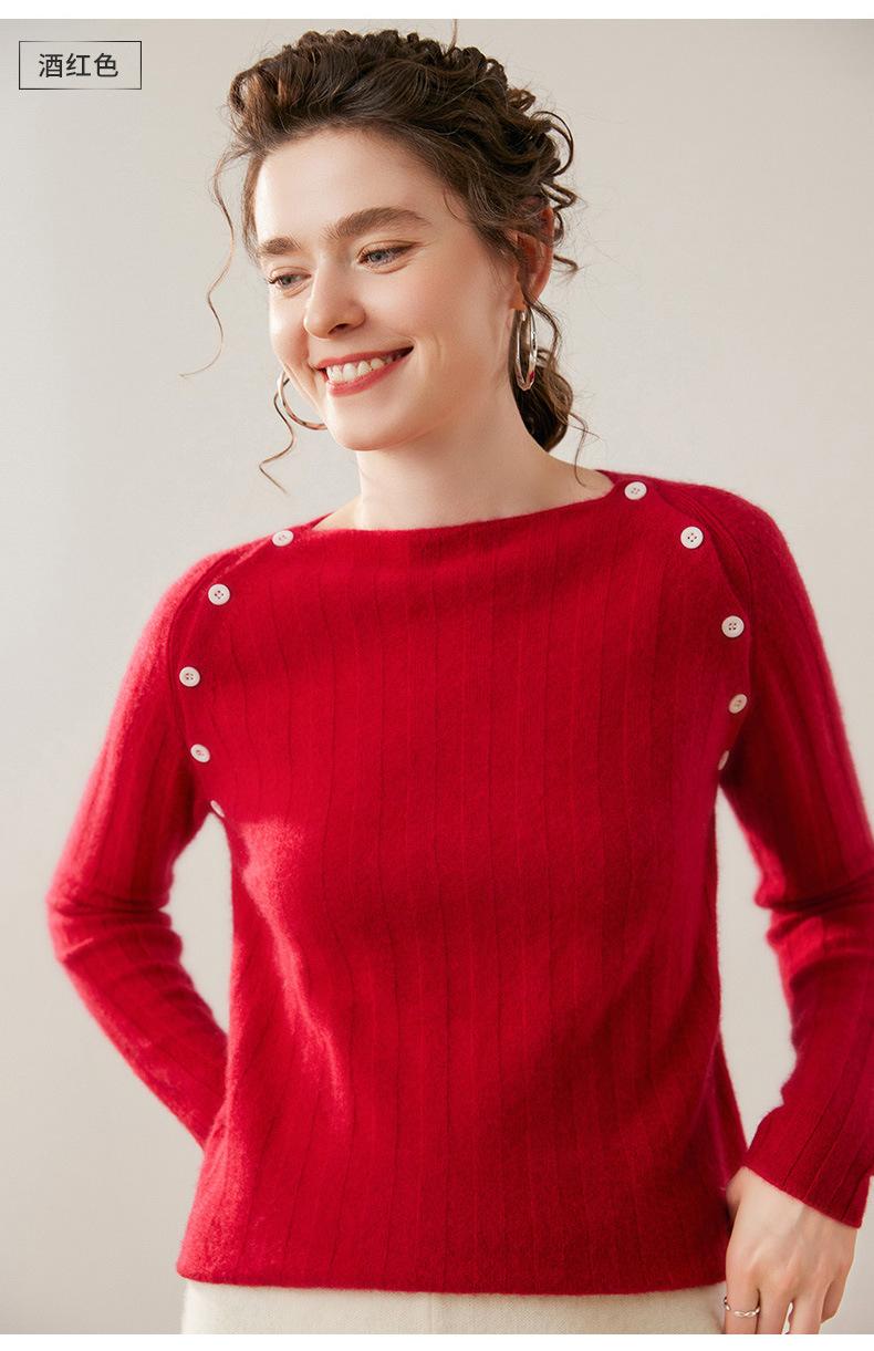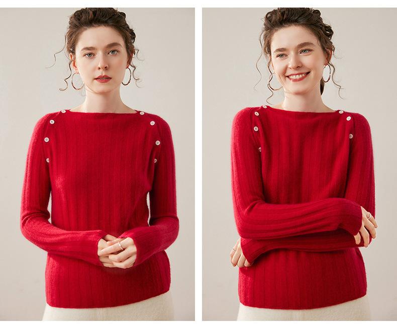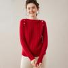 Suéter Delgado de Cachemira para Mujer Otoño/Invierno 2025 Nuevo Botón en el Hombro Un Hombro Suéter Base Tejido Corto de Alta Gama