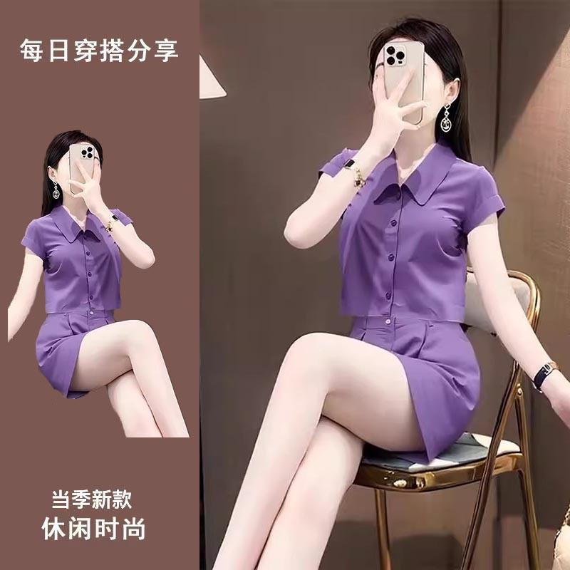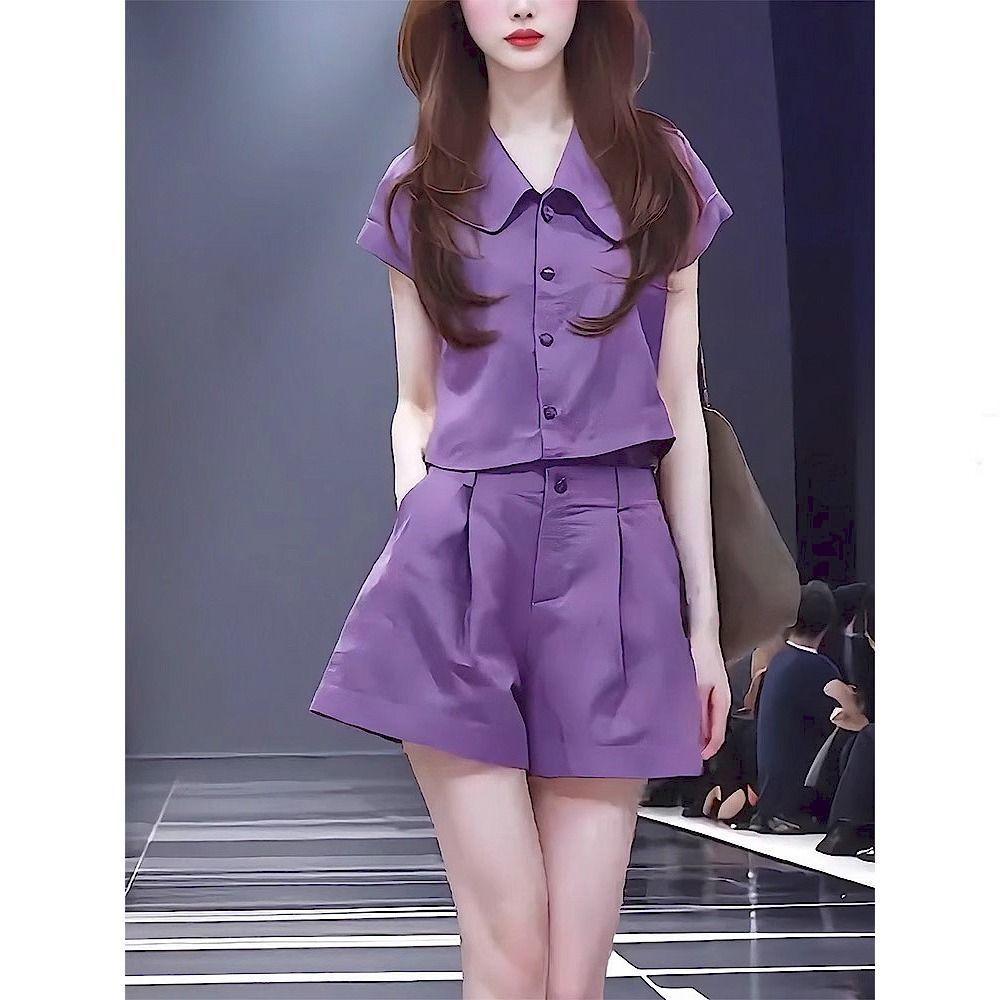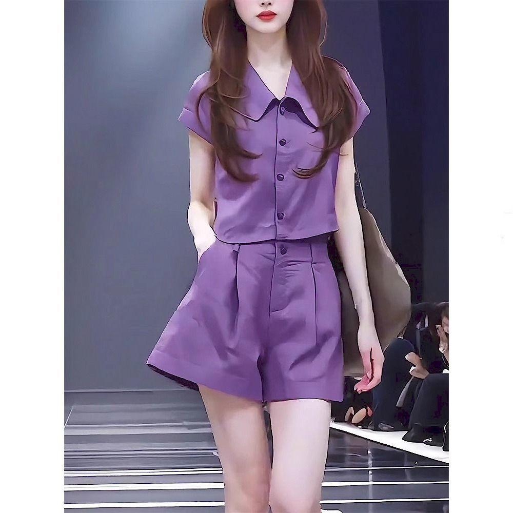 Conjunto de moda púrpura con sentido del diseño moderno 2025 nuevo verano deportivo casual versátil de dos piezas ropa de mujer