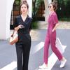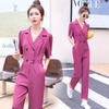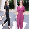 Nuevo mono de dos piezas para mujer, modelo 2025, de satén acetato antiarrugas, elegante, rejuvenecedor, versátil, de manga corta y a la moda.