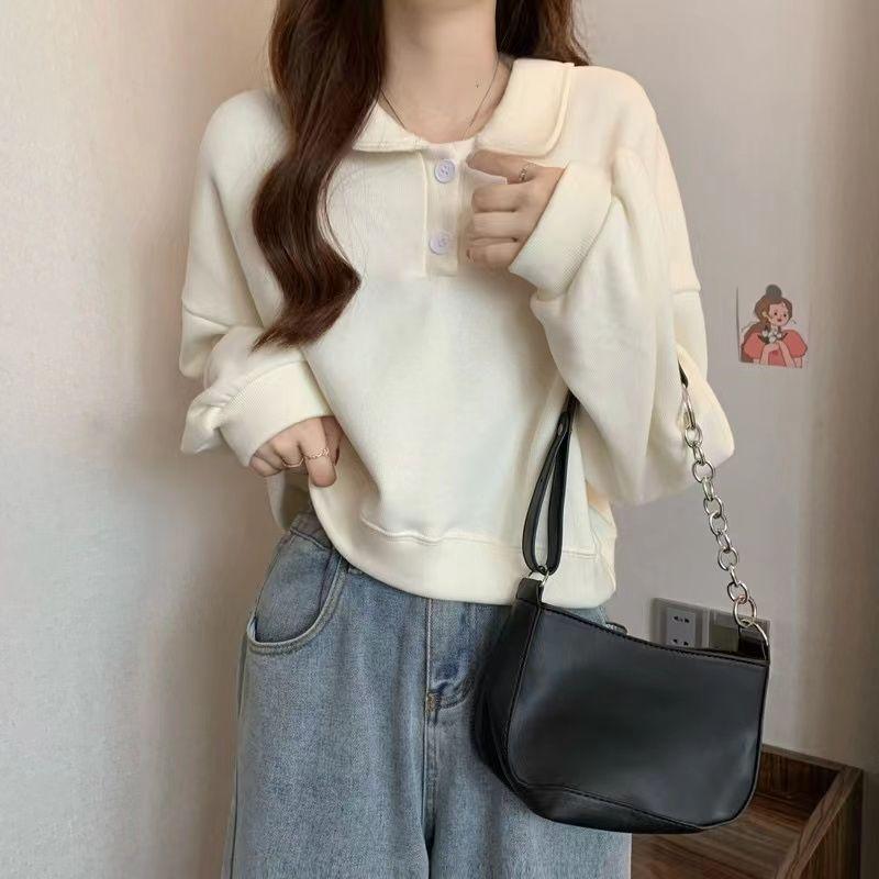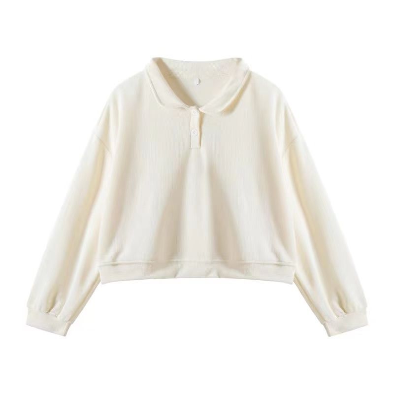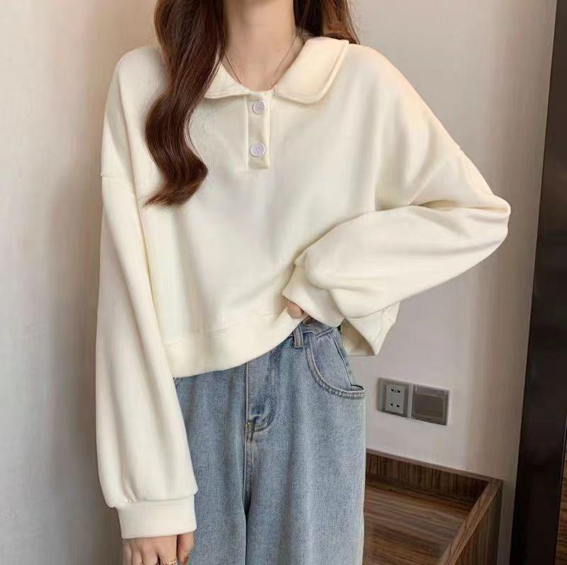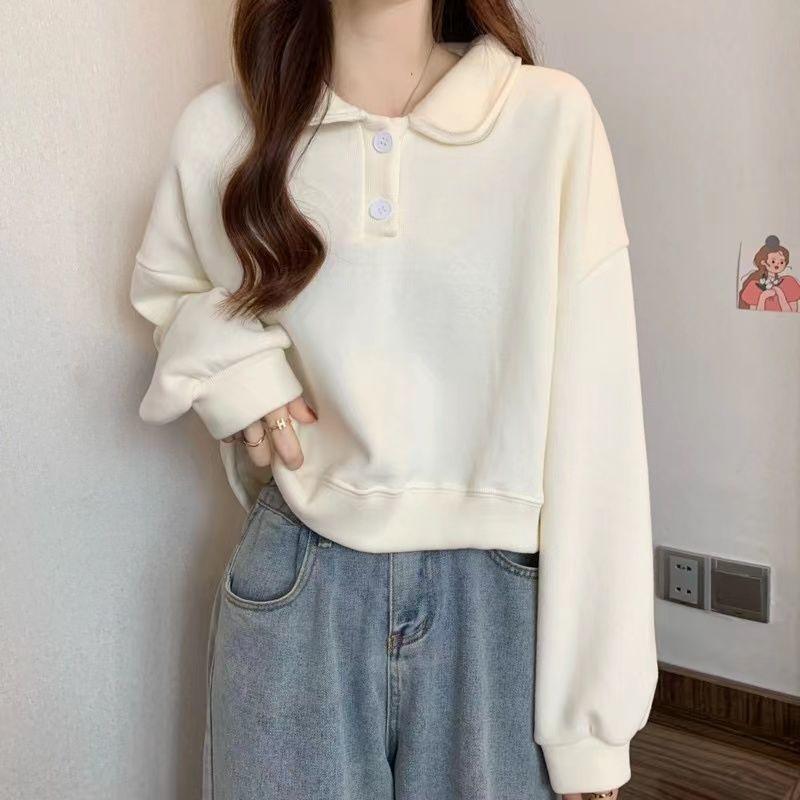 Sudadera Corta Estilo Universitario Japonés con Cuello para Mujer Primavera Otoño Delgada Talla Pequeña Holgada Versátil Manga Larga Top Nuevo