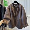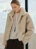 Abrigo de una pieza de moda de piel con pelo para mujer, invierno, nuevo estilo, ropa de mujer, lana de cordero empalmada con cuero, abrigo corto grueso