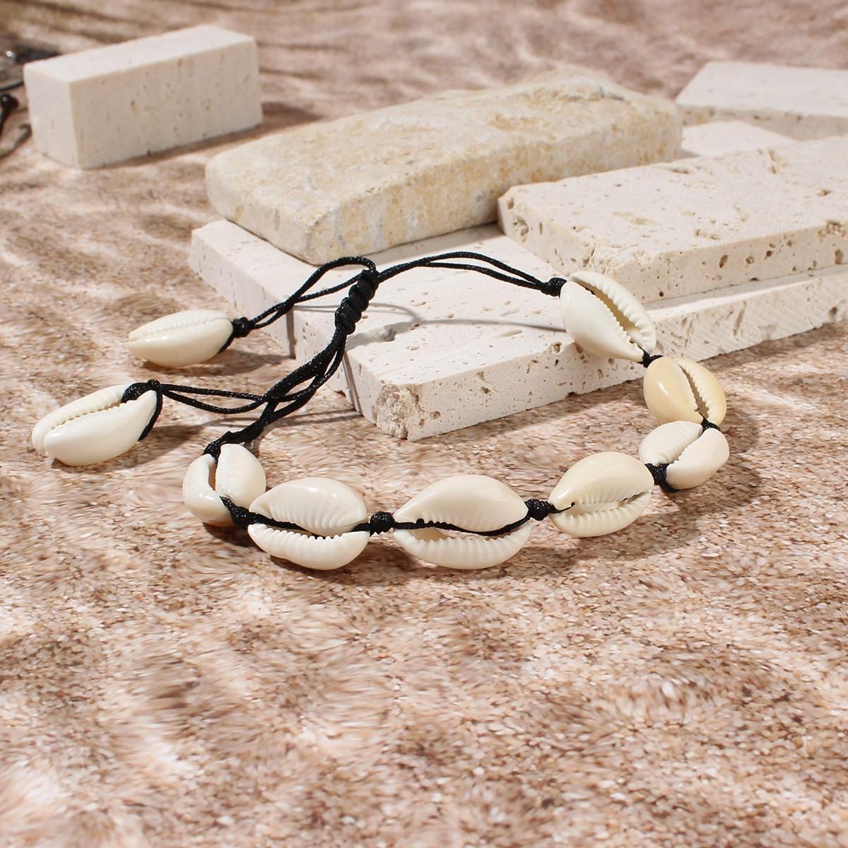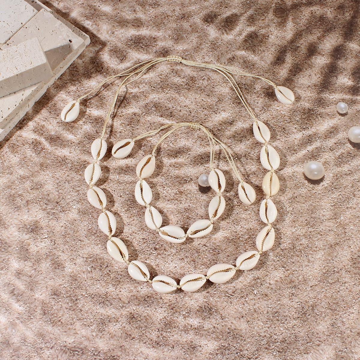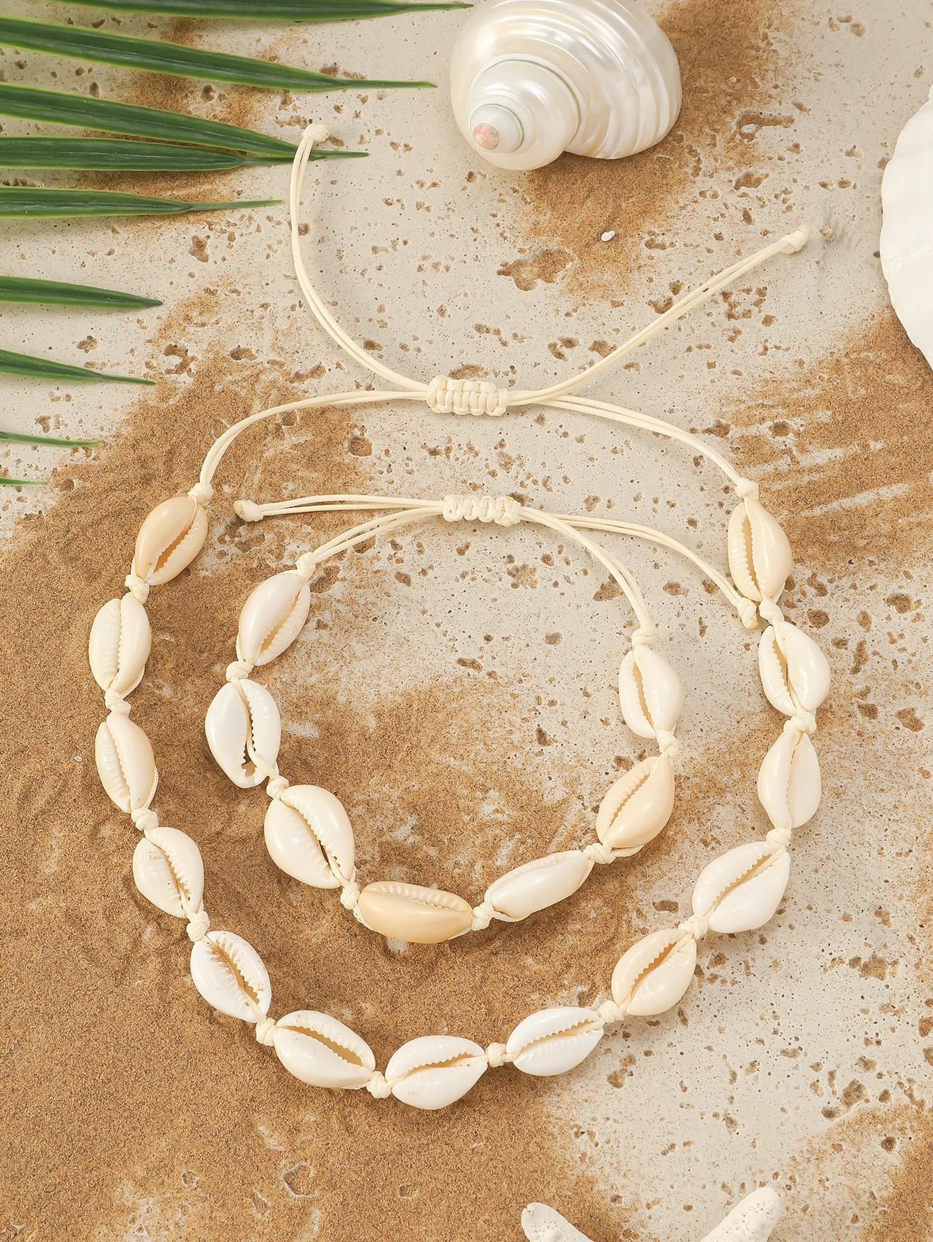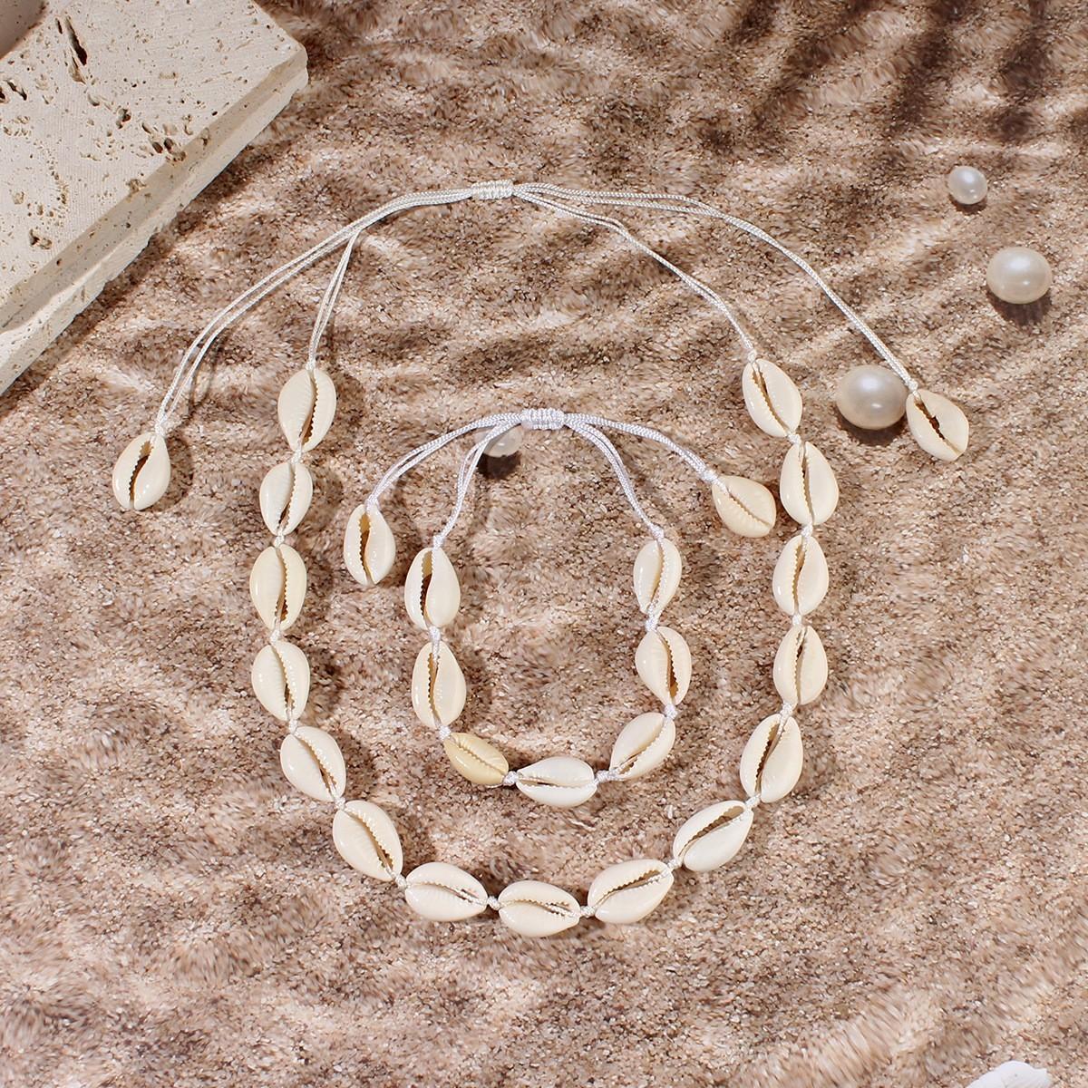 Collar de Concha de Personalidad de Moda Europea y Americana Estilo Vacaciones de Playa Pulsera Tejida de Cuerda de Cáñamo Set de Pulseras de Concha Marina Mujer
