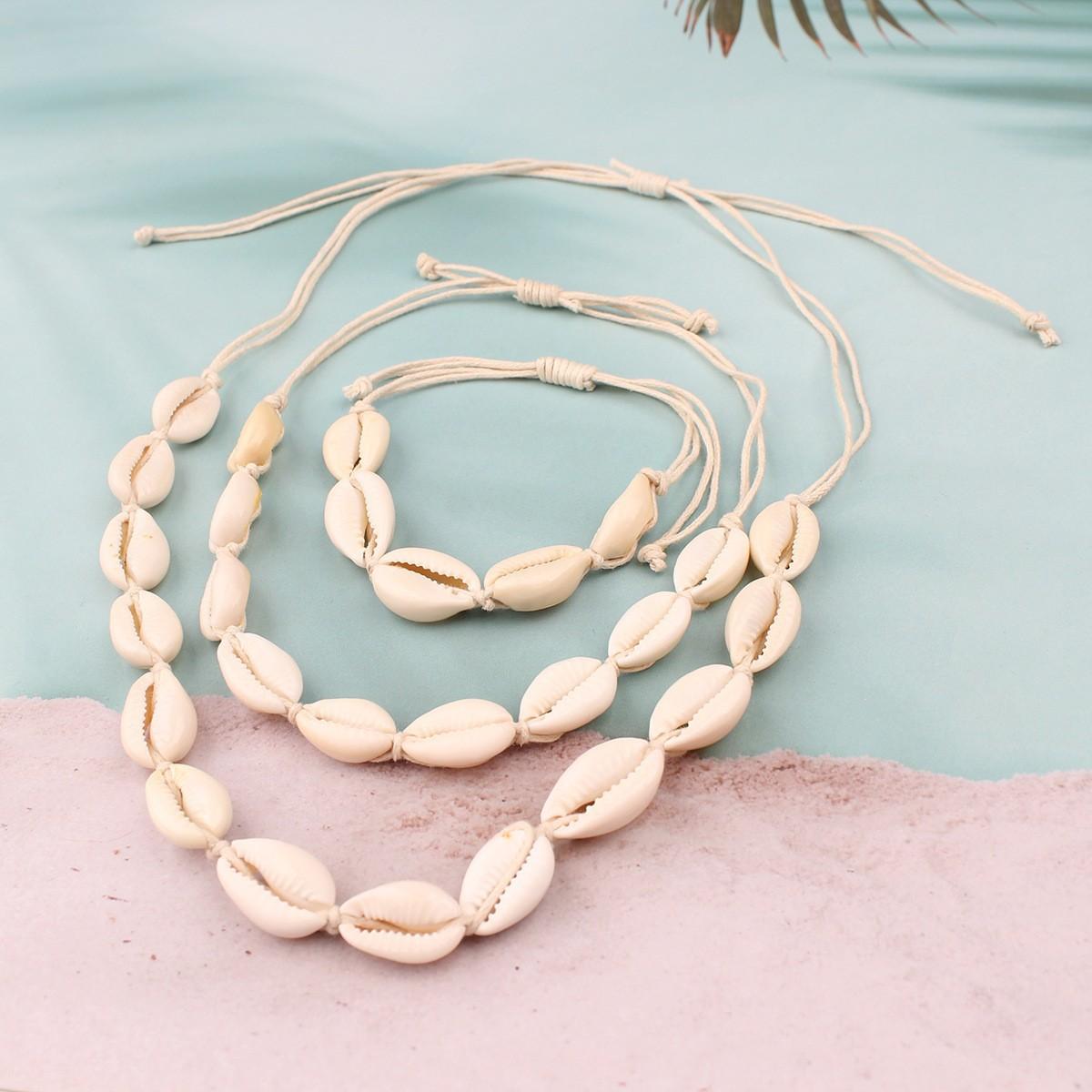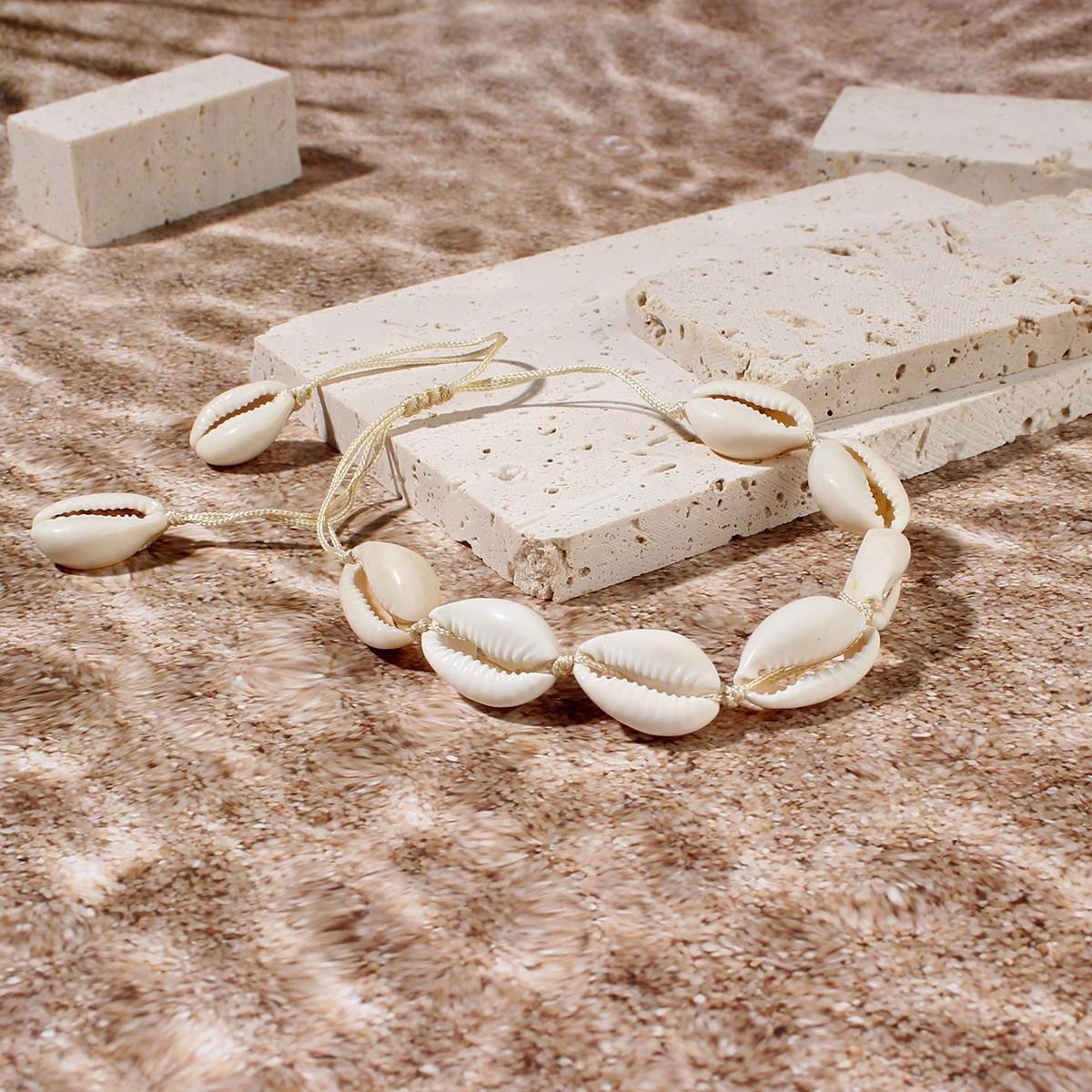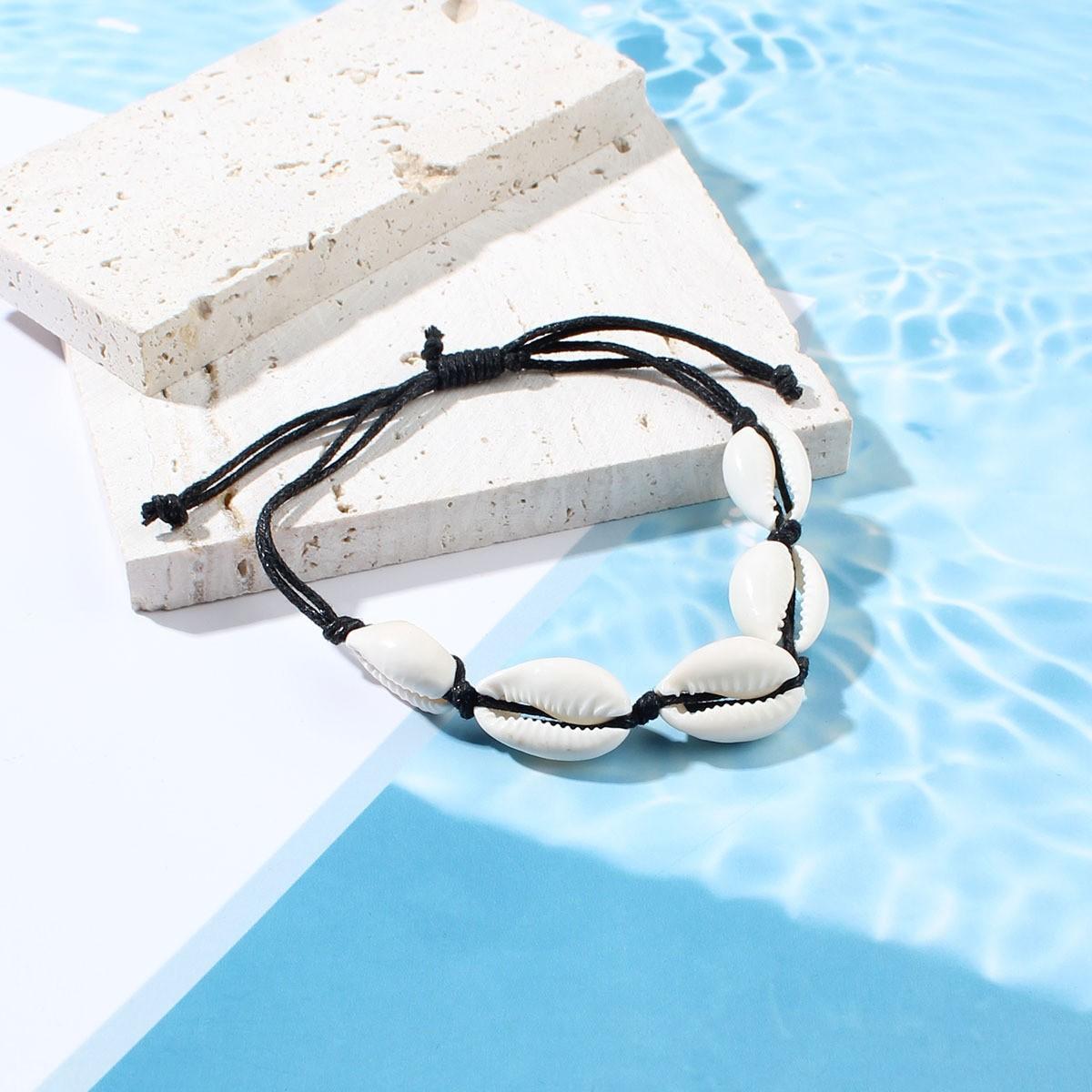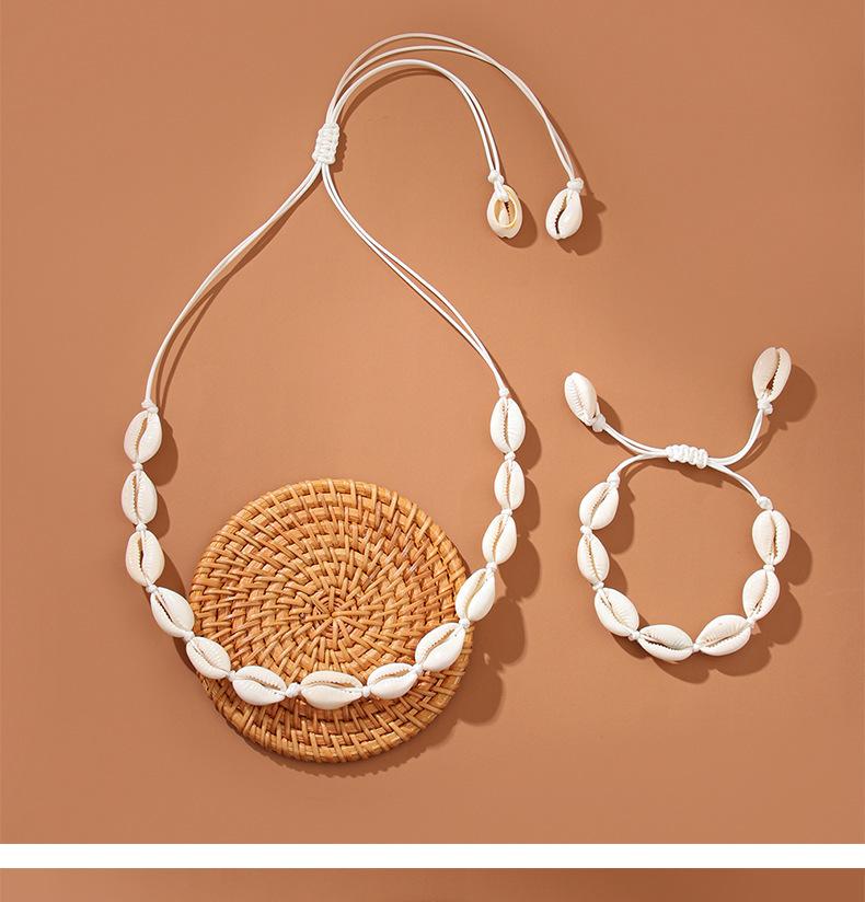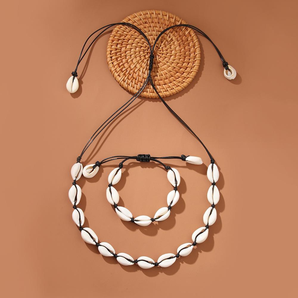 Collar de Concha de Personalidad de Moda Europea y Americana Estilo Vacaciones de Playa Pulsera Tejida de Cuerda de Cáñamo Set de Pulseras de Concha Marina Mujer