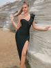 Nuevo Vestido de Noche de Comercio Exterior con Hombro Volante Abertura Alta Hombro Fiesta Fiesta Moda Vestido Elegante