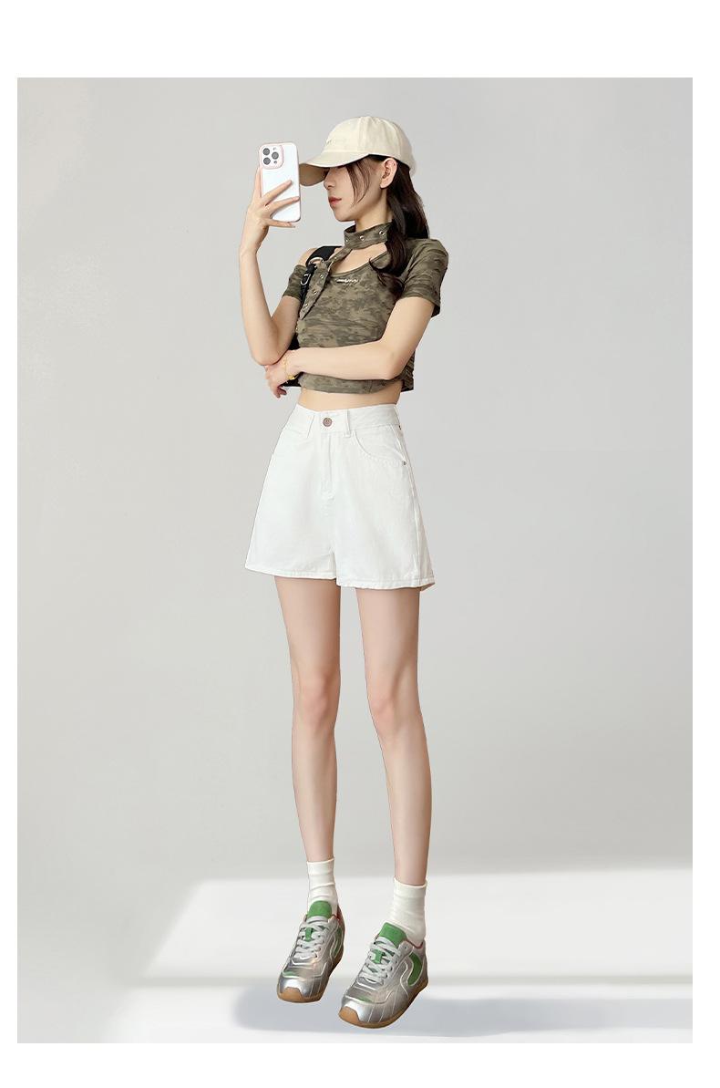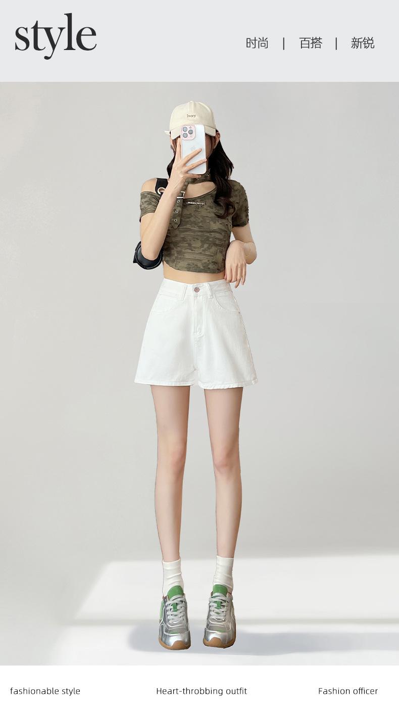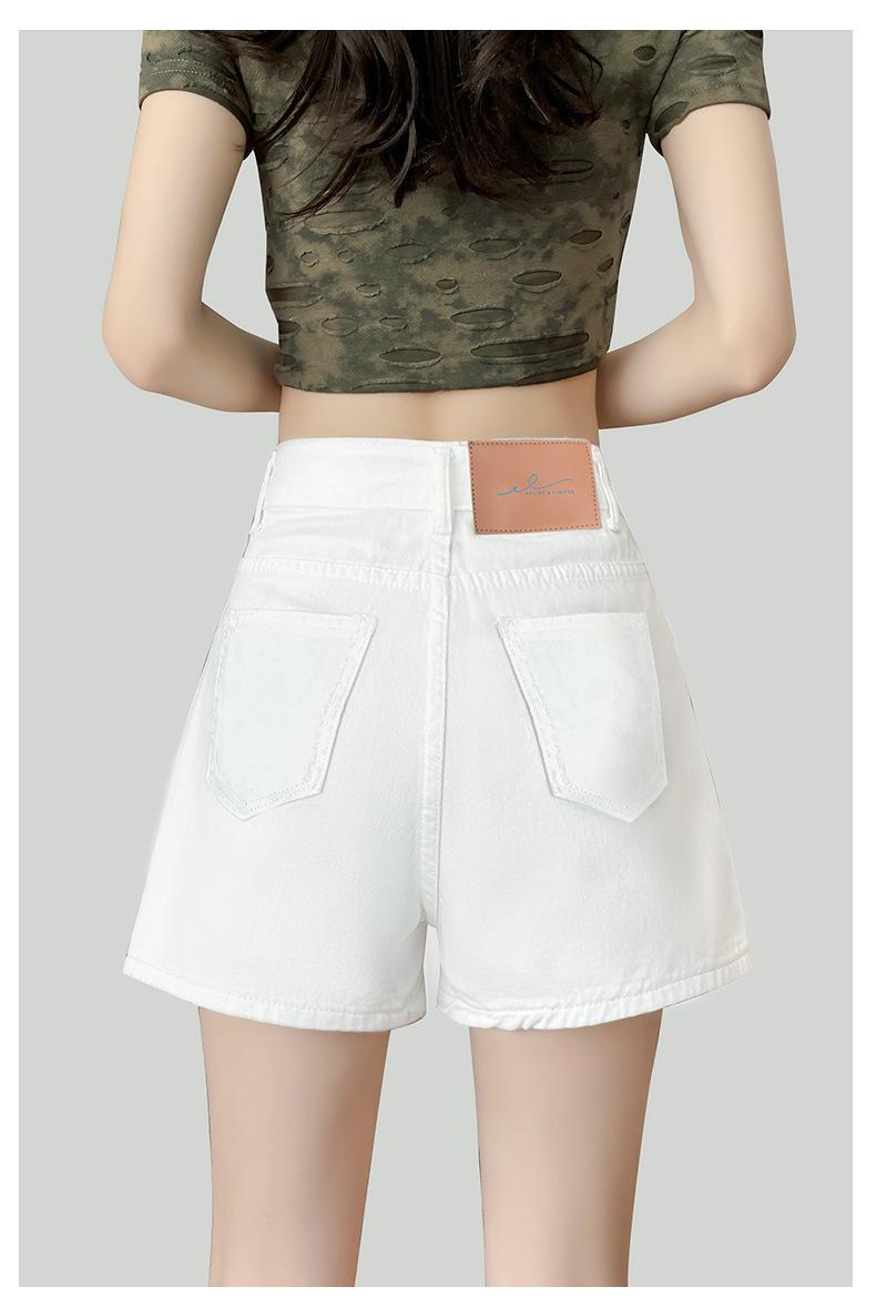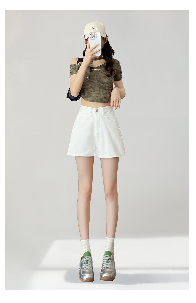 Shorts de mezclilla blanca para mujer Verano 2025 Nuevo estilo Pequeños Cintura alta Sueltos Look adelgazante Sexy Línea A Pantalones cortos