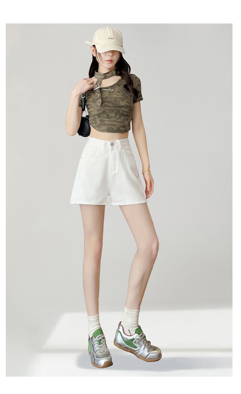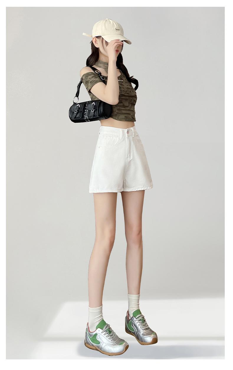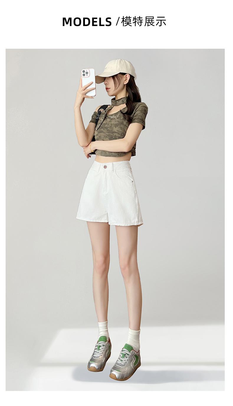 Shorts de mezclilla blanca para mujer Verano 2025 Nuevo estilo Pequeños Cintura alta Sueltos Look adelgazante Sexy Línea A Pantalones cortos