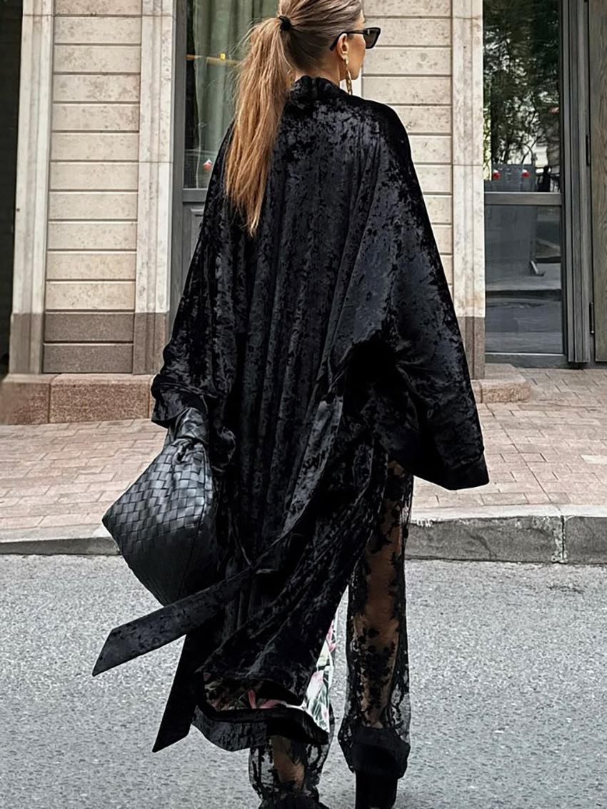 Nuevo Otoño/Invierno Suelto Versátil Cardigan de Lazo Vestido Manga Larga Diseño para Mujer Temperamento Moda 2025 Transfronterizo