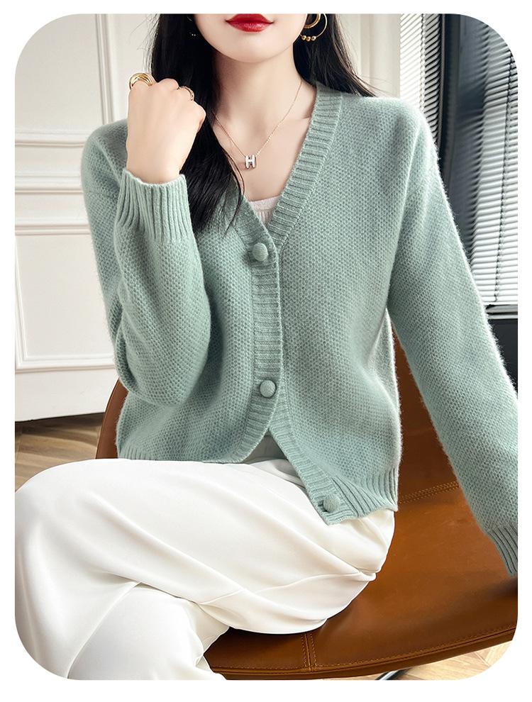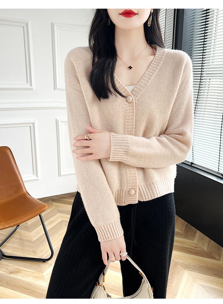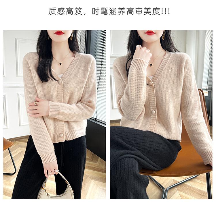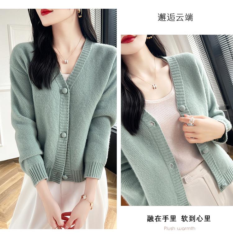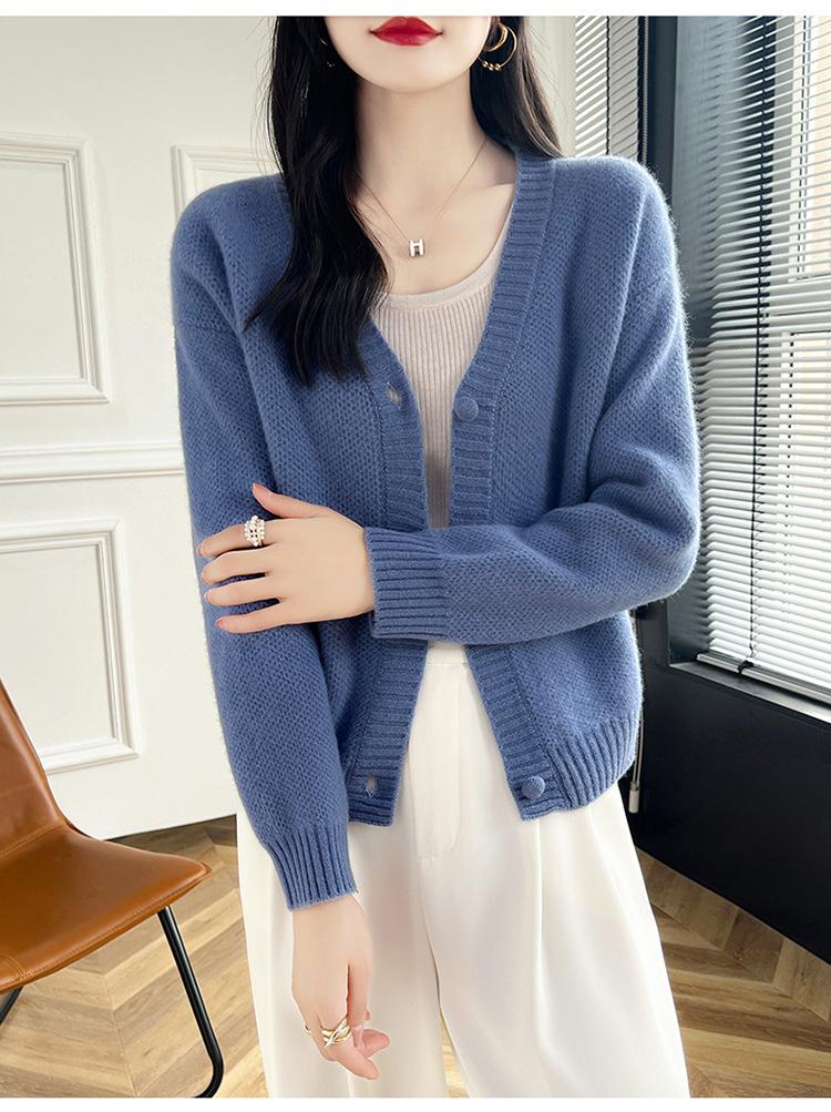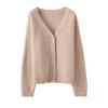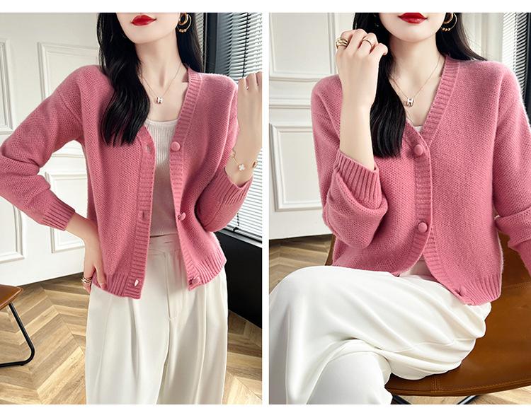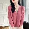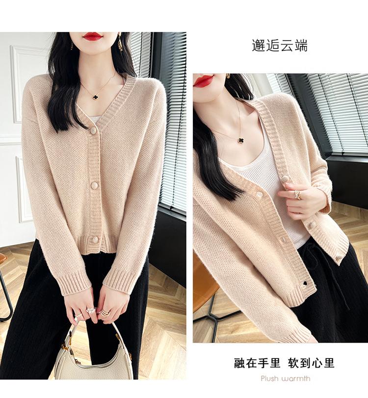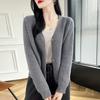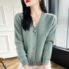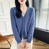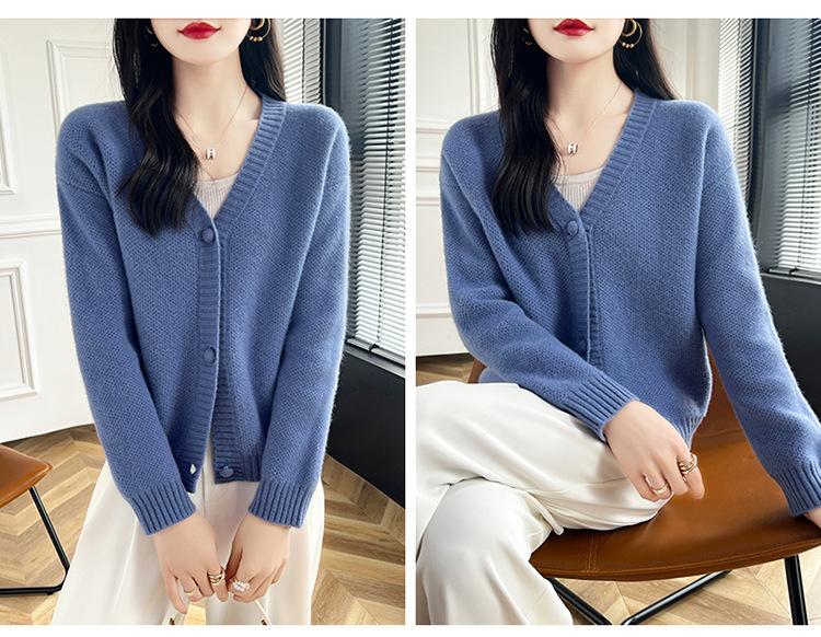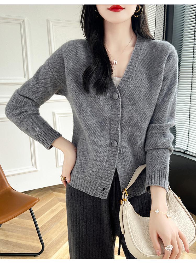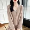 Otoño e Invierno 2024 Nuevo Cárdigan de Punto Casual de Lana Pura con Cuello en V para Mujer, Color Sólido, Suave, Encerado, Holgado, Abrigo para Mujer