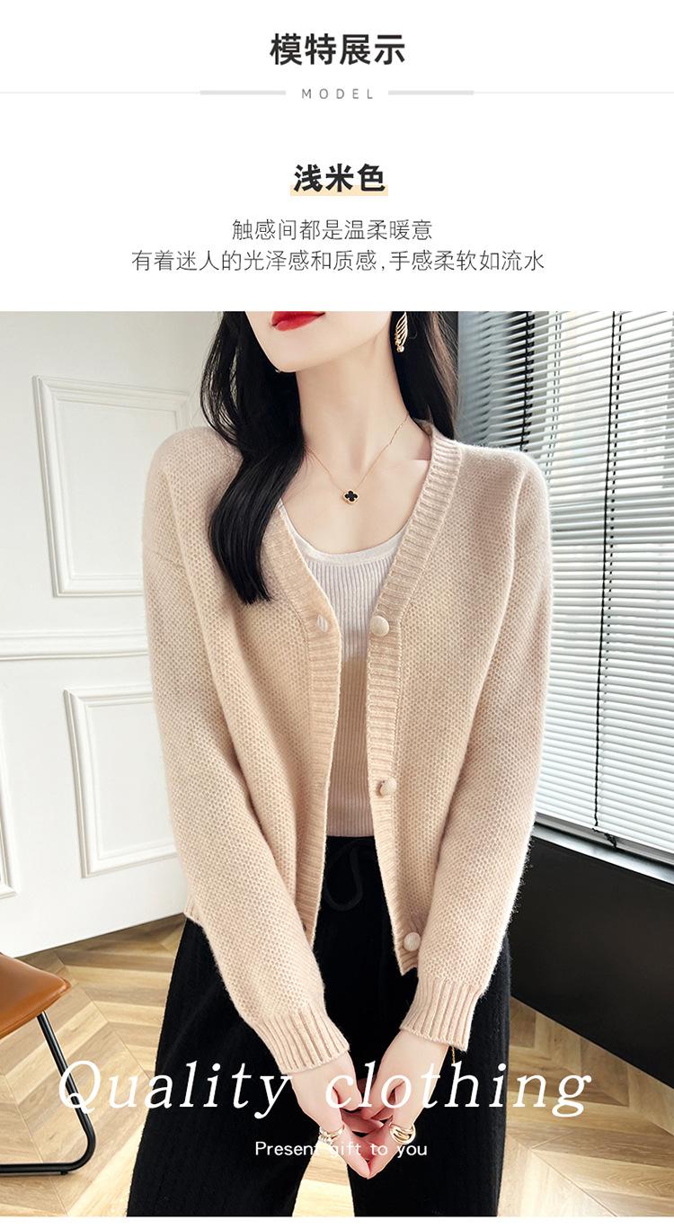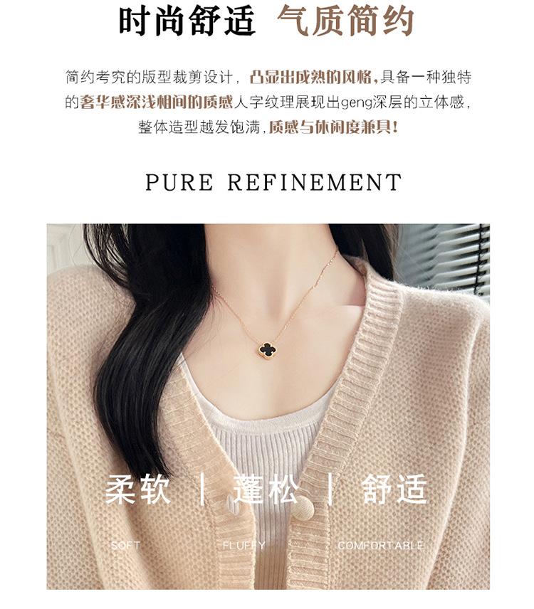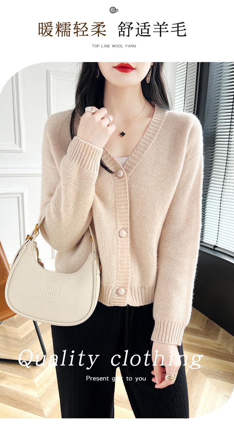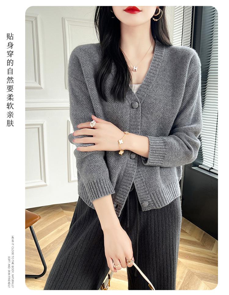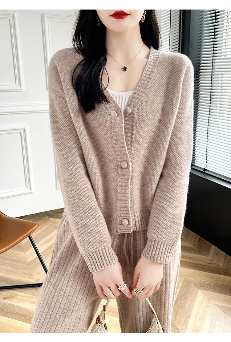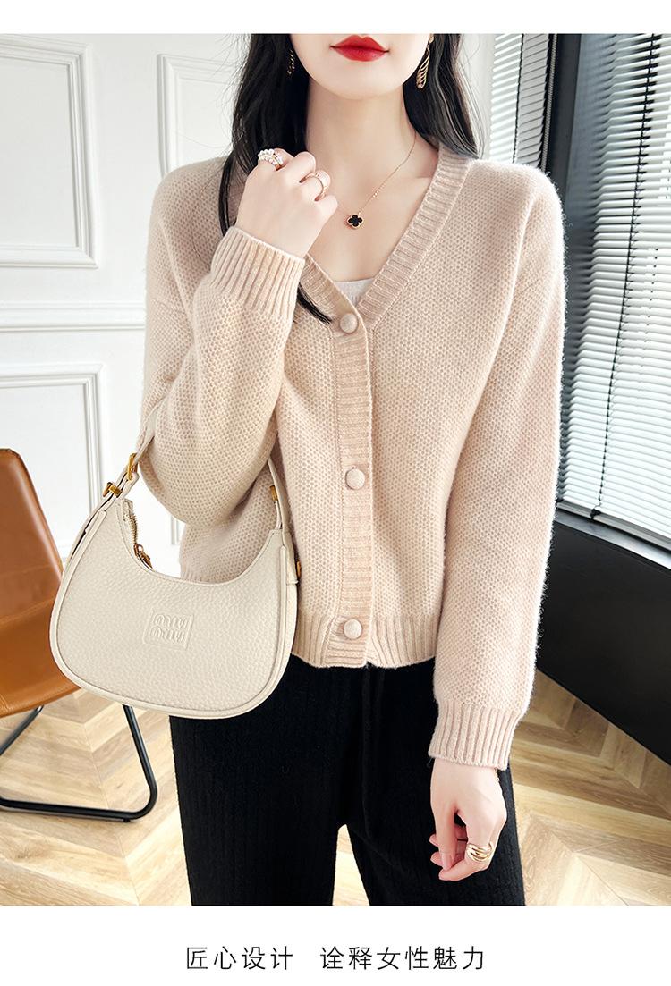 Otoño e Invierno 2024 Nuevo Cárdigan de Punto Casual de Lana Pura con Cuello en V para Mujer, Color Sólido, Suave, Encerado, Holgado, Abrigo para Mujer
