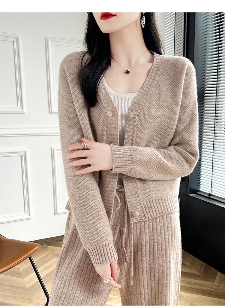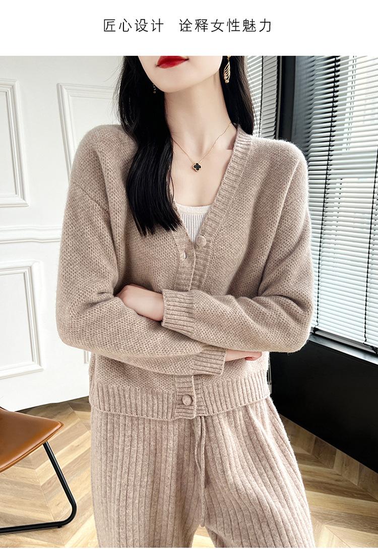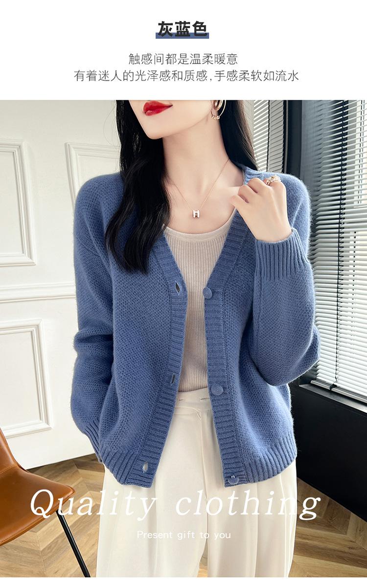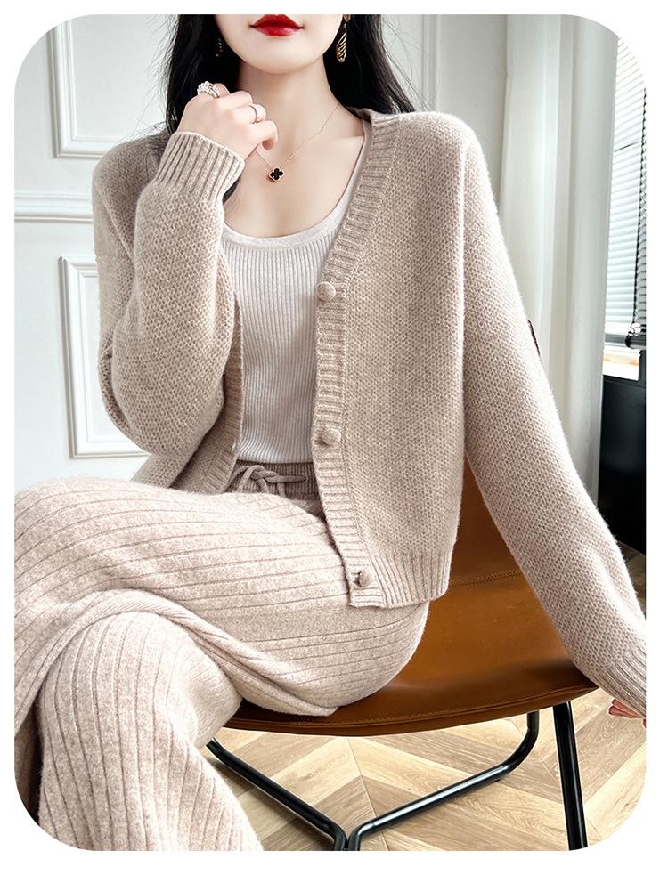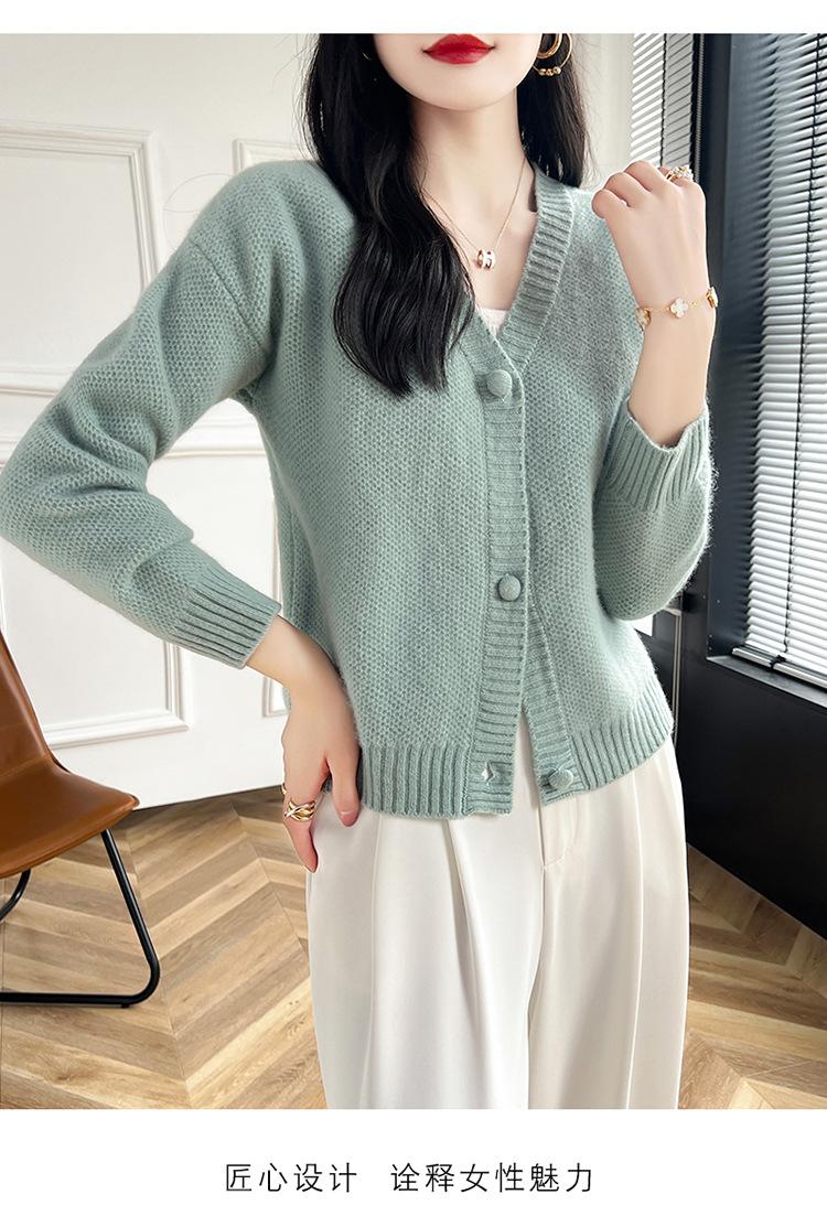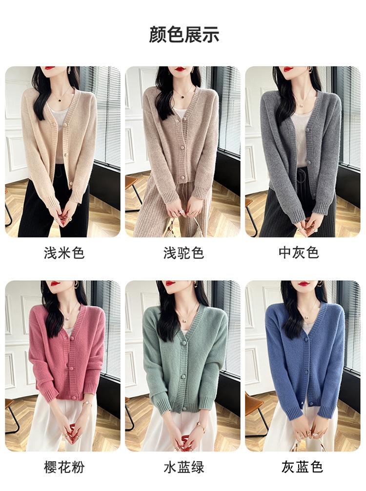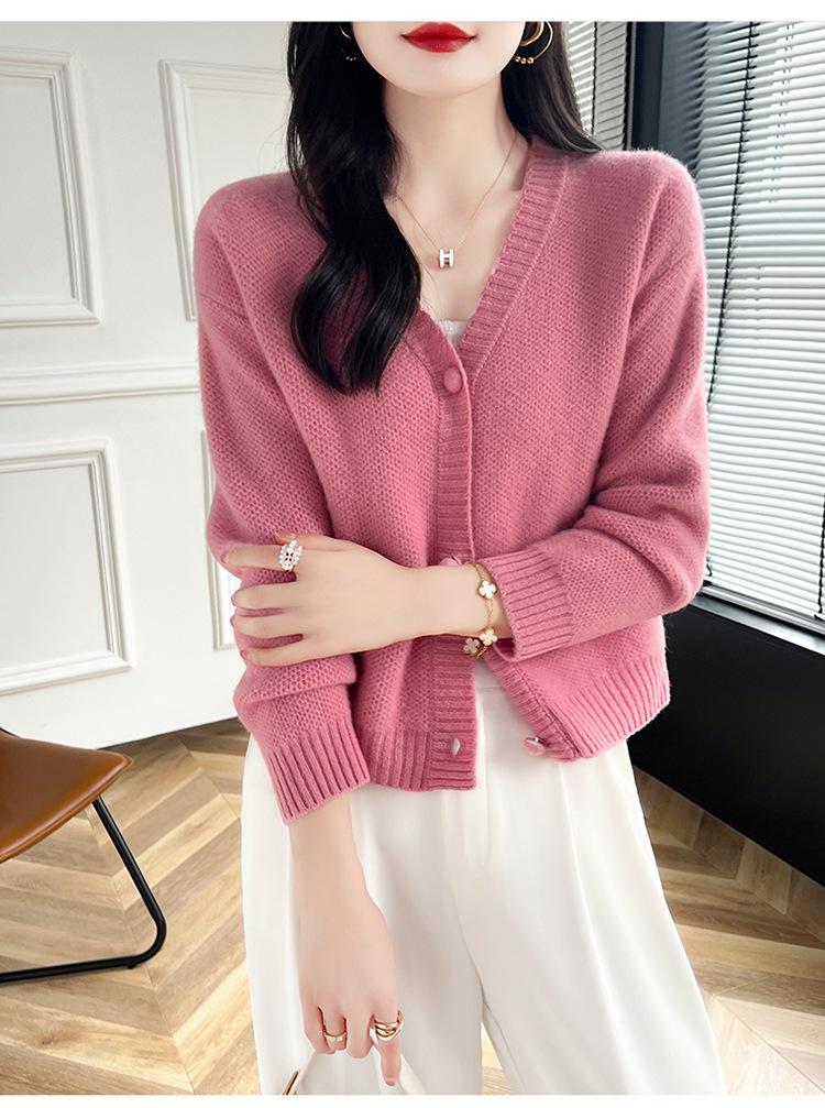 Otoño e Invierno 2024 Nuevo Cárdigan de Punto Casual de Lana Pura con Cuello en V para Mujer, Color Sólido, Suave, Encerado, Holgado, Abrigo para Mujer