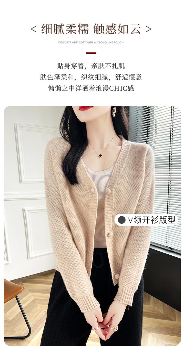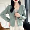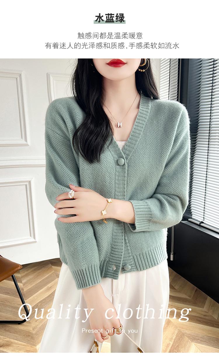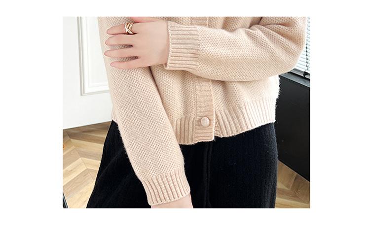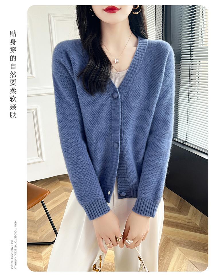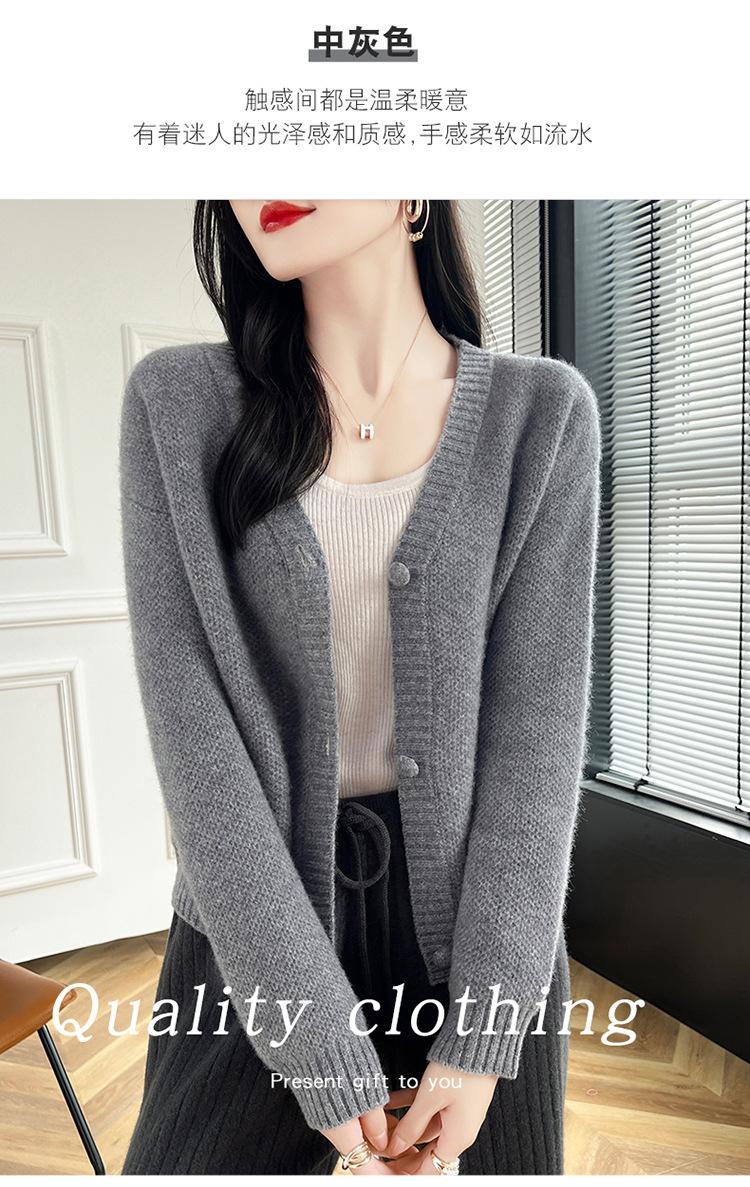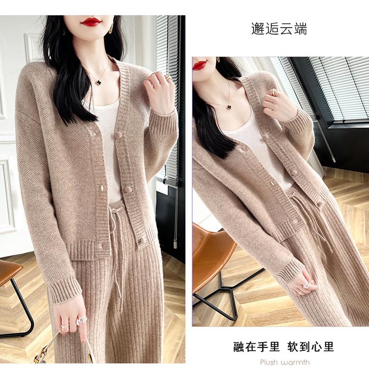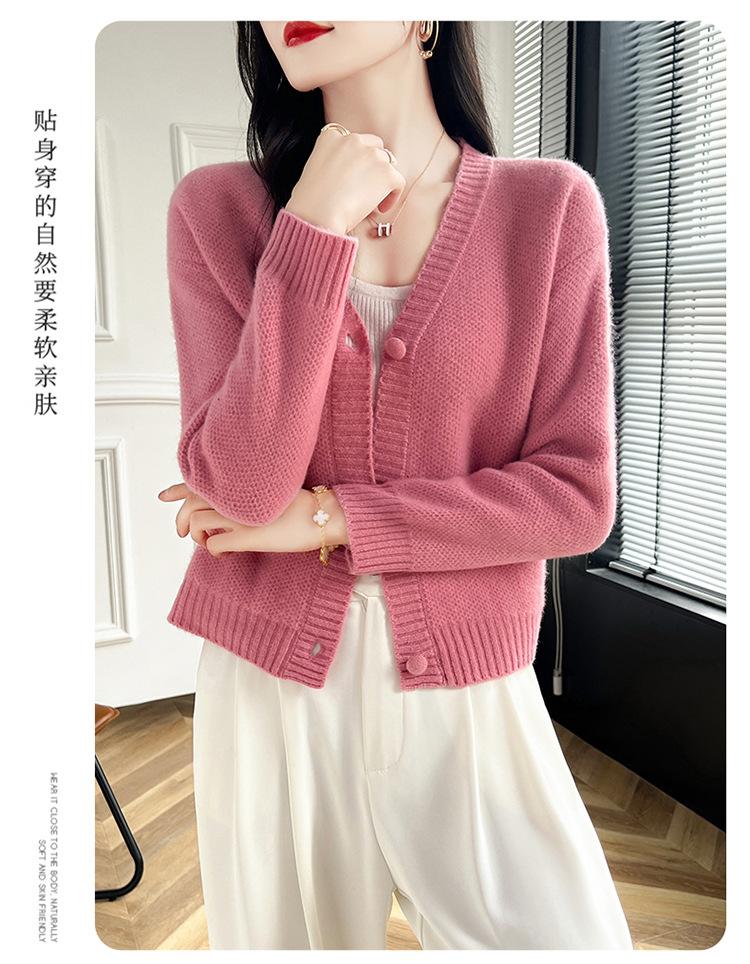 Otoño e Invierno 2024 Nuevo Cárdigan de Punto Casual de Lana Pura con Cuello en V para Mujer, Color Sólido, Suave, Encerado, Holgado, Abrigo para Mujer
