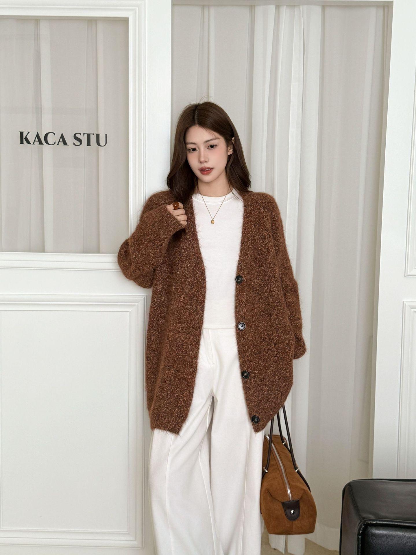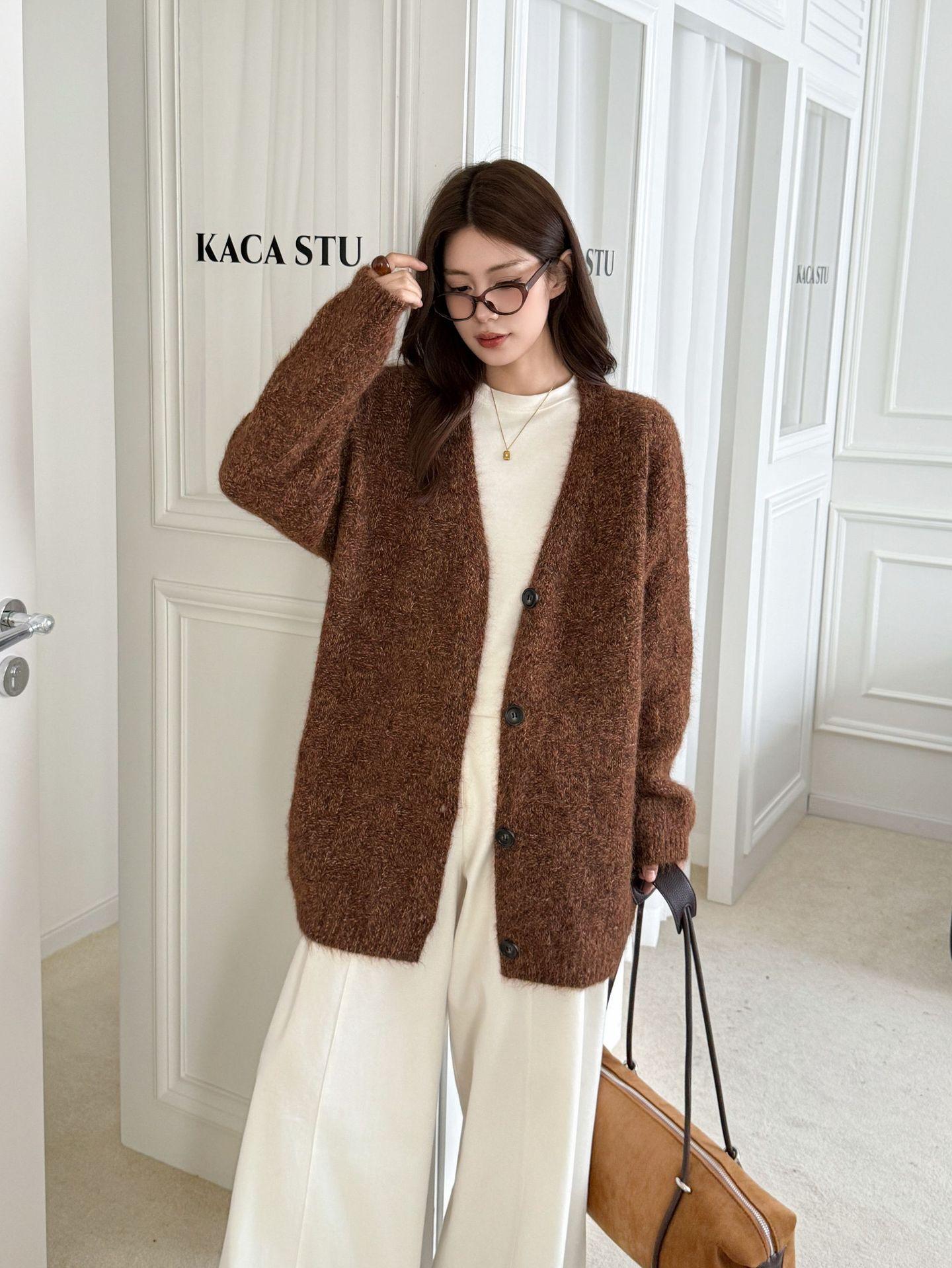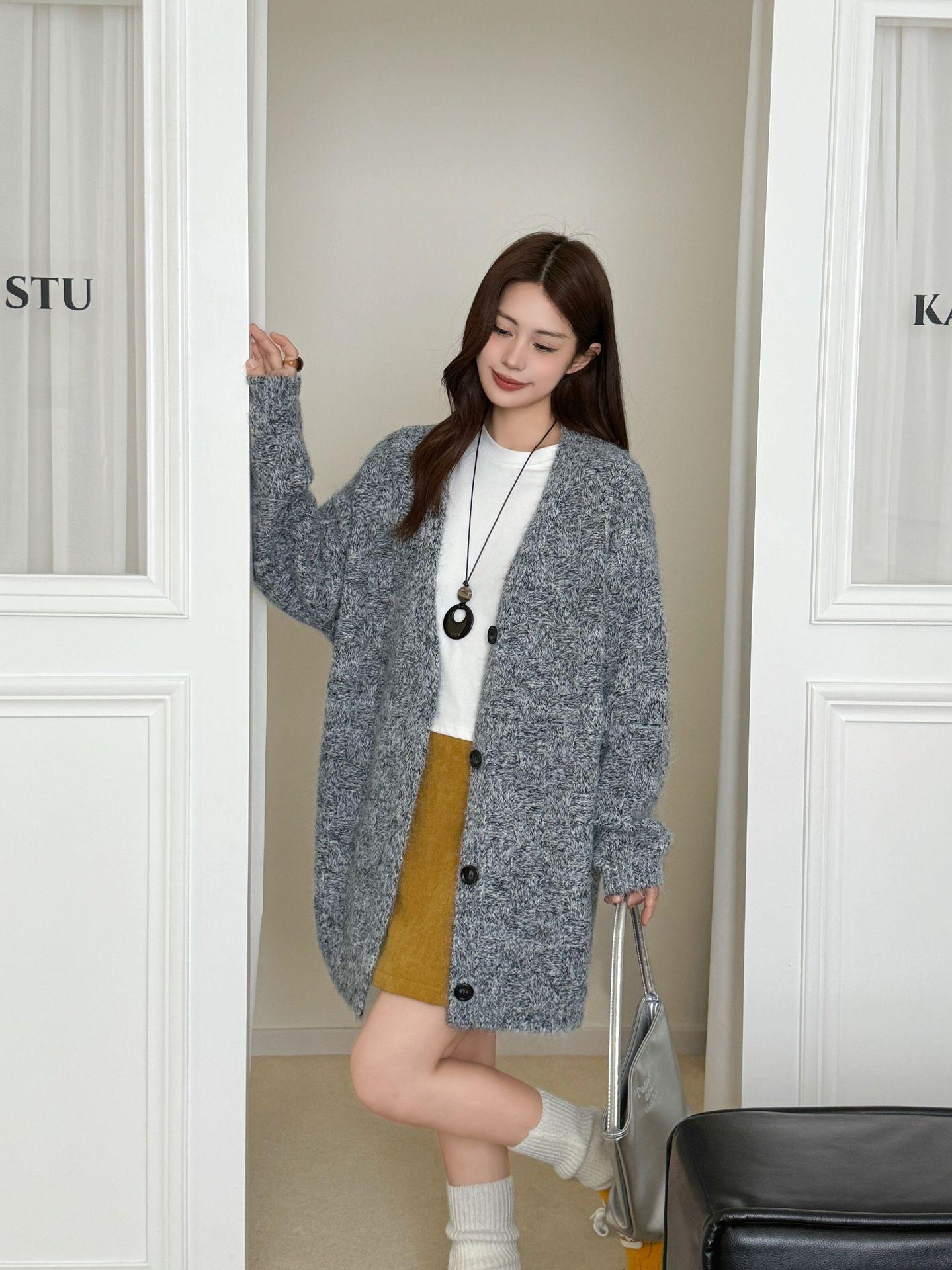 Cárdigan abrigo de punto suave de color sólido estilo coreano otoño 2025 con cuello en V para mujer, nuevo estilo holgado y perezoso para otoño/invierno