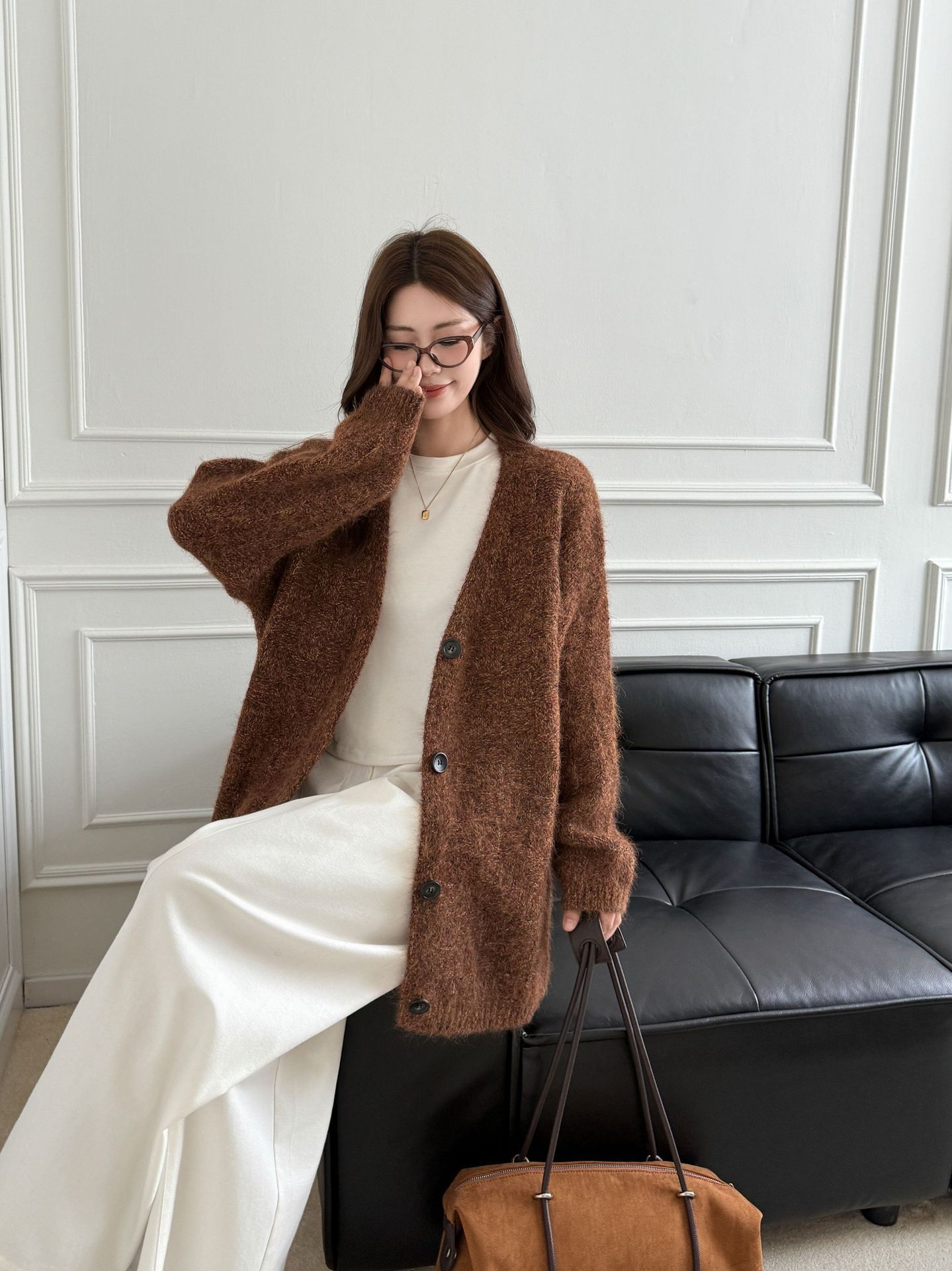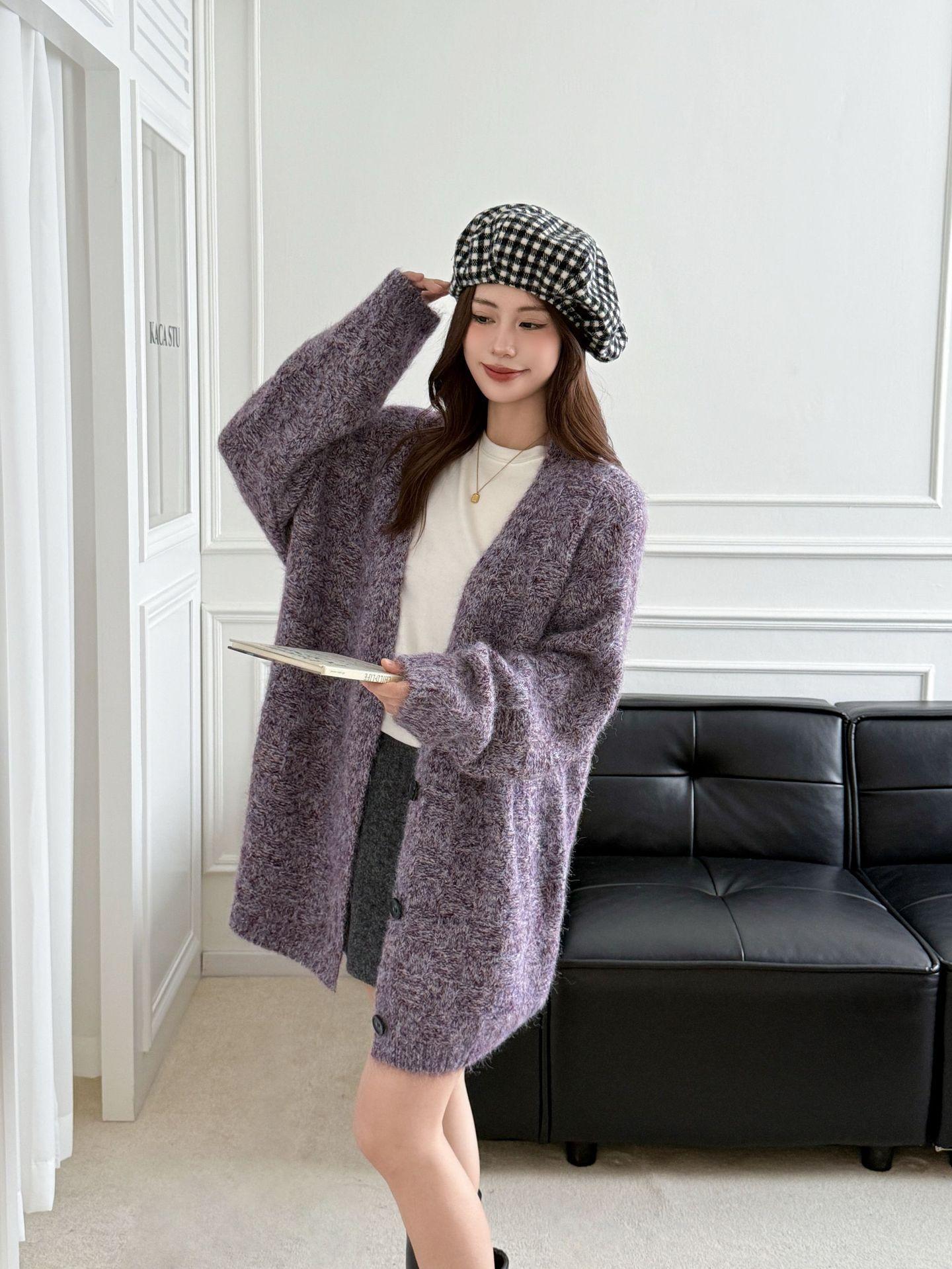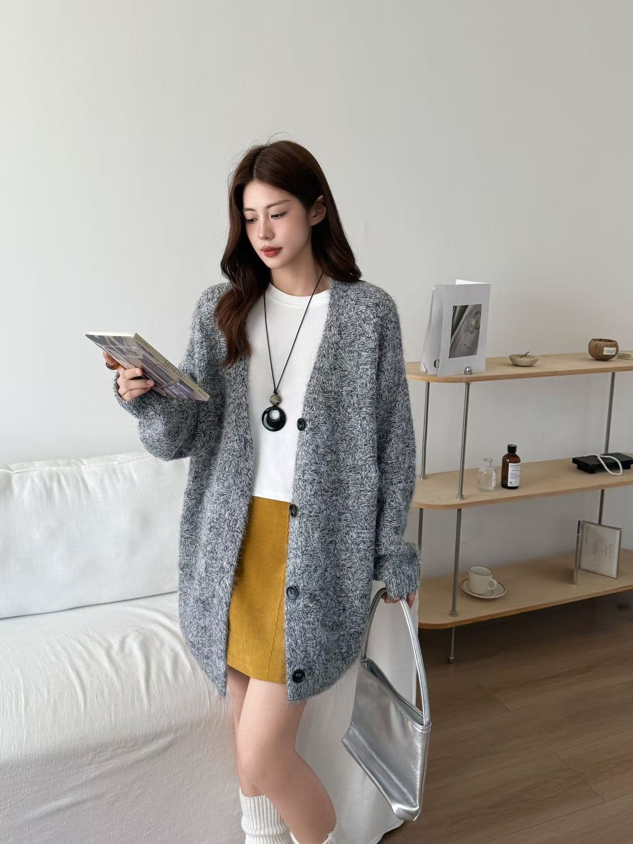 Cárdigan abrigo de punto suave de color sólido estilo coreano otoño 2025 con cuello en V para mujer, nuevo estilo holgado y perezoso para otoño/invierno