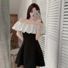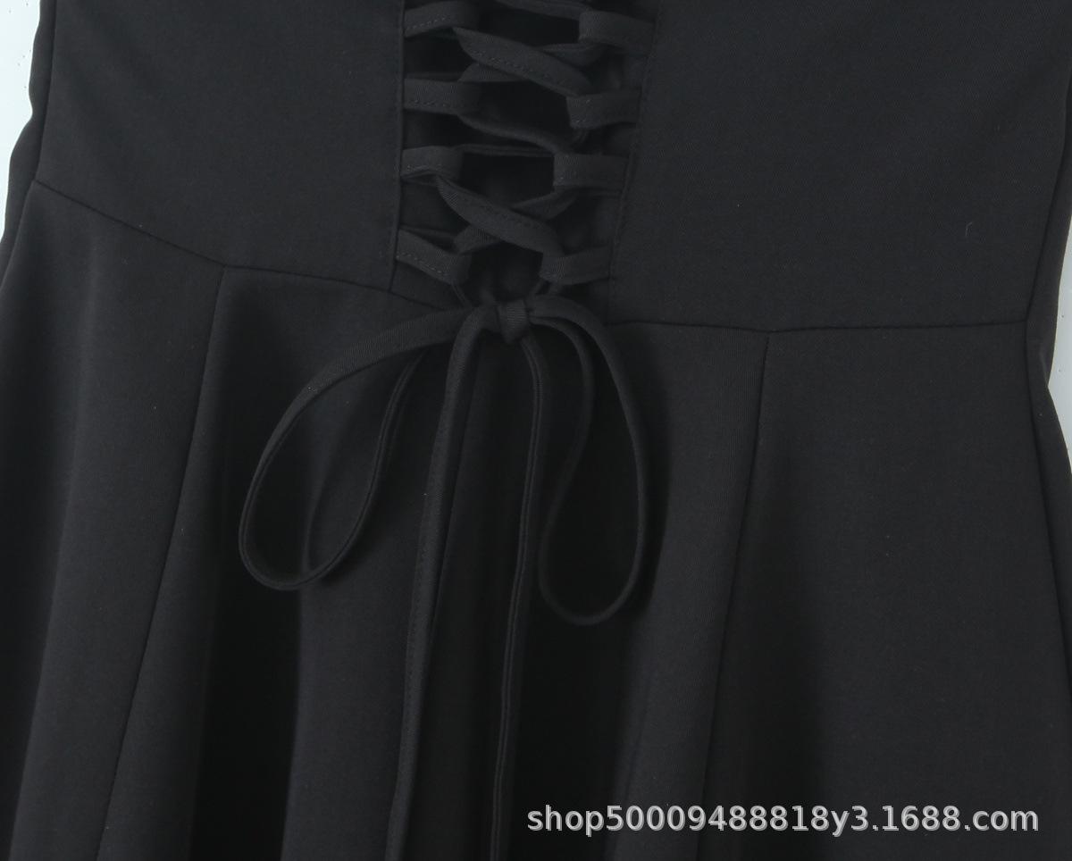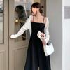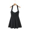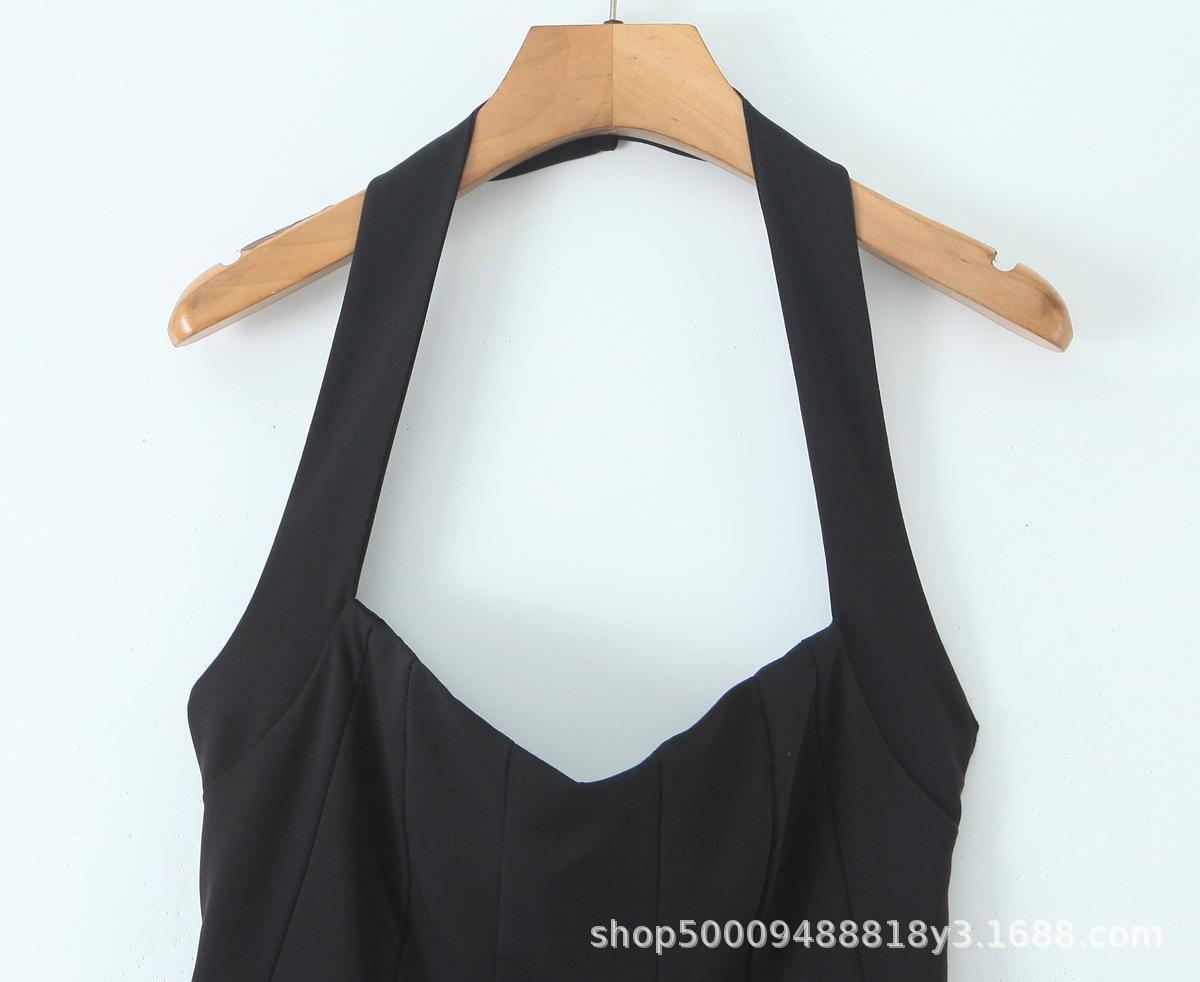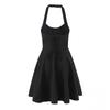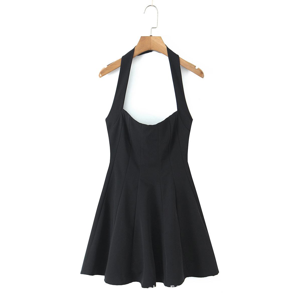 Vestido Negro Elegante de Verano Estilo Hepburn Retro Francés para Mujer con Lazo en la Cintura, Vestido Sexy con Cuello Halter de Puro Deseo