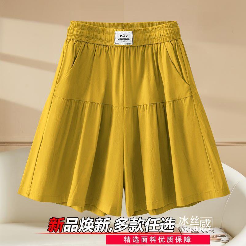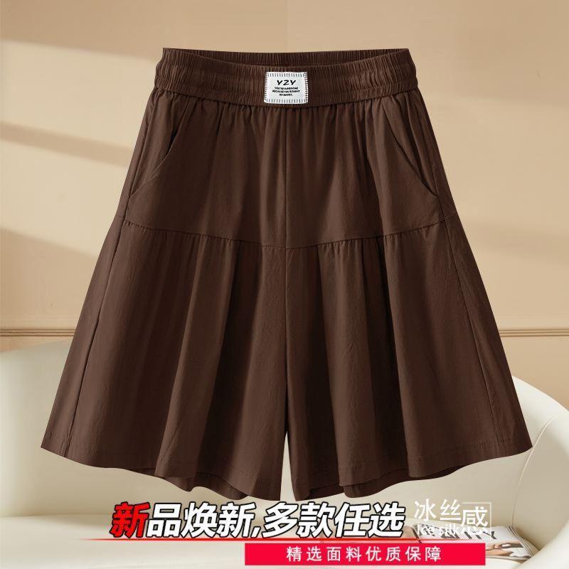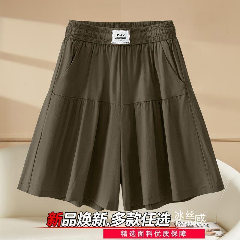Shorts de Seda de Hielo para Mujer 2025 Verano Nuevo Cintura Alta Sueltos Delgados Secado Rápido Pantalones Falda Casuales de Pierna Ancha Largo Medio