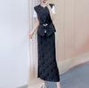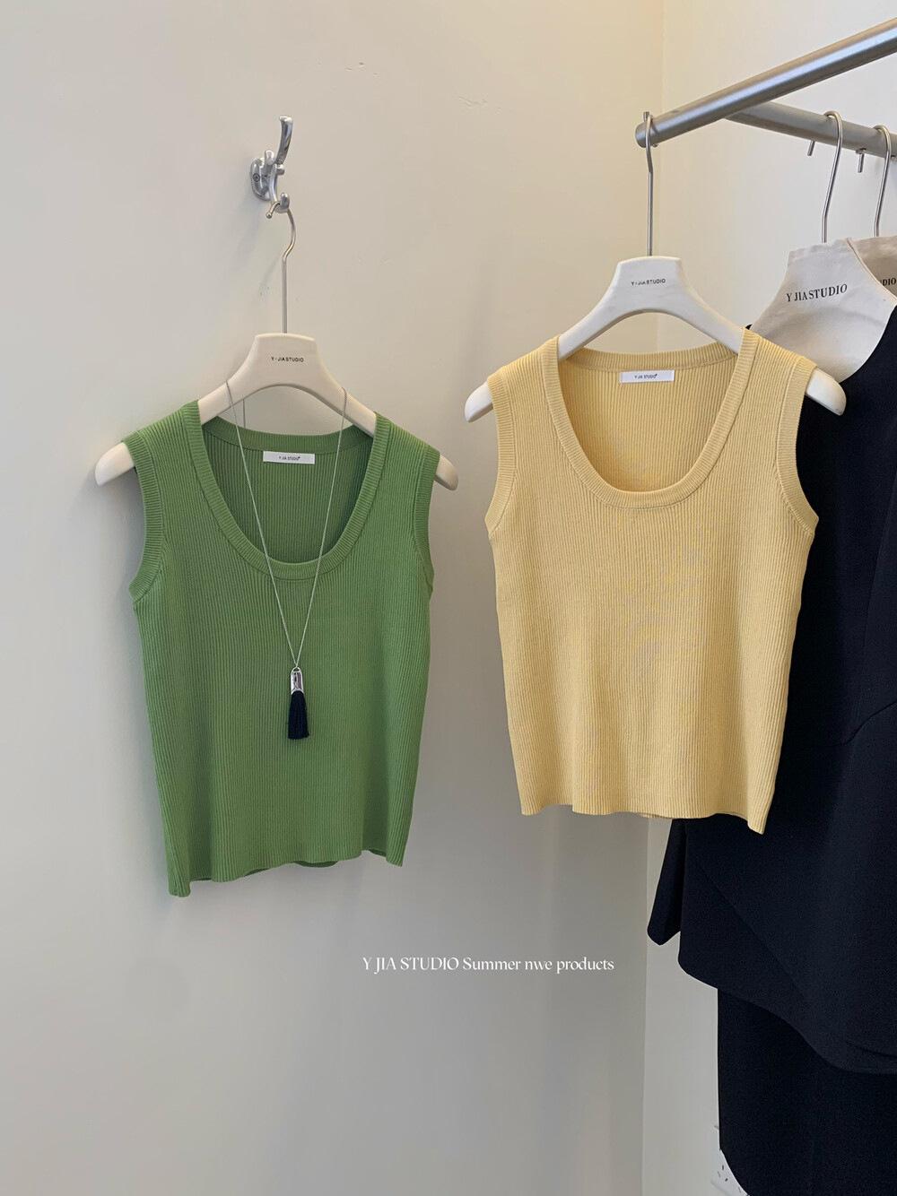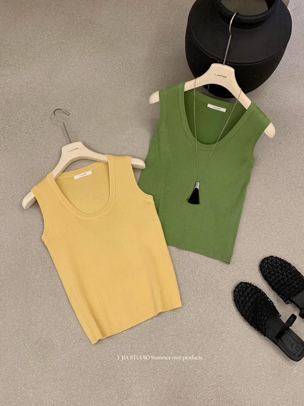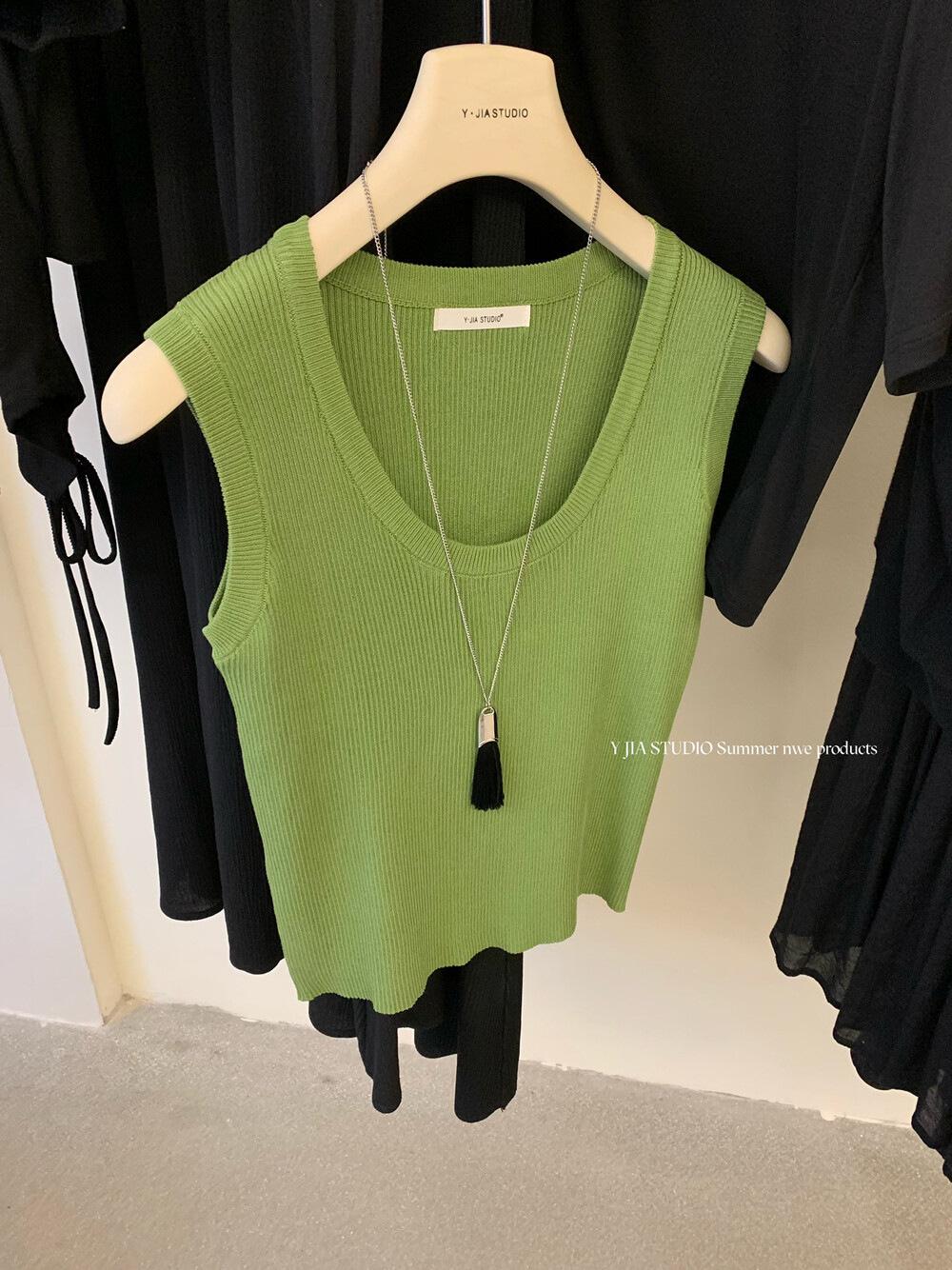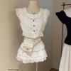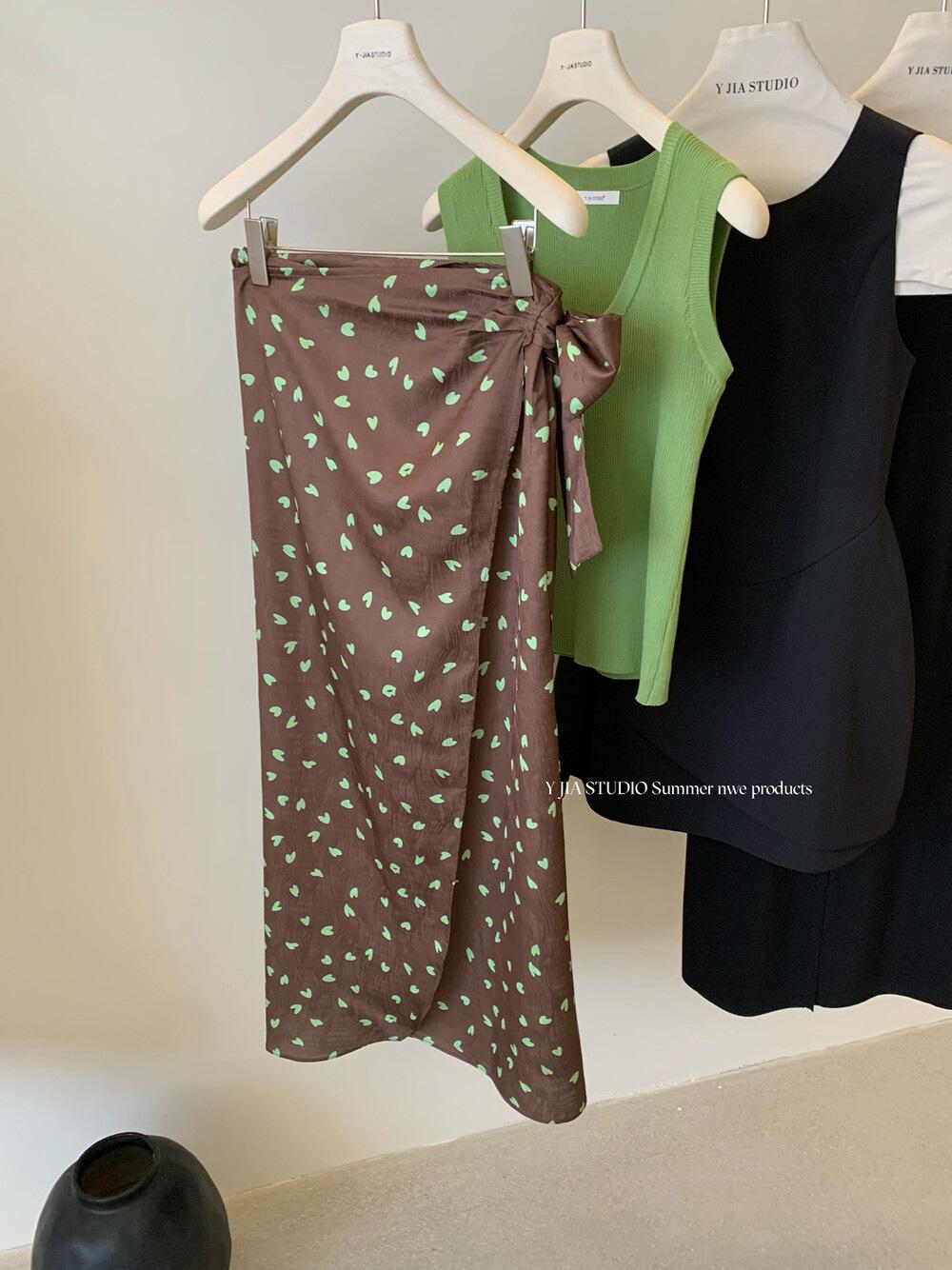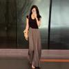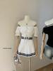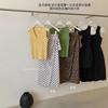 Liquidación, Sin Devoluciones ni Cambios. Falda de una pieza de cintura alta estilo coreano con lazo + Top de punto sin mangas de color sólido simple 3065