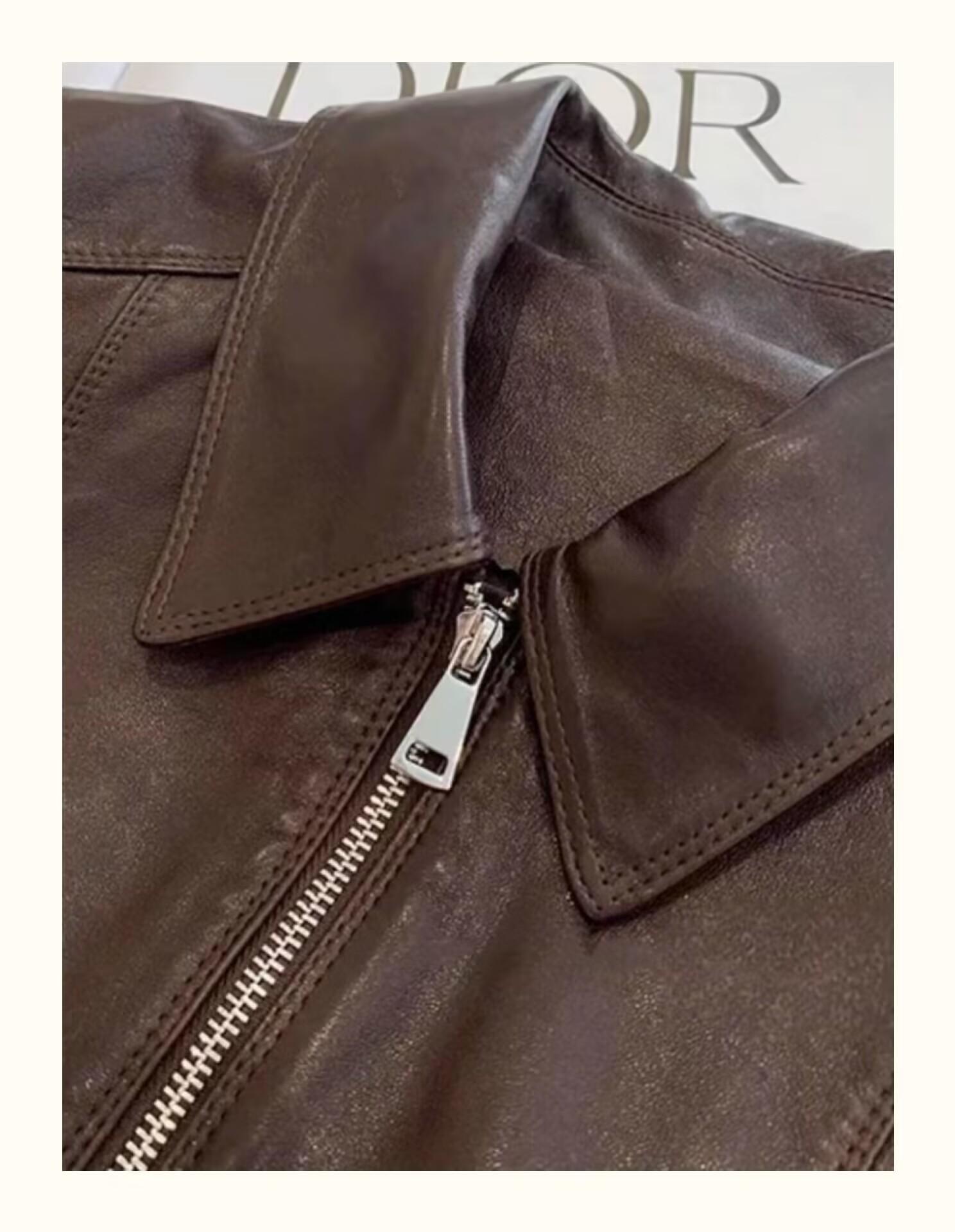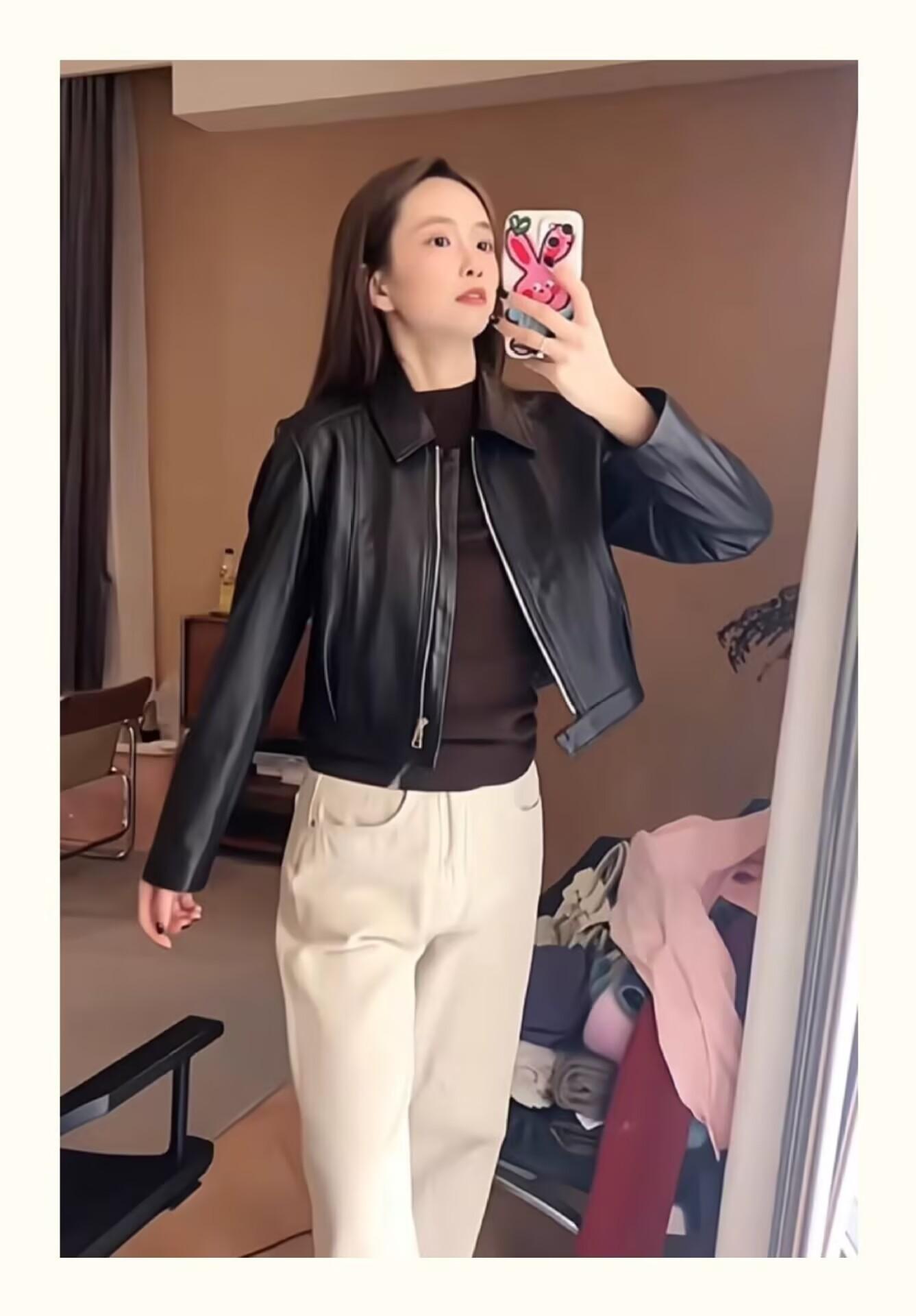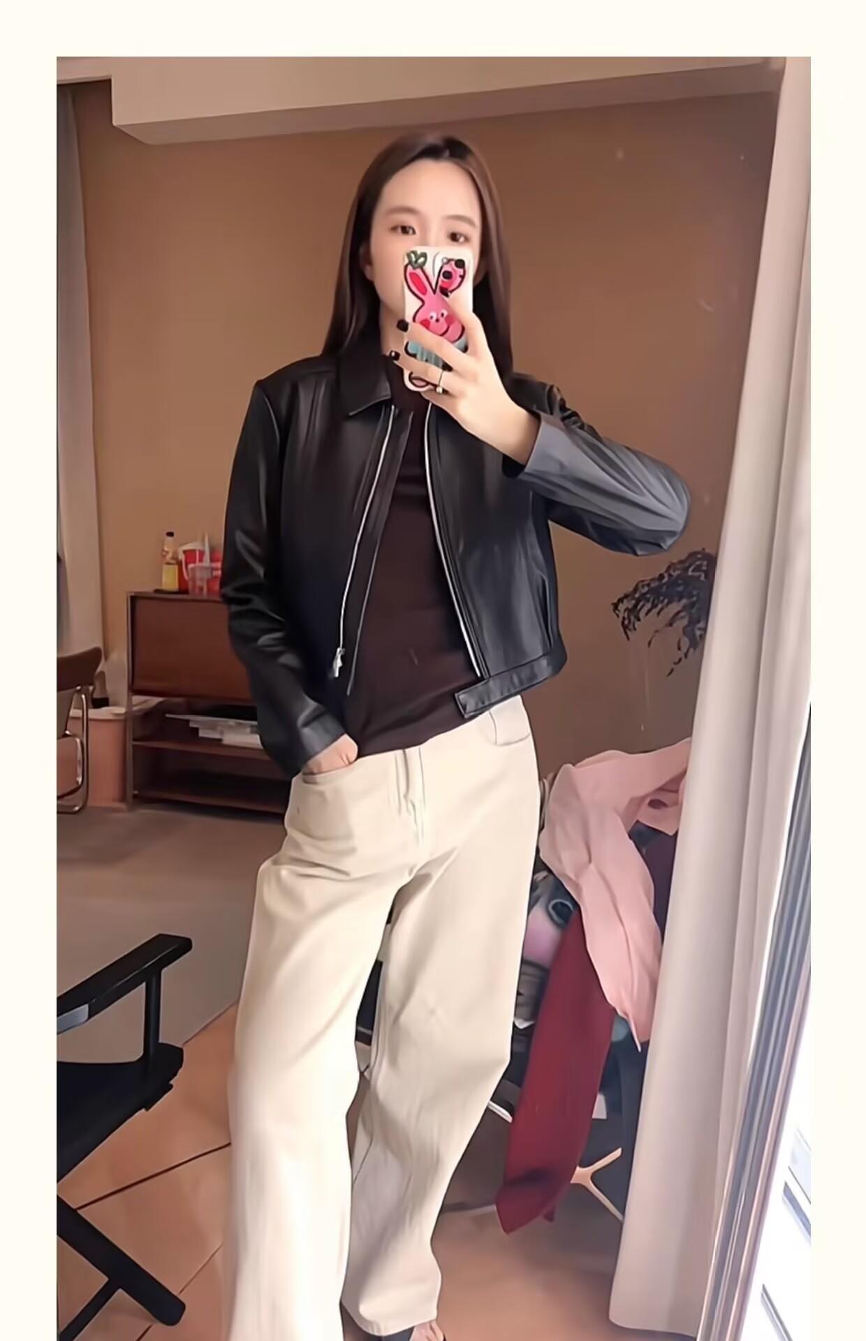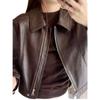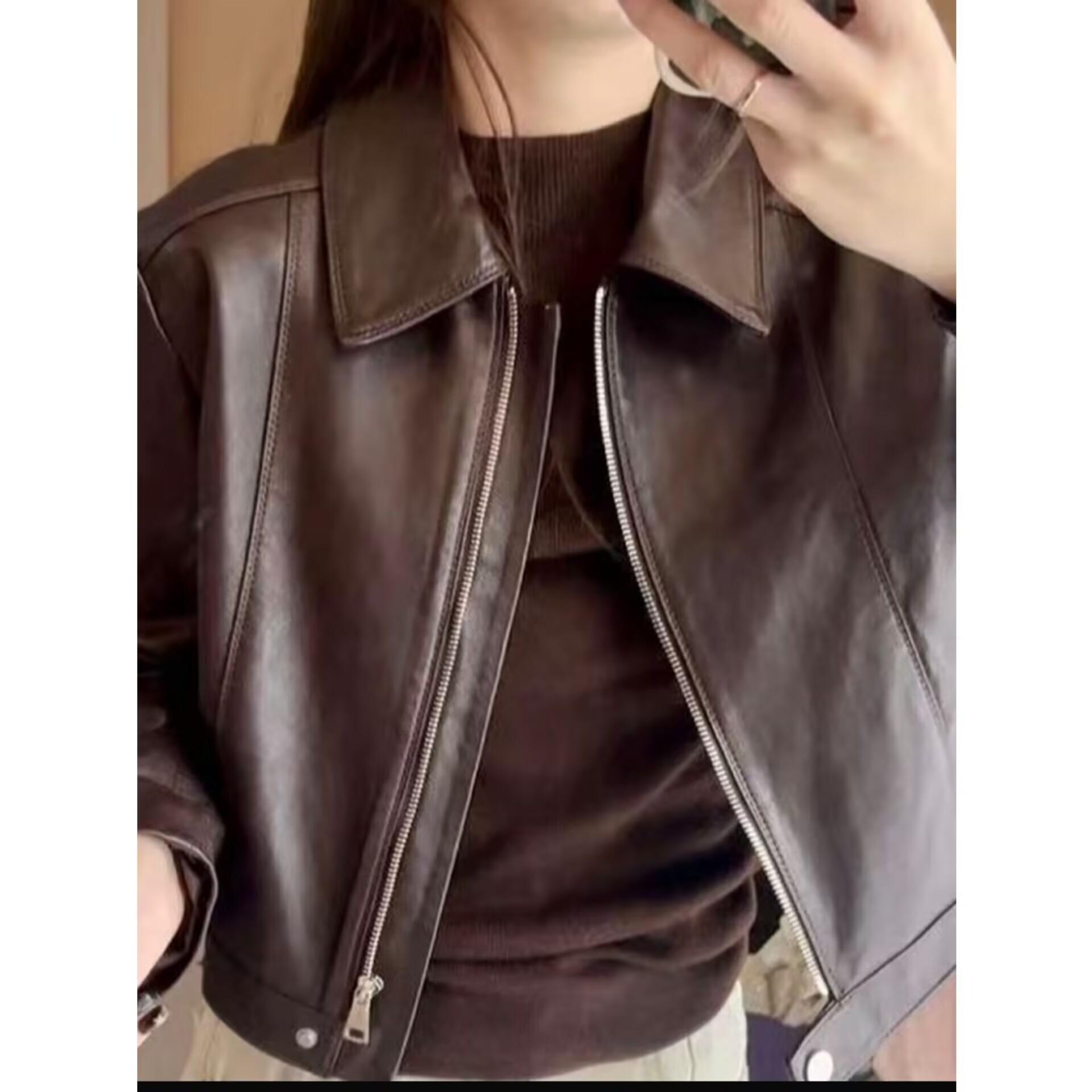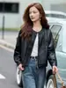 Chaqueta Negra de Primavera y Otoño de Alta Gama Corta Adelgazante Cremallera Americano Retro Estilo Hong Kong Petite Estilo Caliente Chaqueta de Cuero Abrigo Mujer