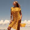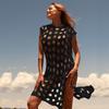 Europeo y Americano 2023 Nuevo Estilo Tejido Calado Redondo Grande Jersey de Una Pieza Vacaciones Casual Playa Bikini Vestido de Mujer