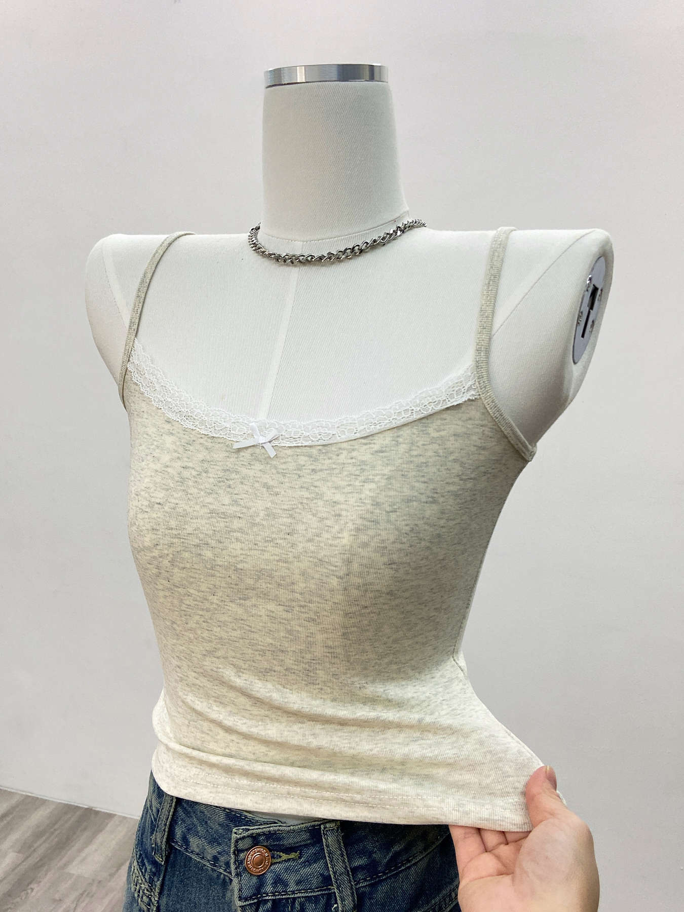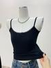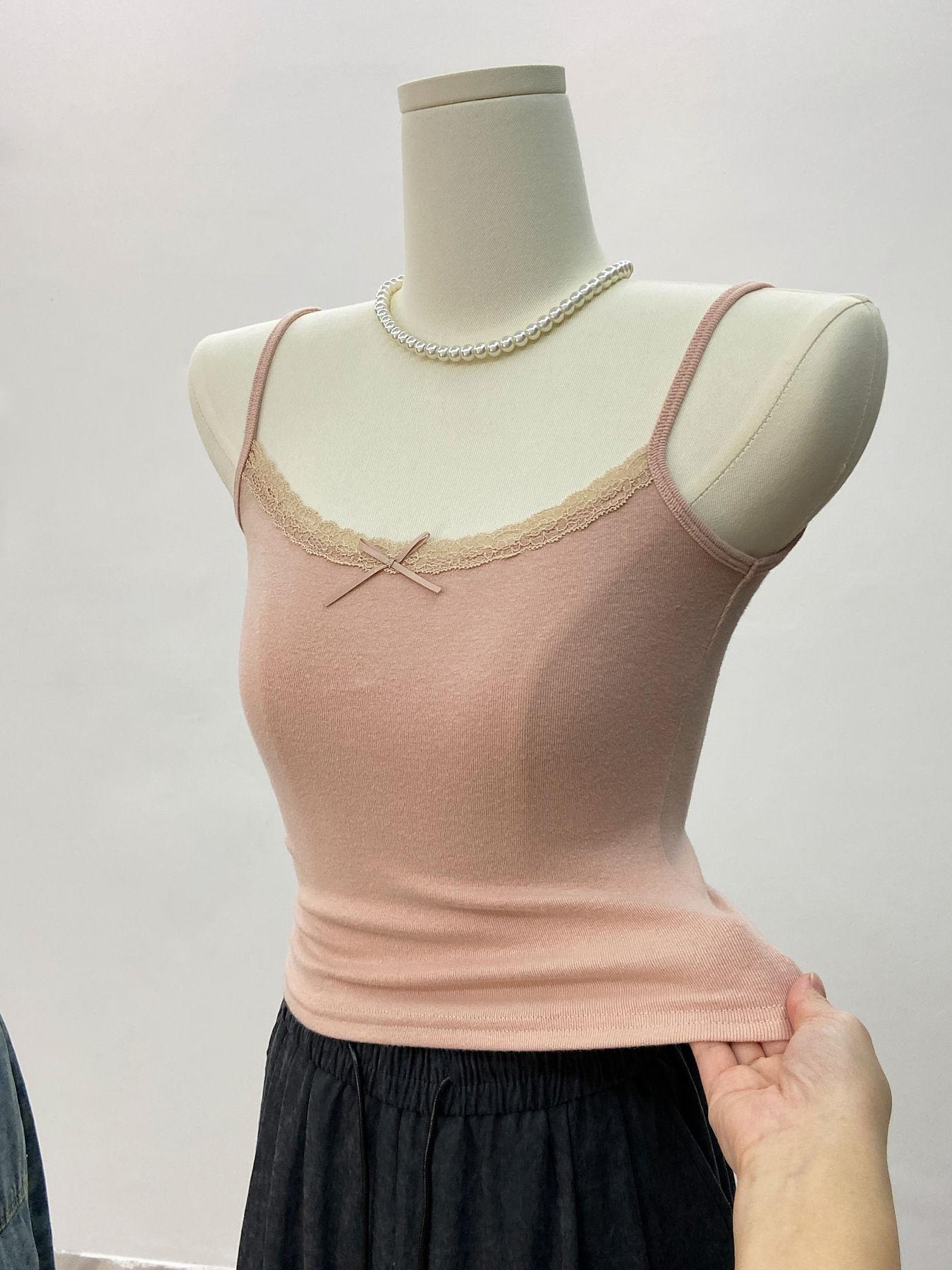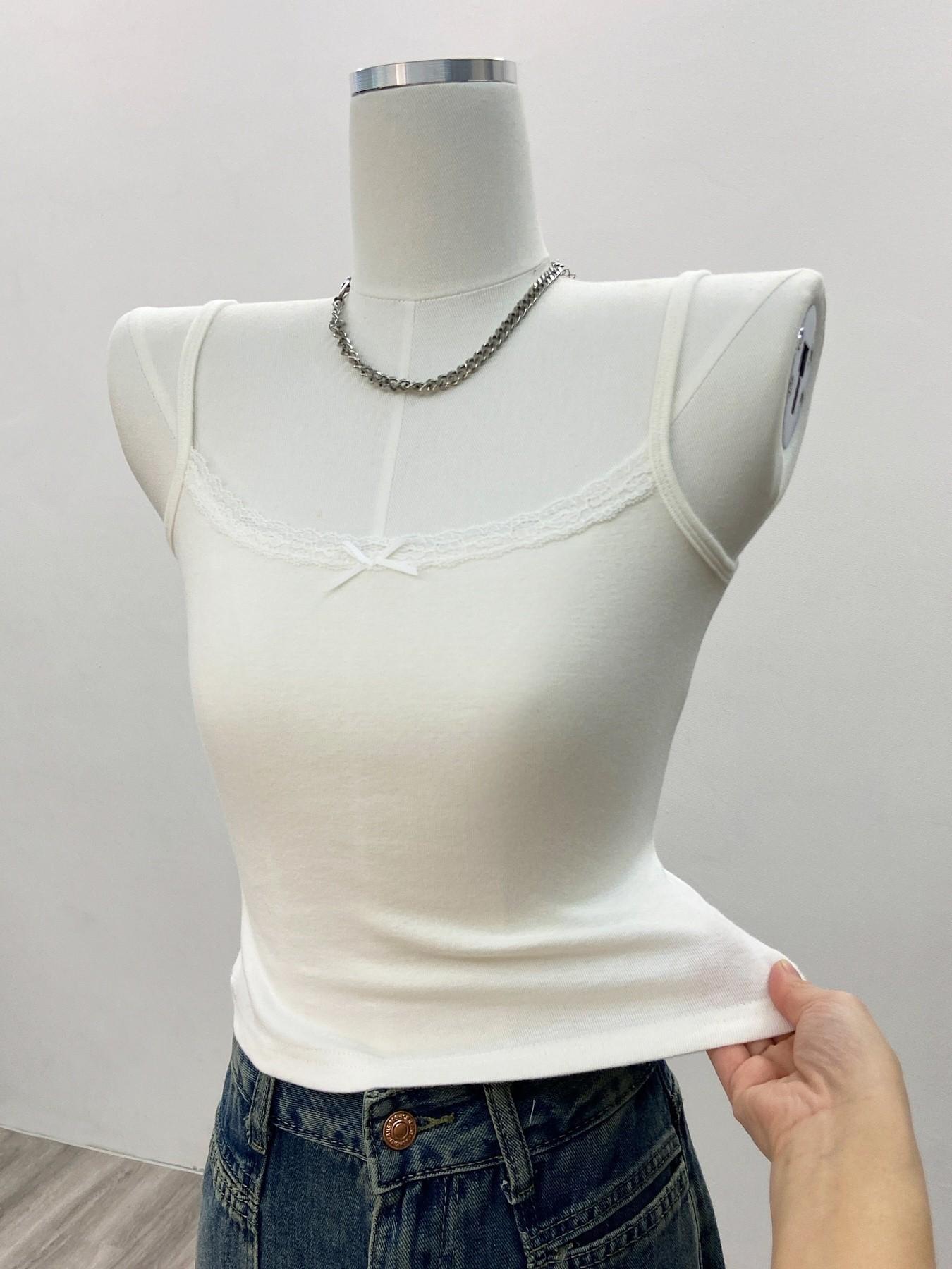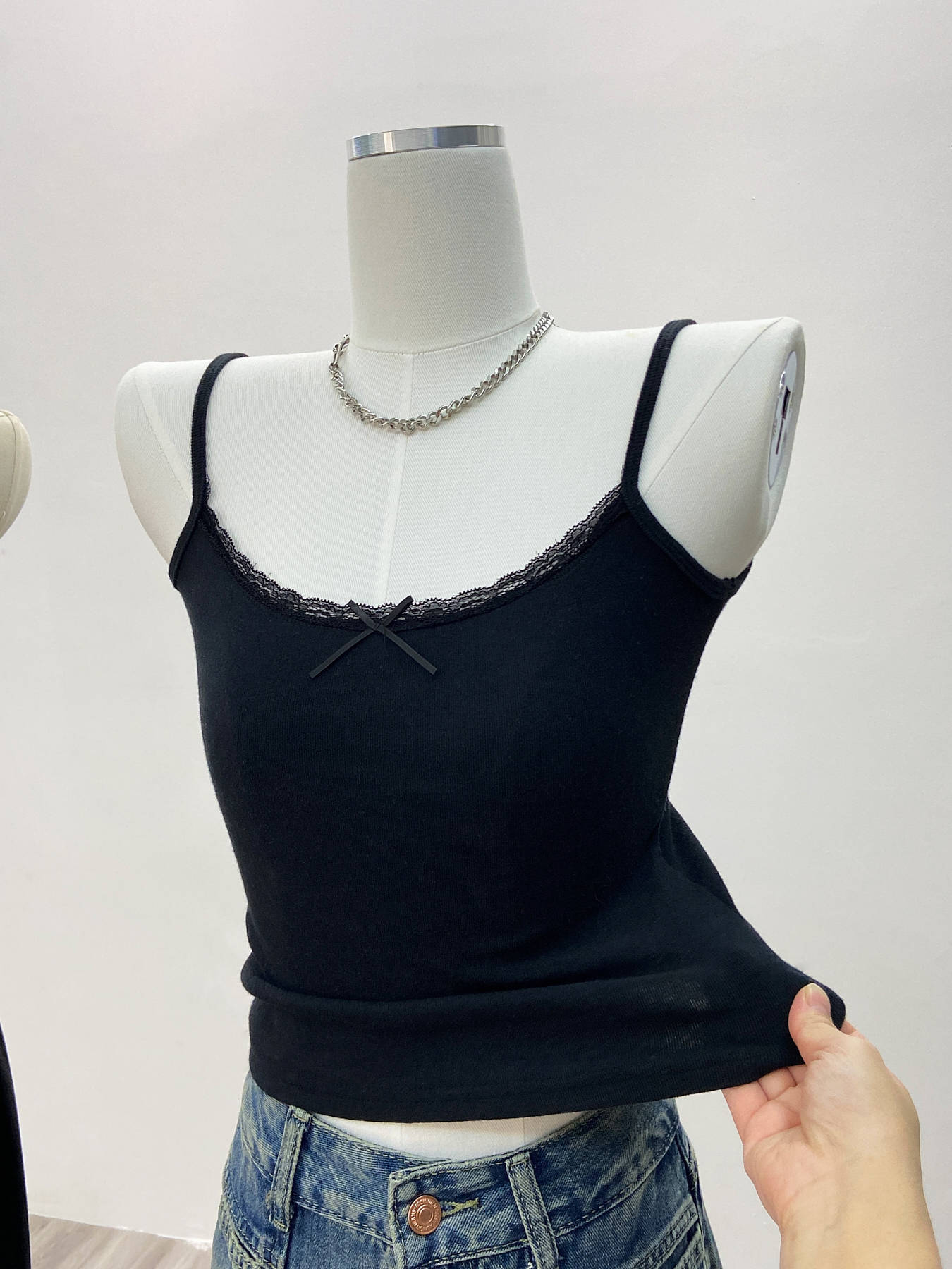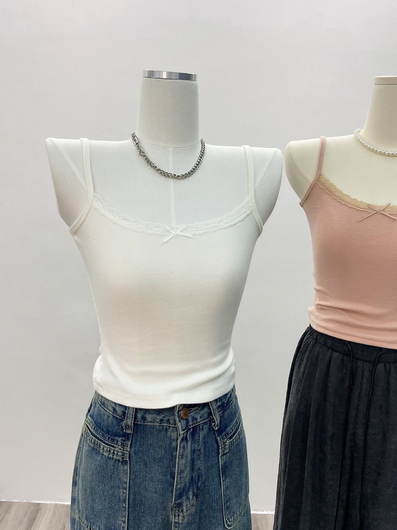 Top Corto de Tirantes sin Mangas con Encaje Bm para Mujer Verano Ropa Interior Chaleco a Prueba de Luz Puro Deseo Viento Ropa Exterior Espalda Hermosa