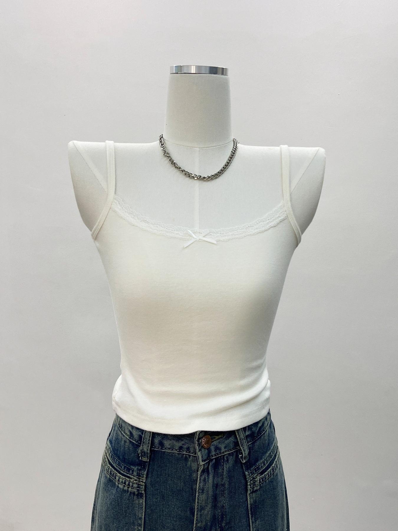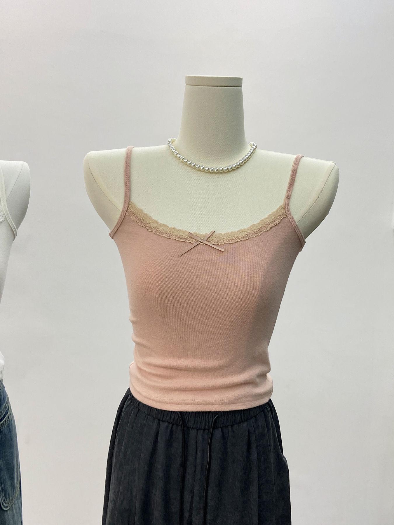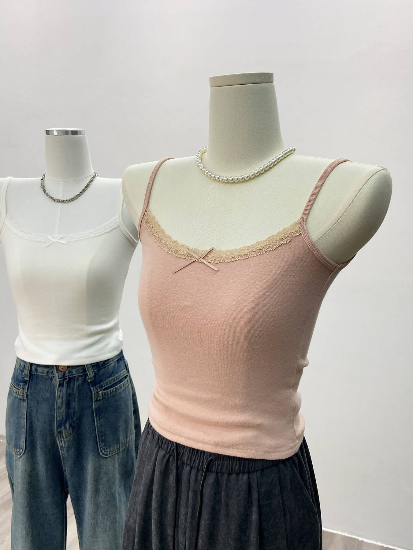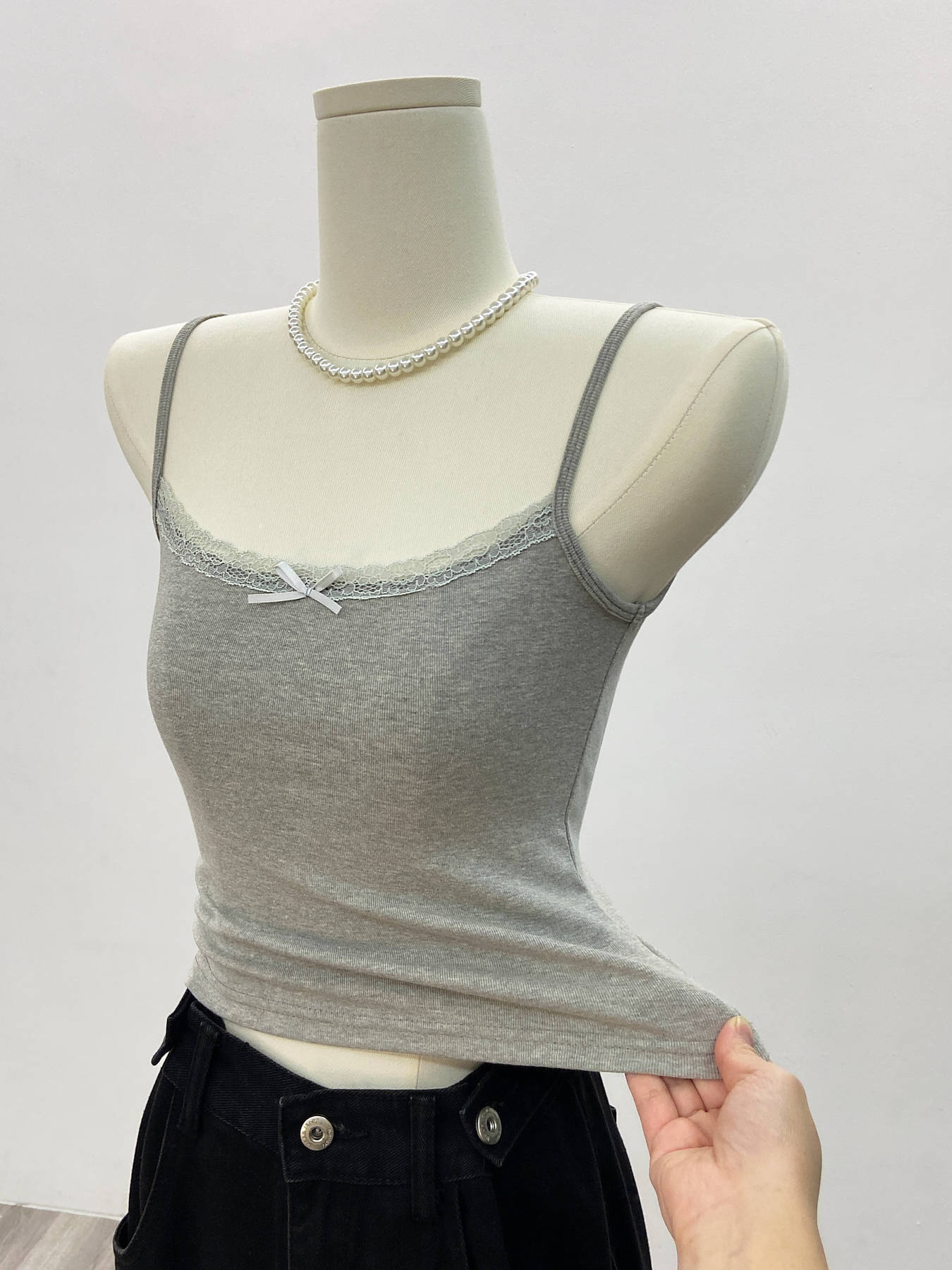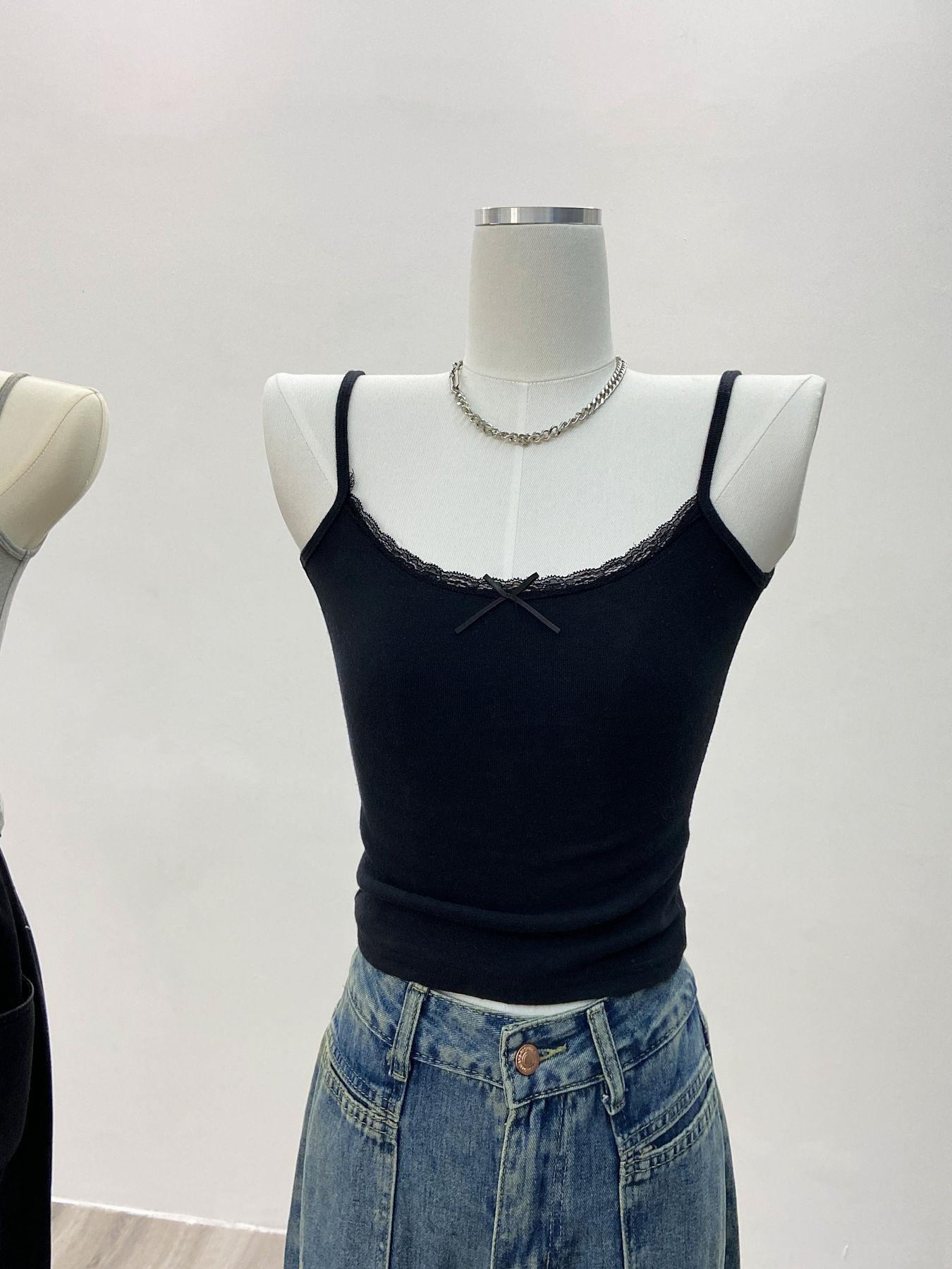 Top Corto de Tirantes sin Mangas con Encaje Bm para Mujer Verano Ropa Interior Chaleco a Prueba de Luz Puro Deseo Viento Ropa Exterior Espalda Hermosa