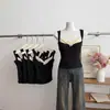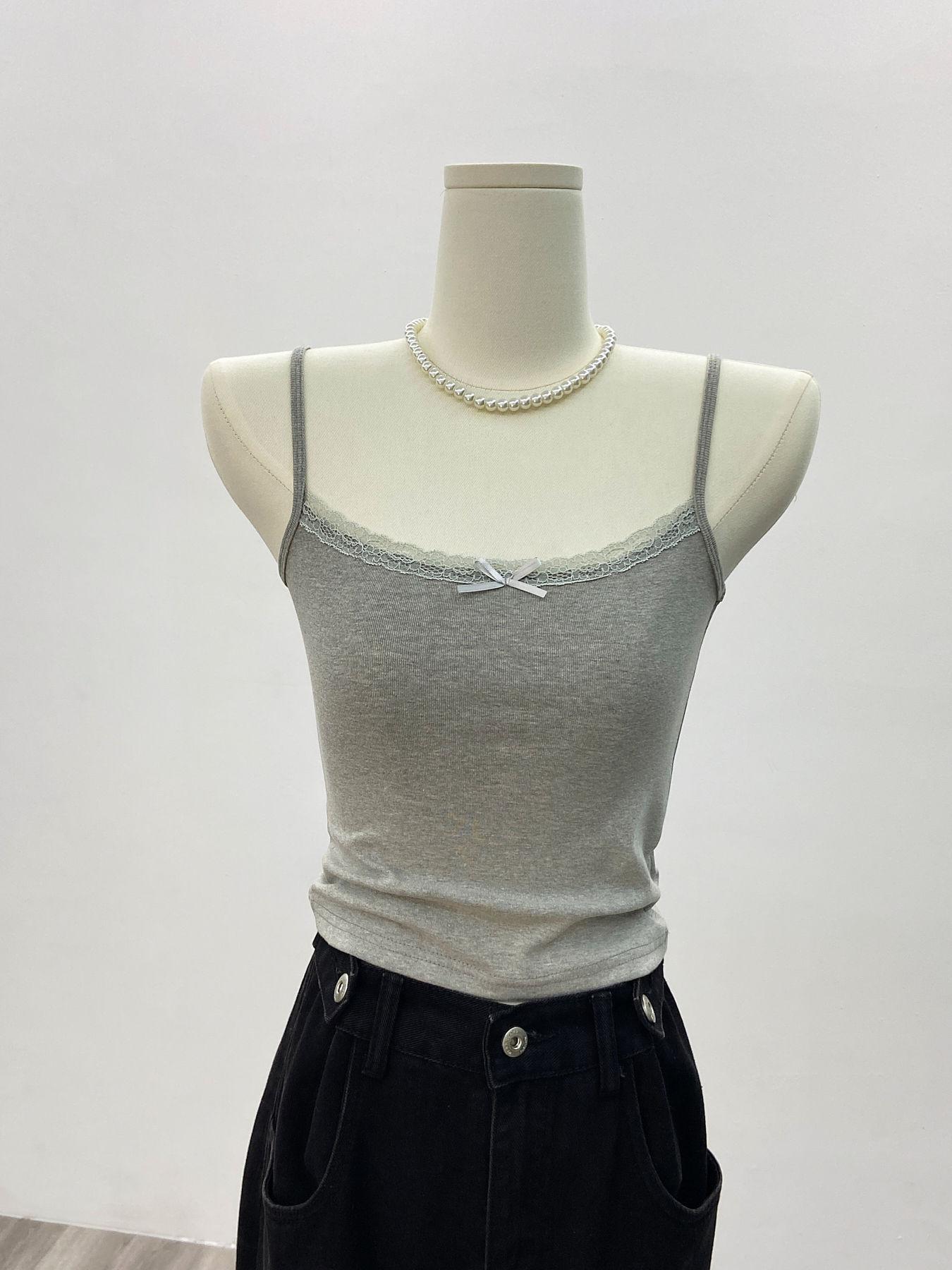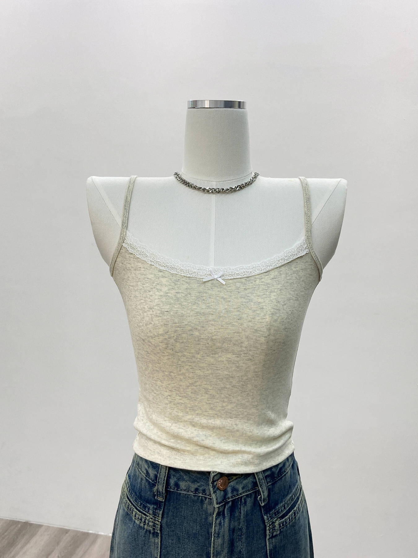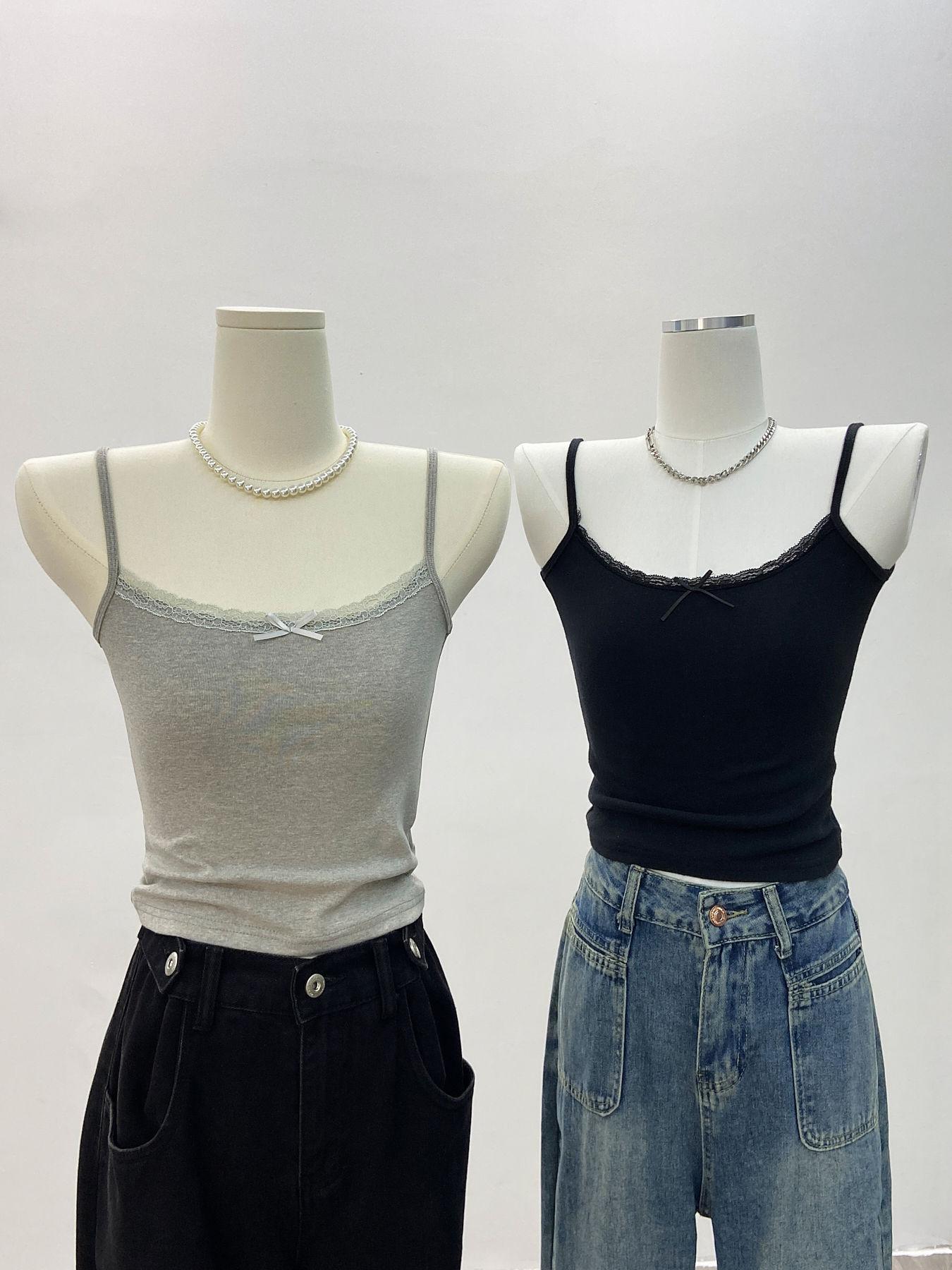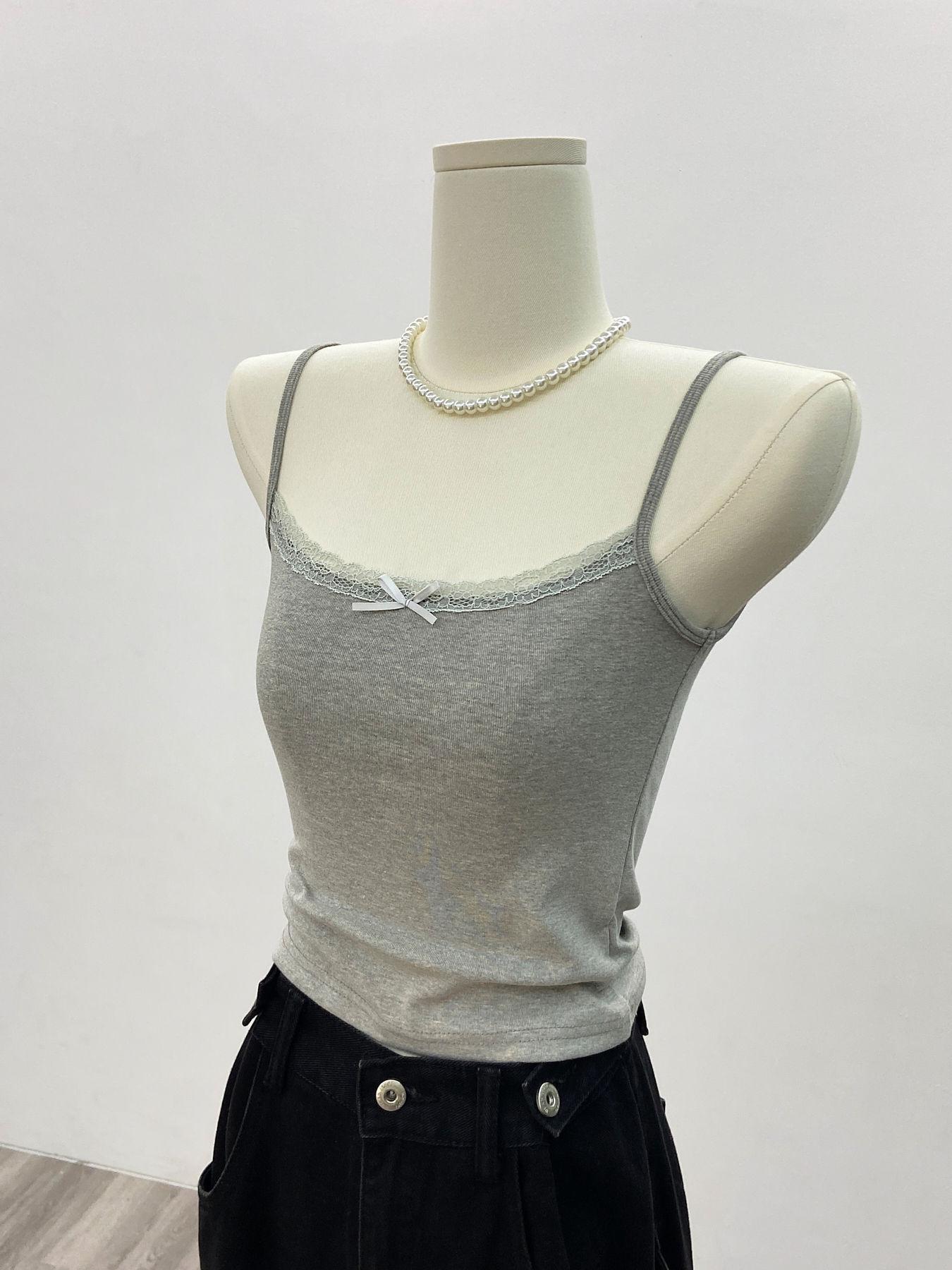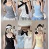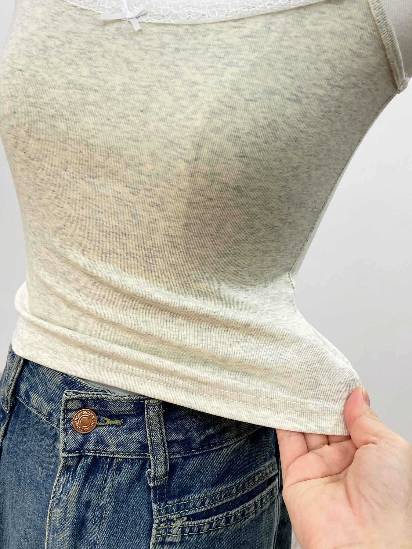 Top Corto de Tirantes sin Mangas con Encaje Bm para Mujer Verano Ropa Interior Chaleco a Prueba de Luz Puro Deseo Viento Ropa Exterior Espalda Hermosa