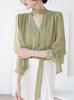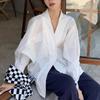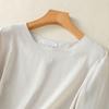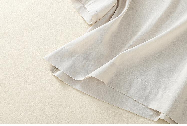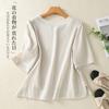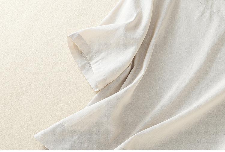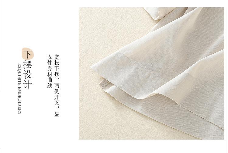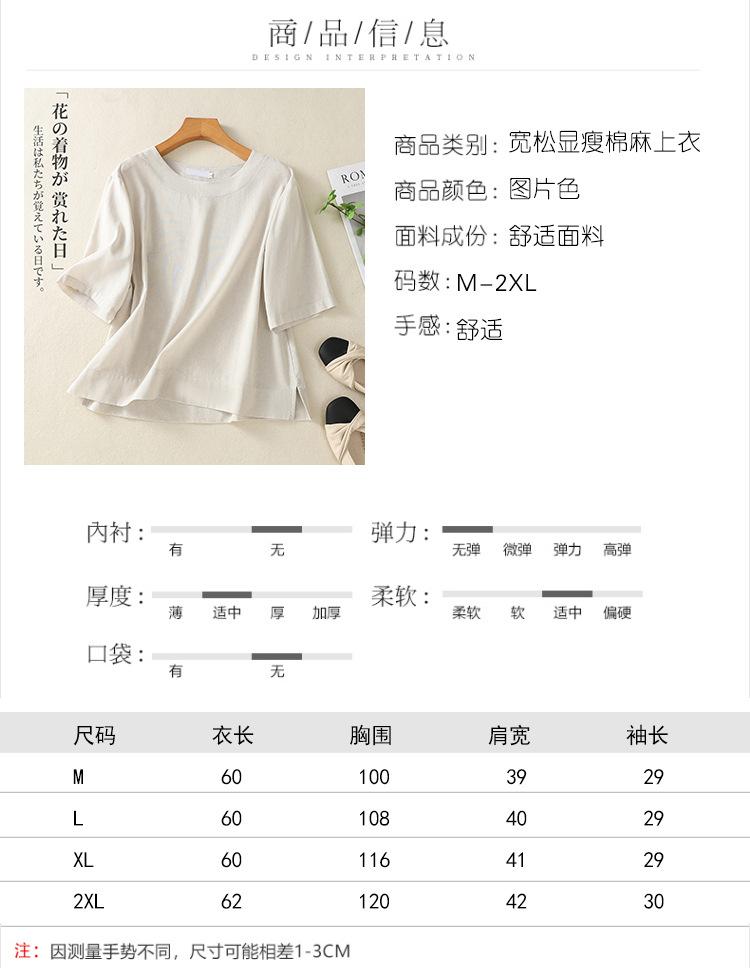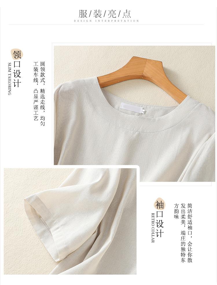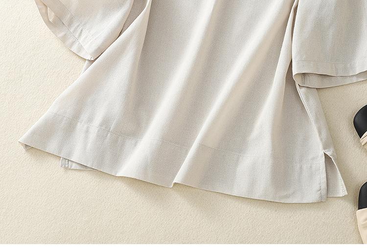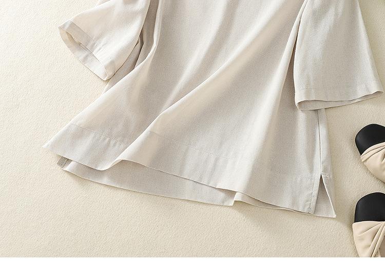 Top de Lino Simple Artístico de Cuello Redondo en Stock para Mujer con Manga Media, Suelto y Elegante, Camiseta Retro de Moda