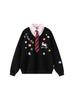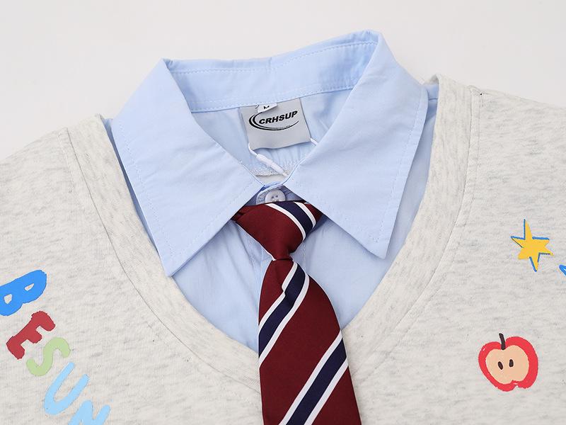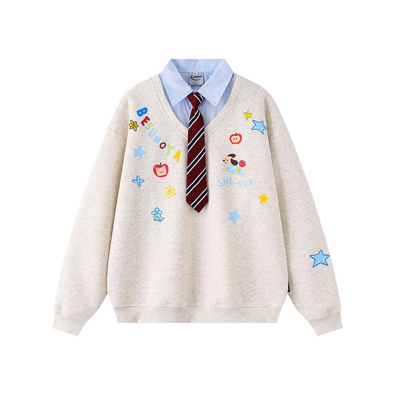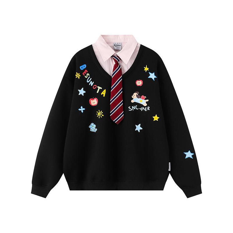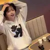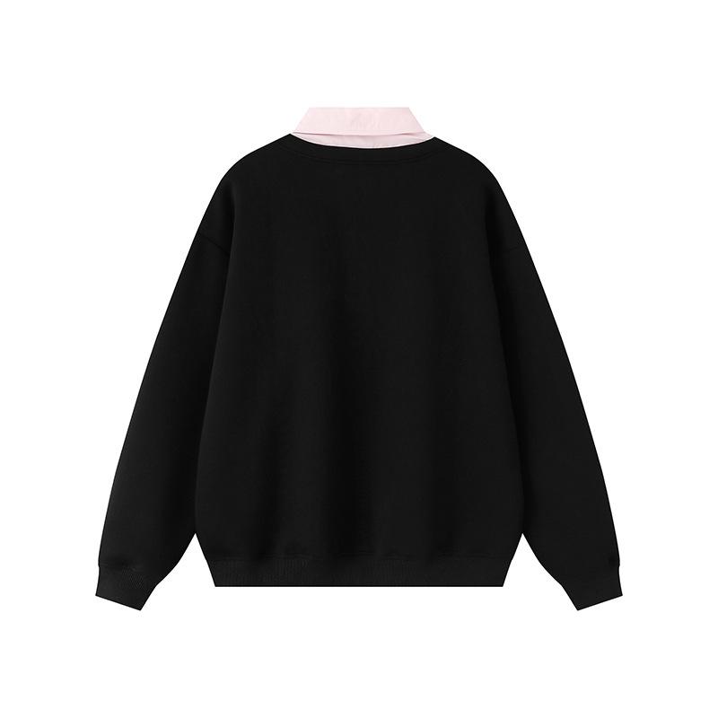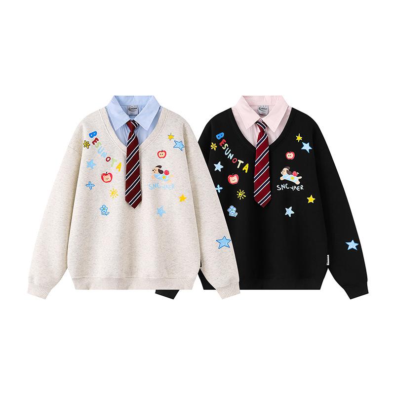 Sudadera de Dibujos Animados de Cachorro Falso de Dos Piezas con Cuello Polo para Mujer Otoño 2025 Nuevo Estilo Universitario Pareja Top Holgado