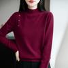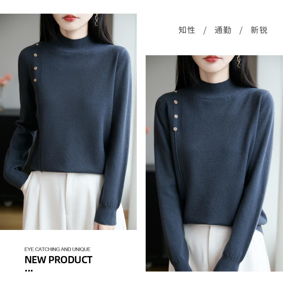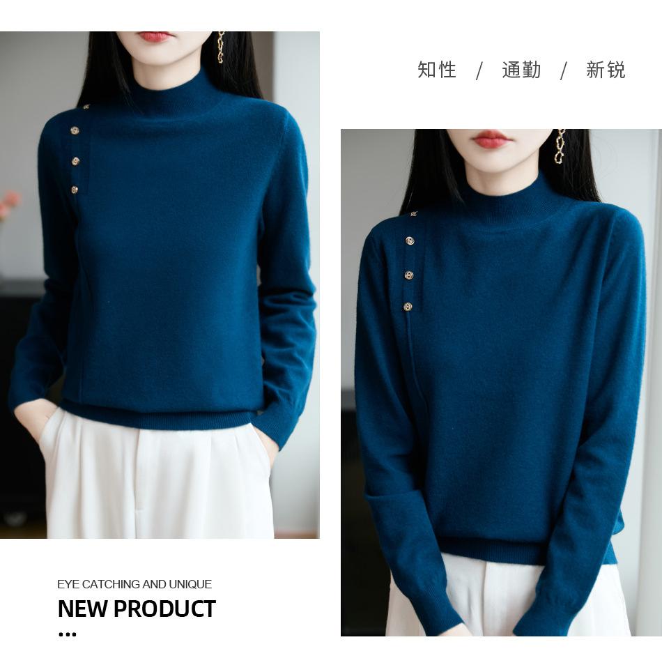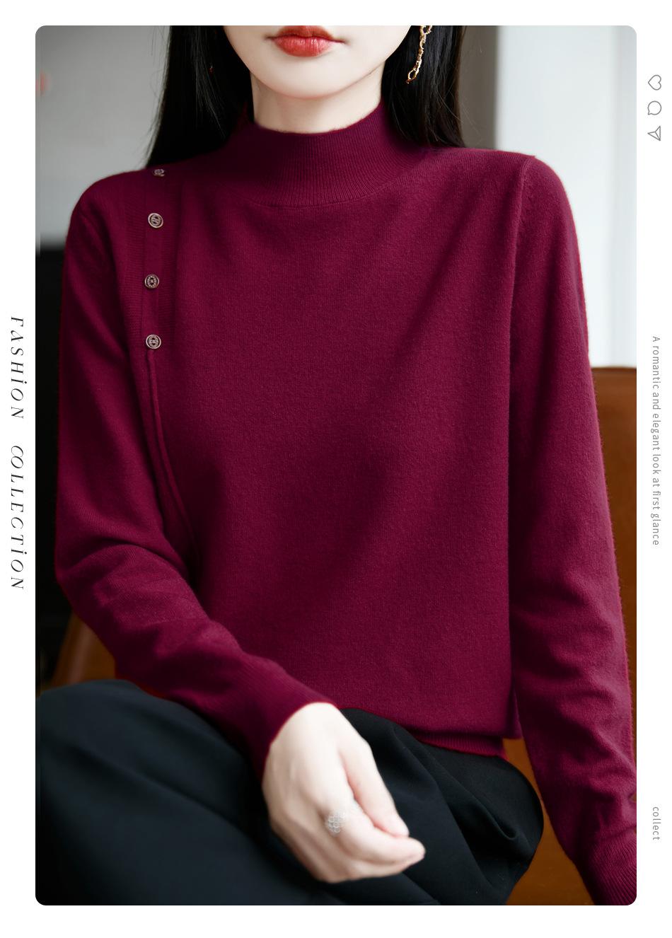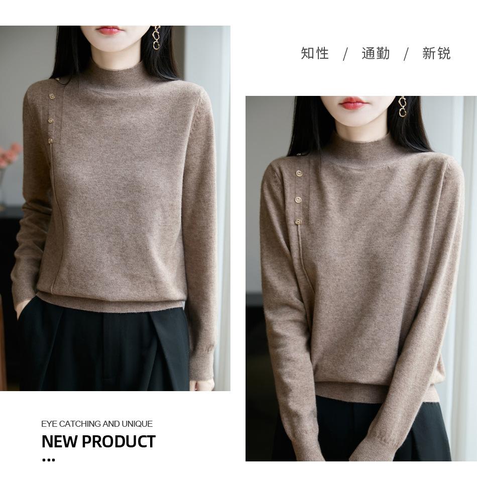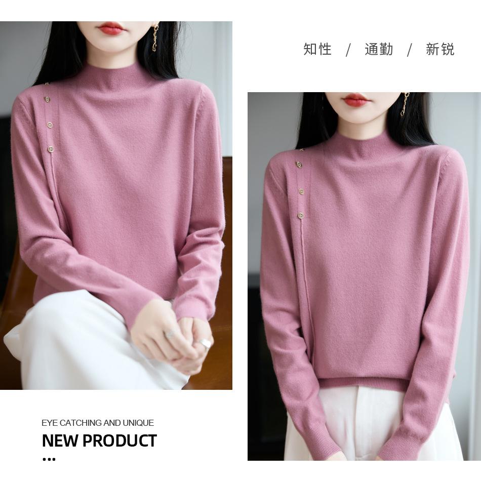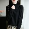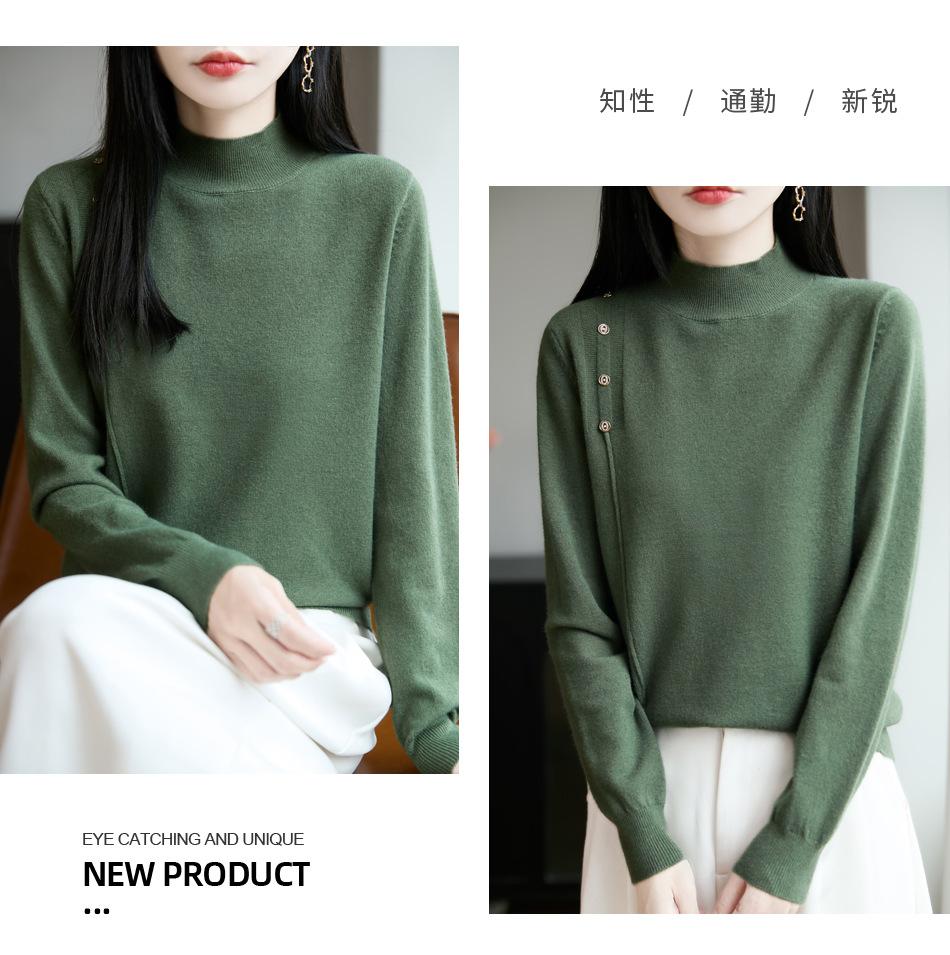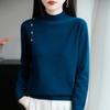 Otoño/Invierno 2025 Nuevo Andy Fleece Cuello Medio Alto Tejido Manga Larga para Mujer Botón Lateral Color Sólido Capa Base Top