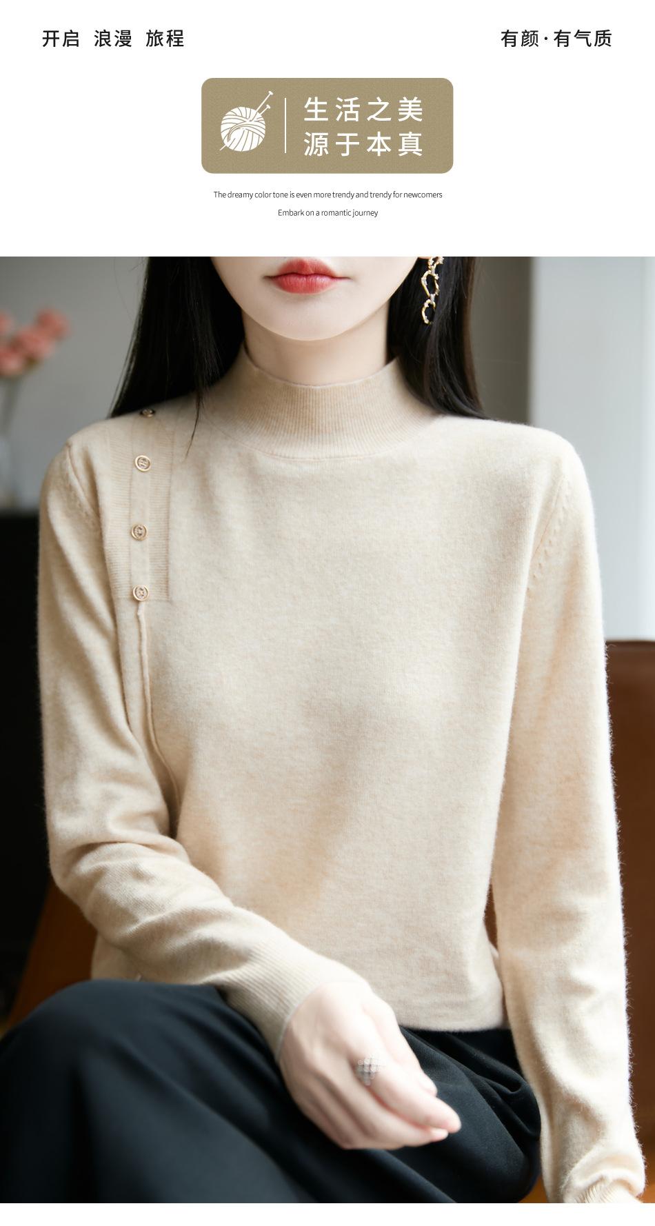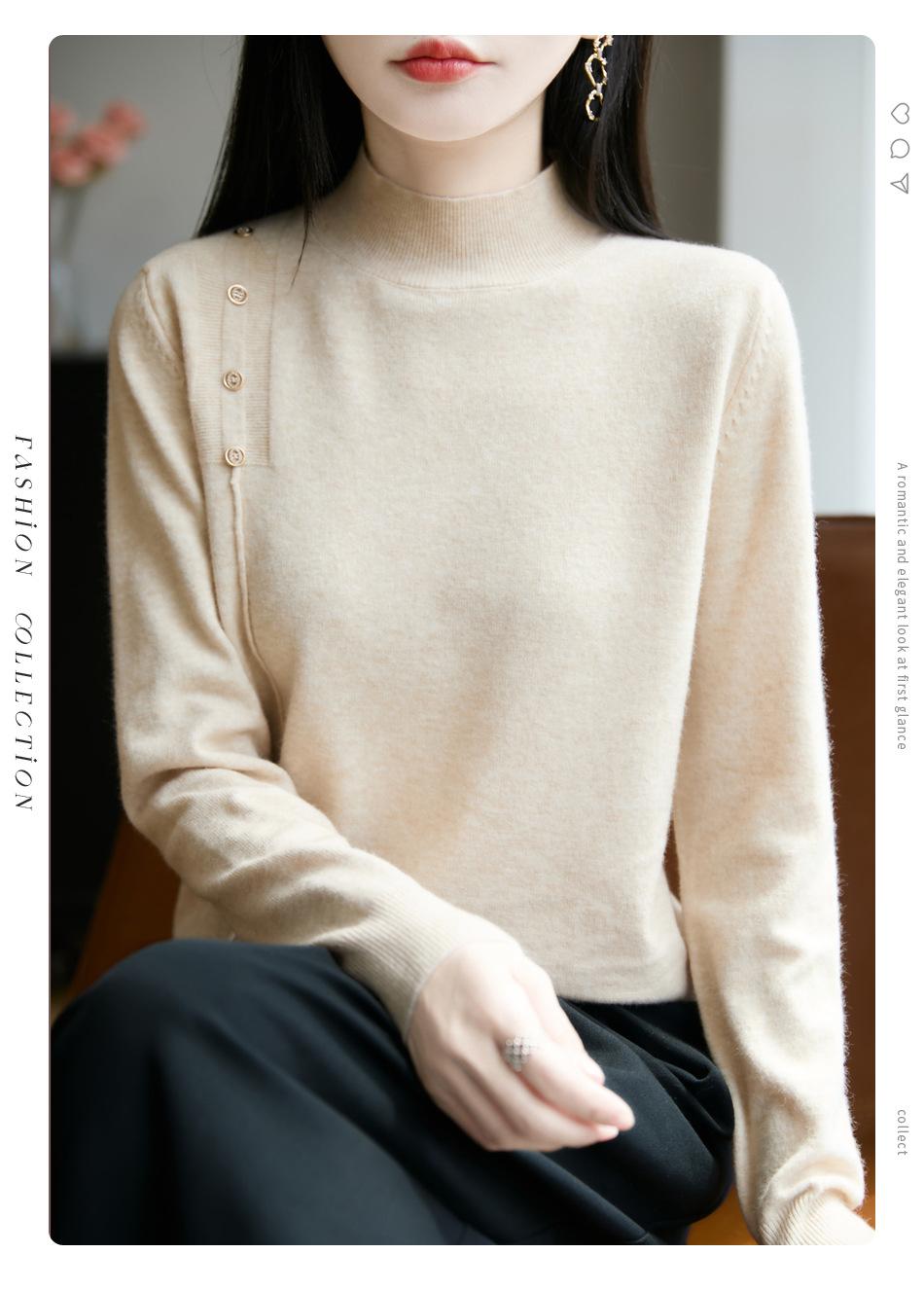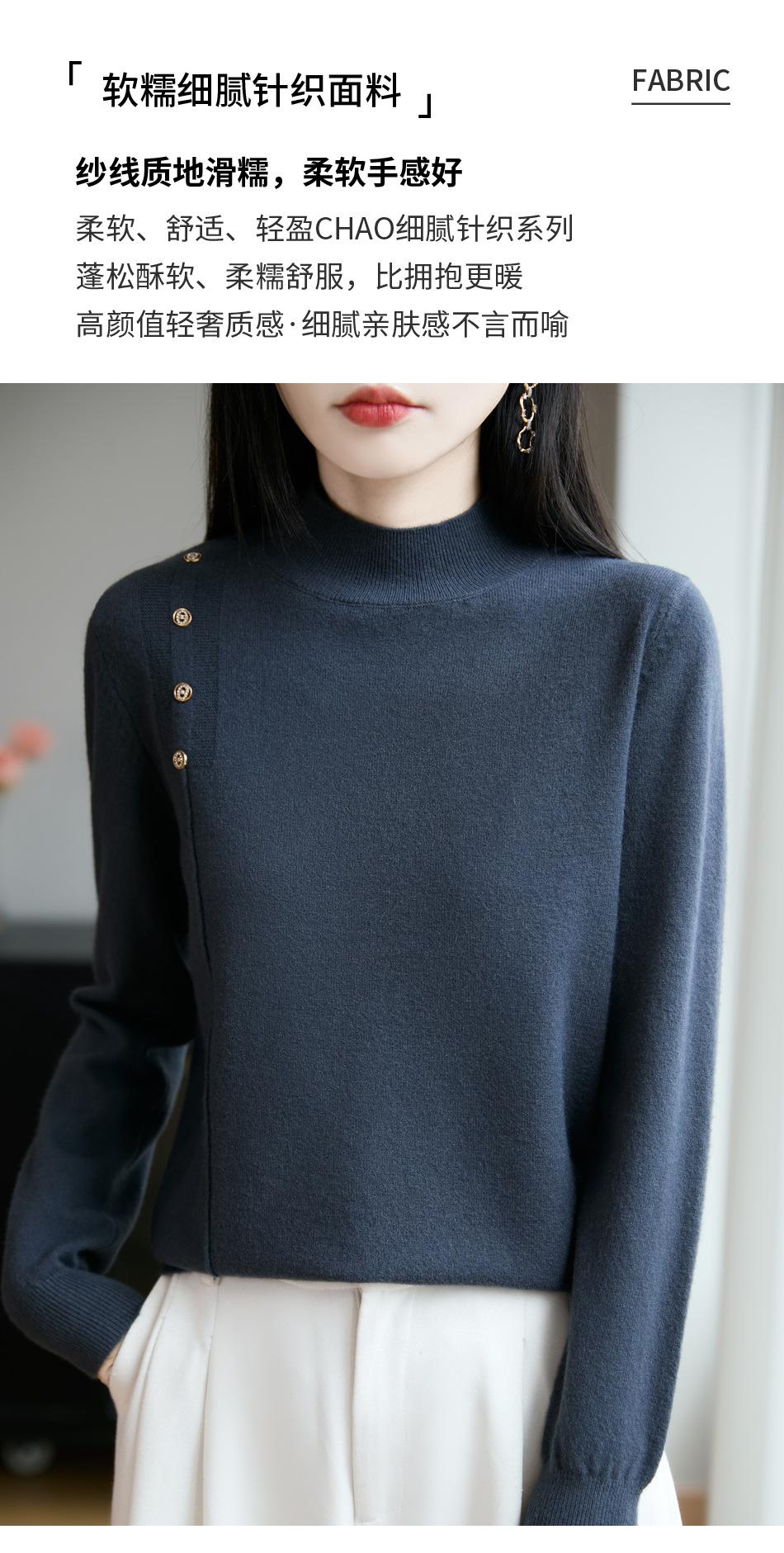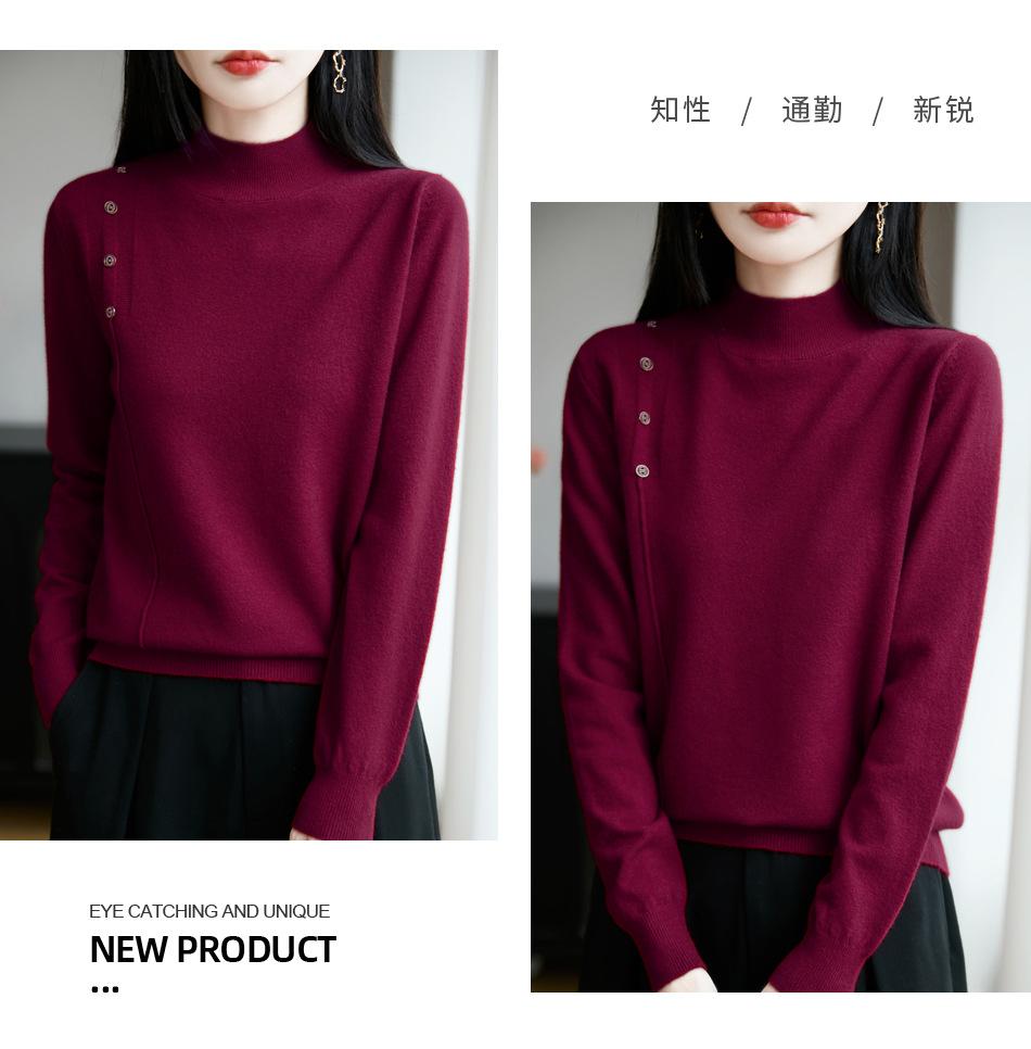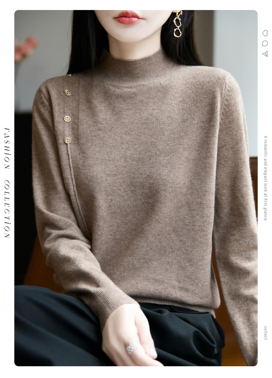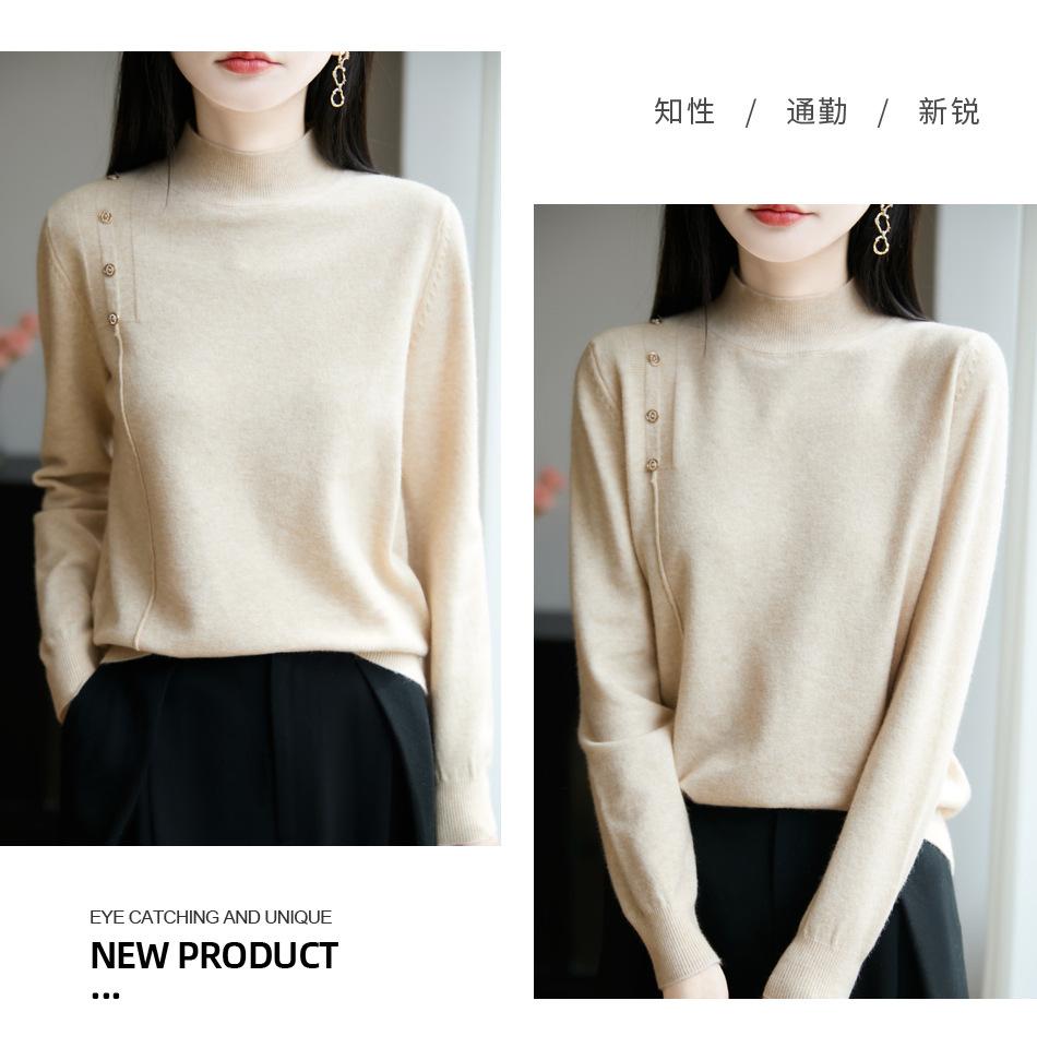 Otoño/Invierno 2025 Nuevo Andy Fleece Cuello Medio Alto Tejido Manga Larga para Mujer Botón Lateral Color Sólido Capa Base Top