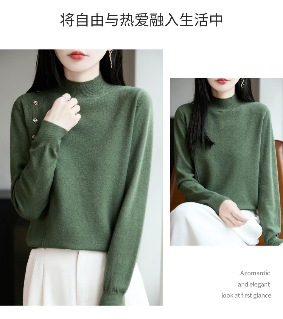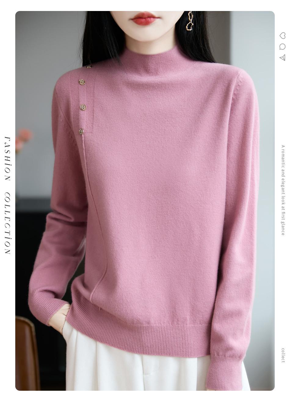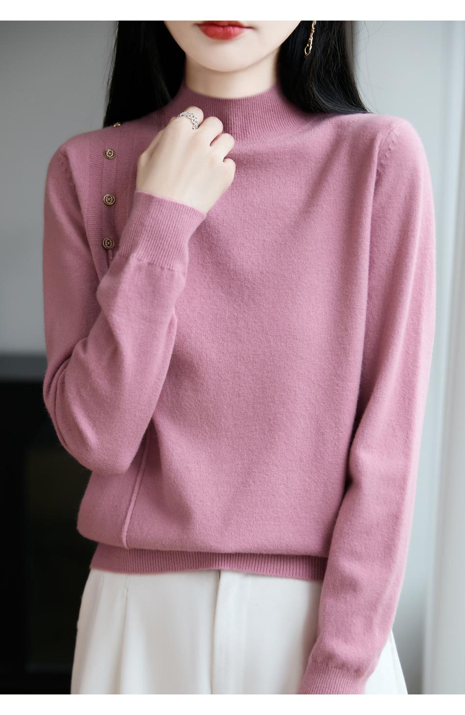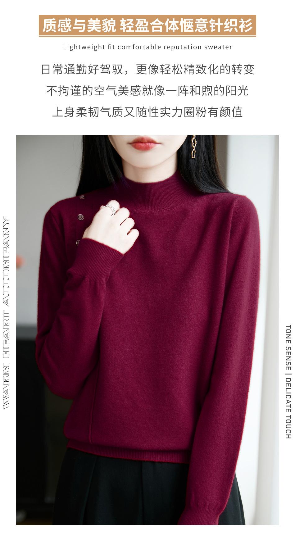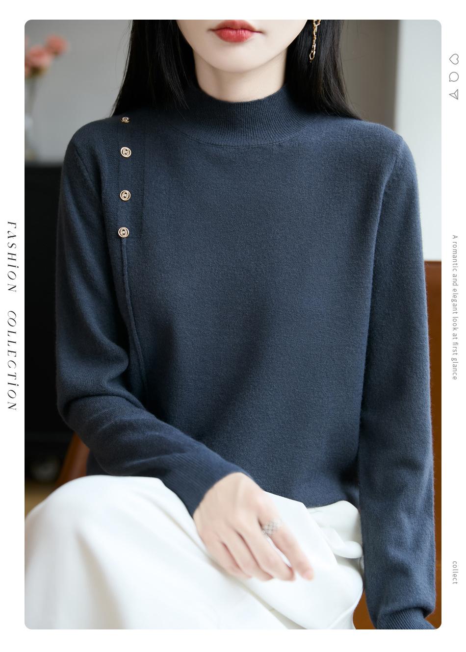 Otoño/Invierno 2025 Nuevo Andy Fleece Cuello Medio Alto Tejido Manga Larga para Mujer Botón Lateral Color Sólido Capa Base Top