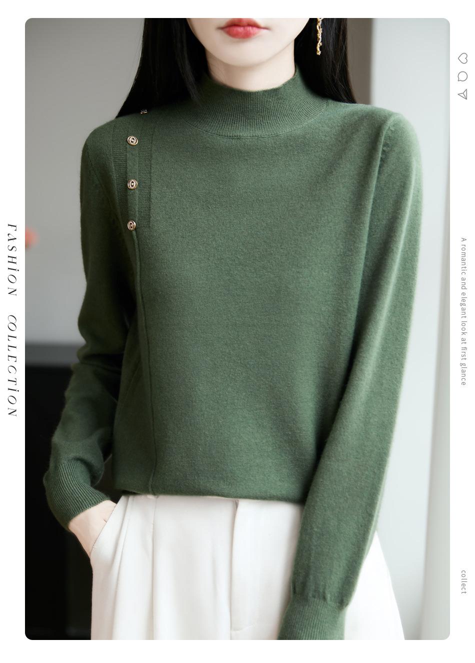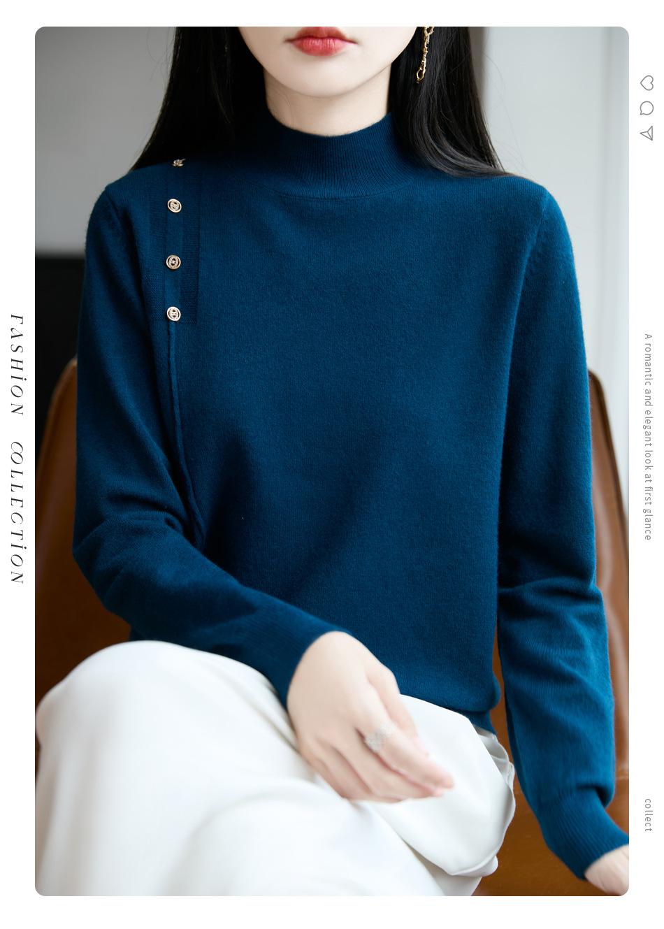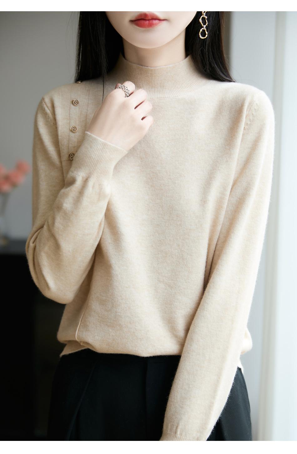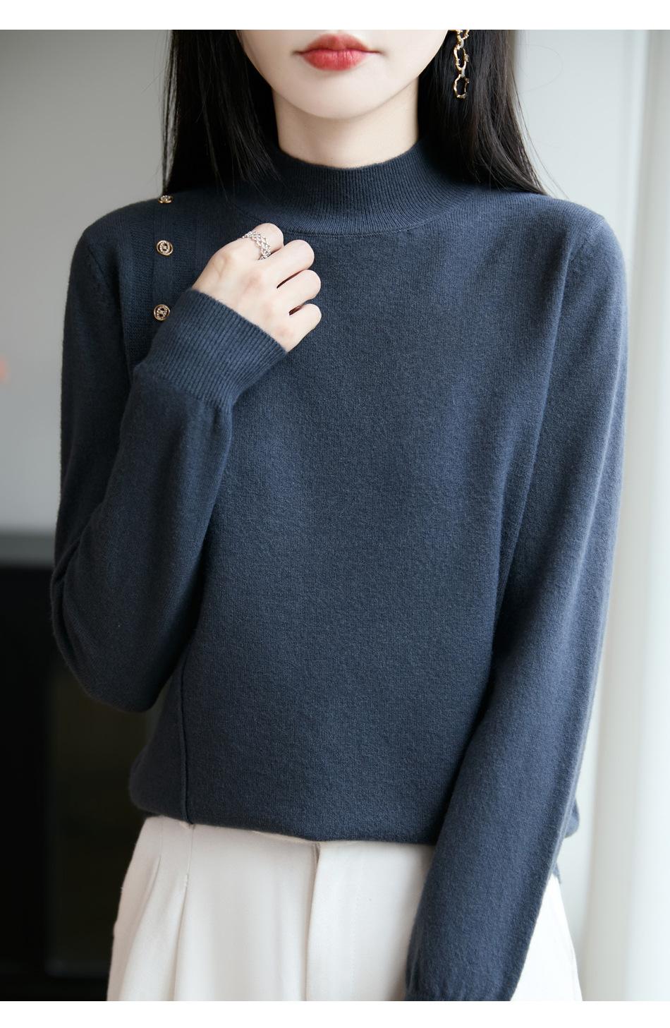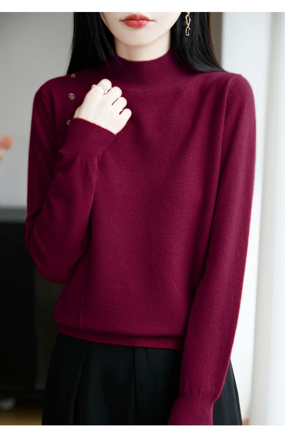 Otoño/Invierno 2025 Nuevo Andy Fleece Cuello Medio Alto Tejido Manga Larga para Mujer Botón Lateral Color Sólido Capa Base Top