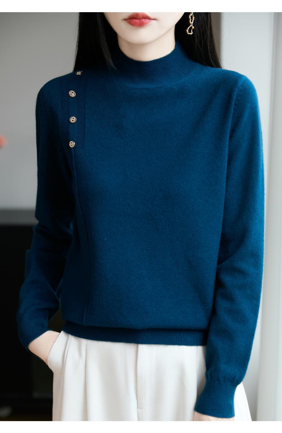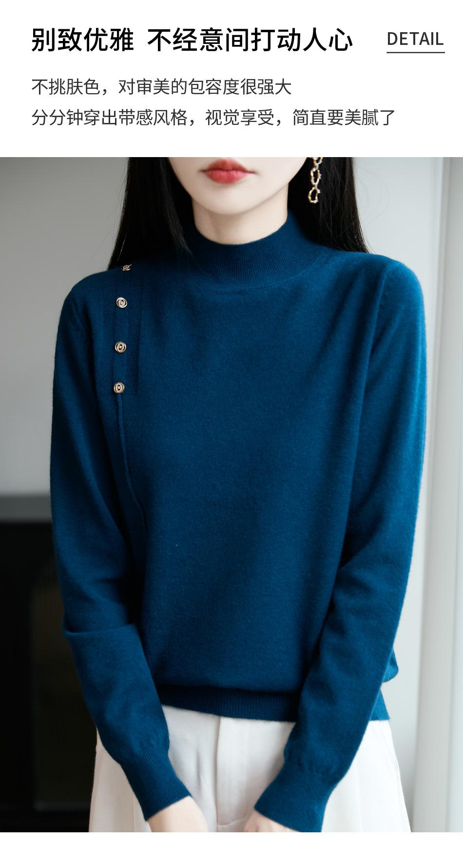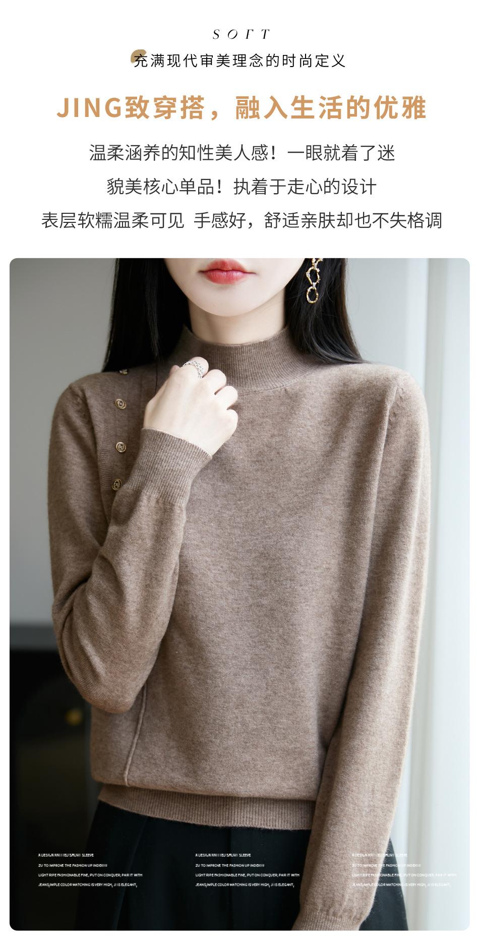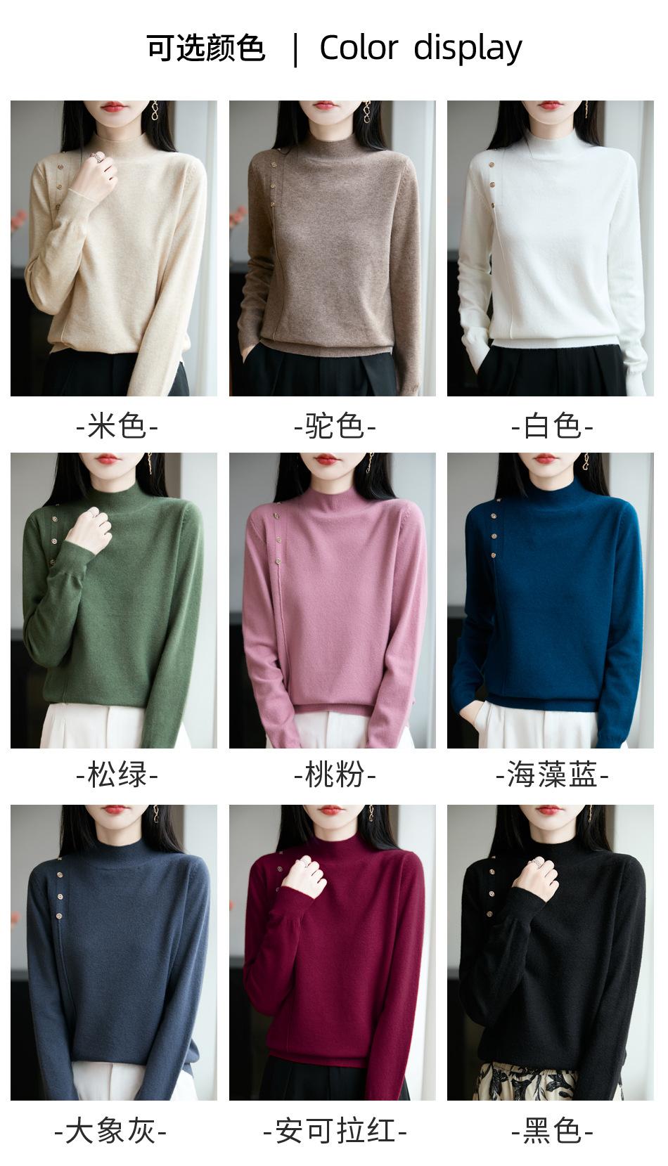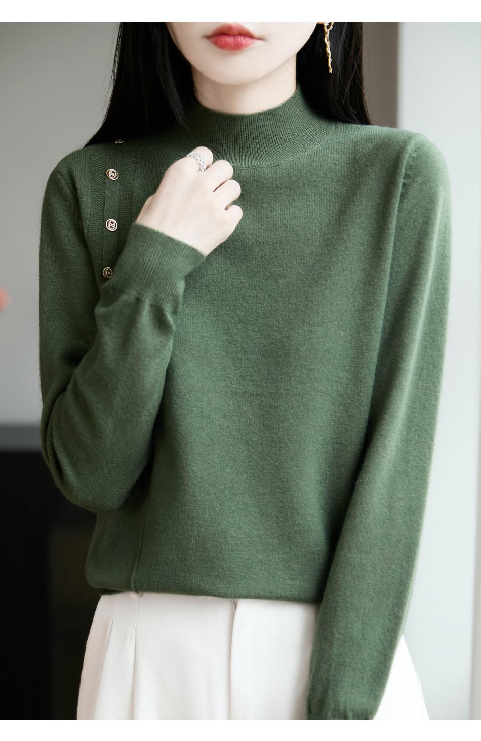 Otoño/Invierno 2025 Nuevo Andy Fleece Cuello Medio Alto Tejido Manga Larga para Mujer Botón Lateral Color Sólido Capa Base Top