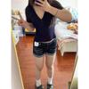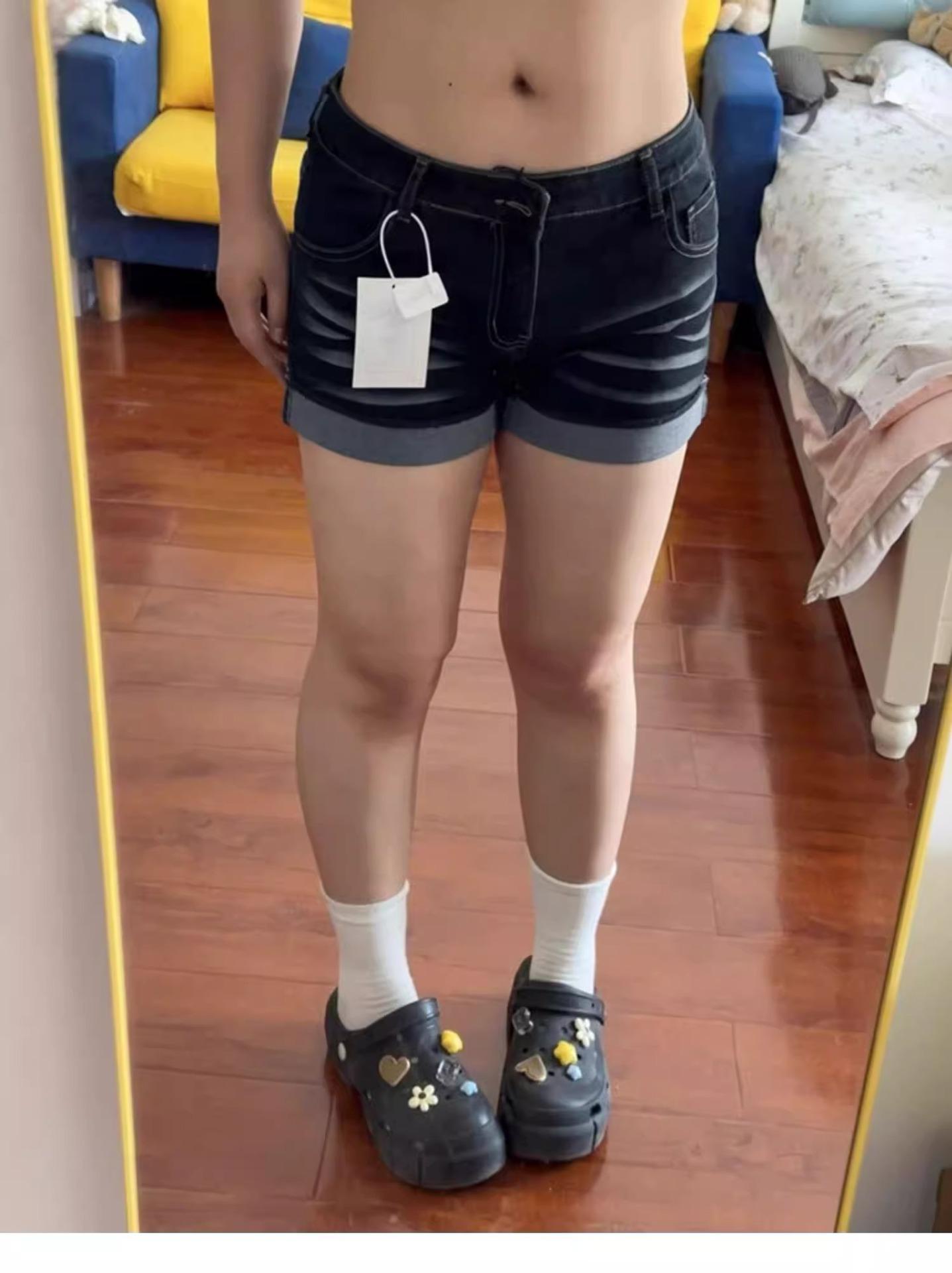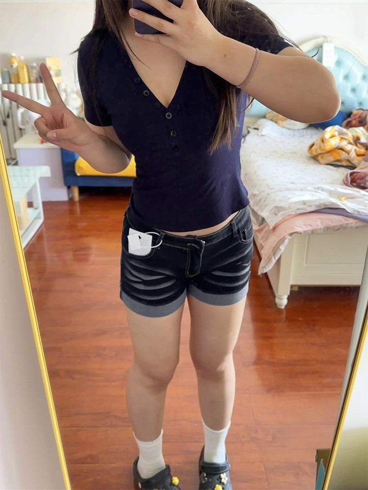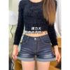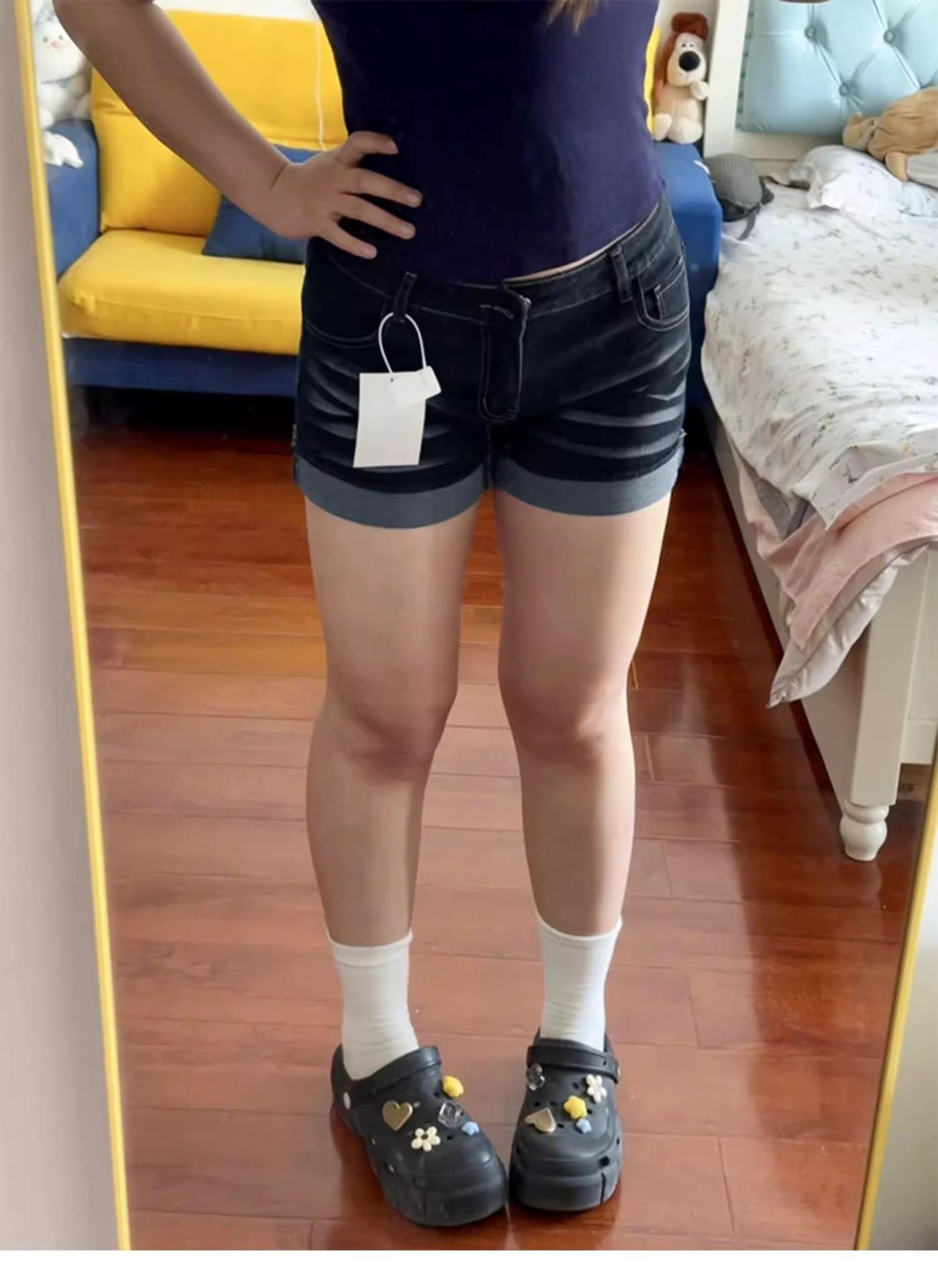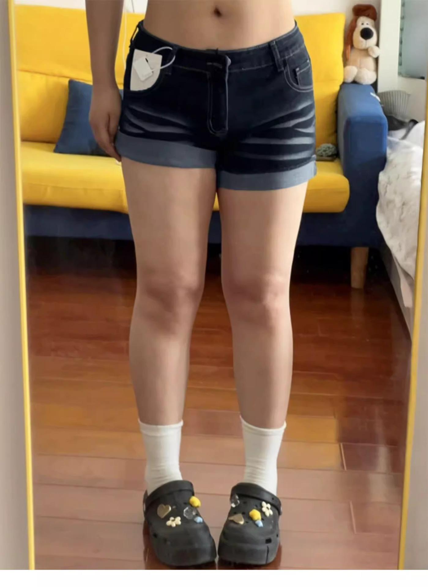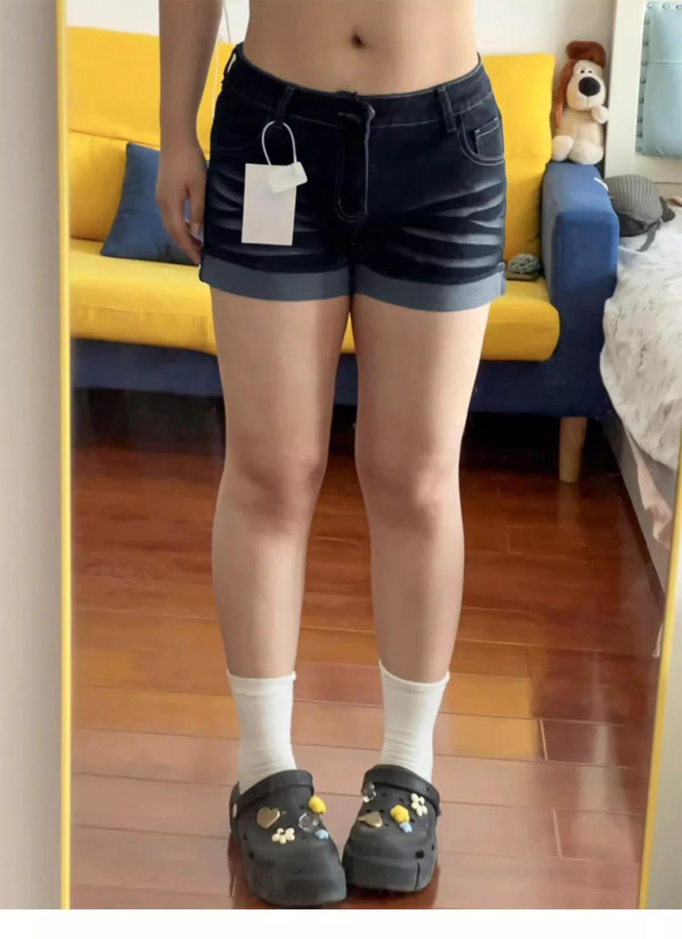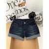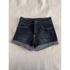 Talla Grande Retro Americano Shorts de Mezclilla Mujer Verano Delgados Gorditos MM Cintura Alta Adelgazantes Azul Oscuro Elásticos Pierna Recta Pantalones Cortos