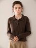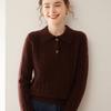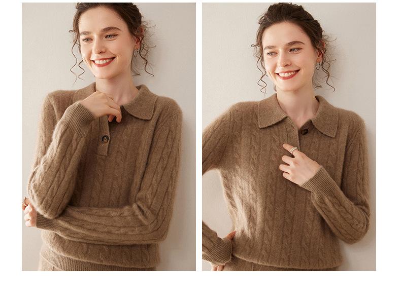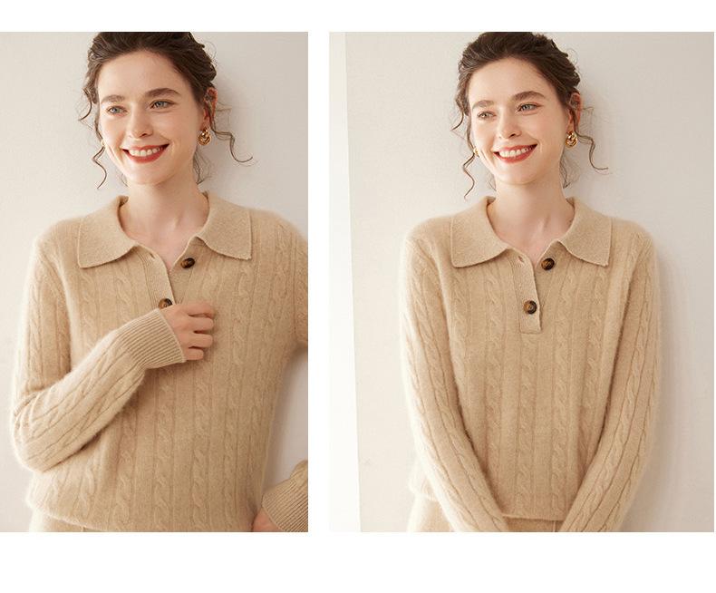 2025 Otoño/Invierno Nuevo Estilo Cuello POLO Tejido de Cable Top Grueso Mujer Tejido de Cachemira Capa Base Manga Larga Suéter Holgado