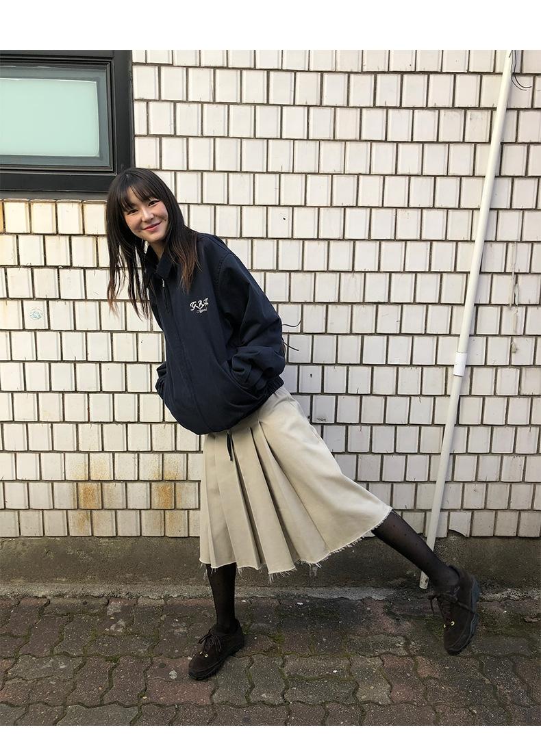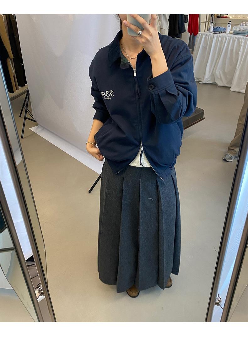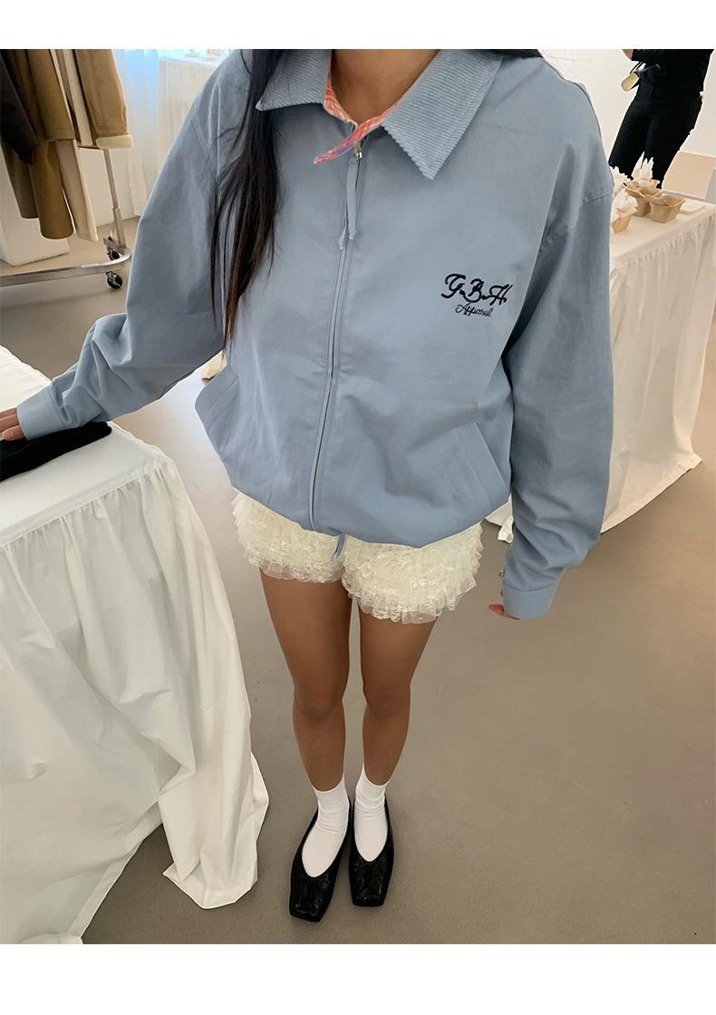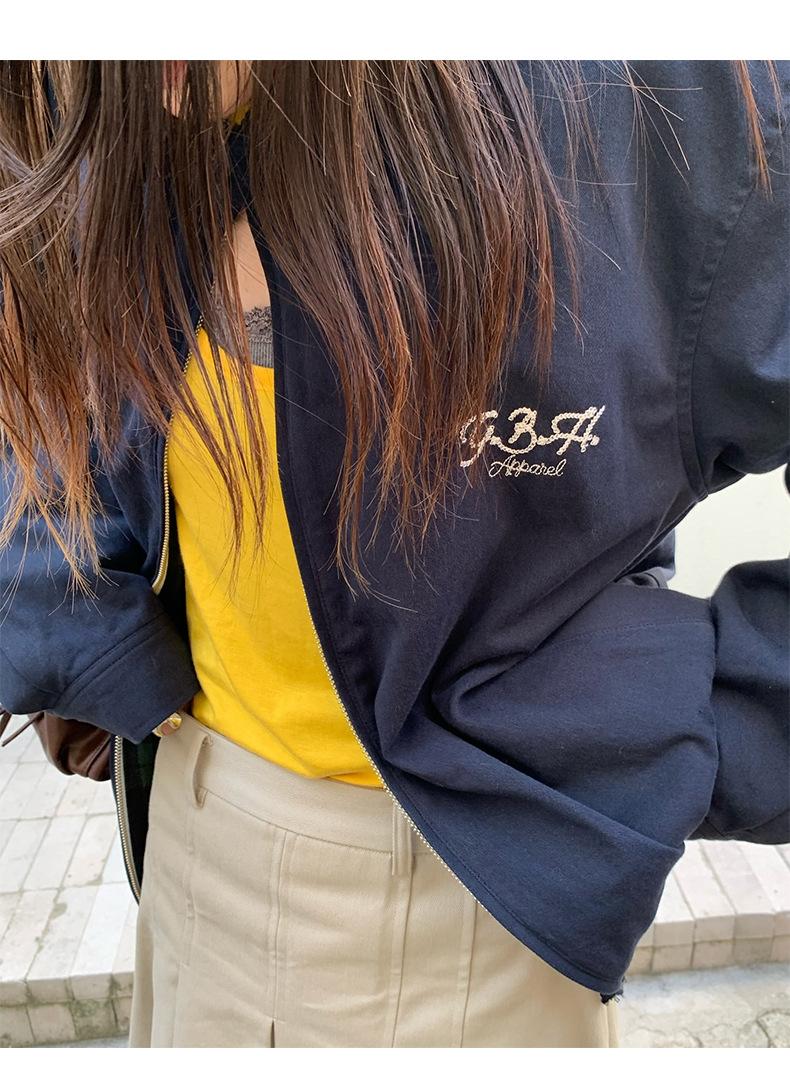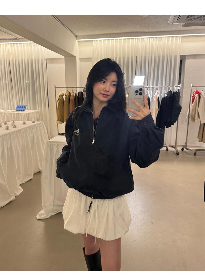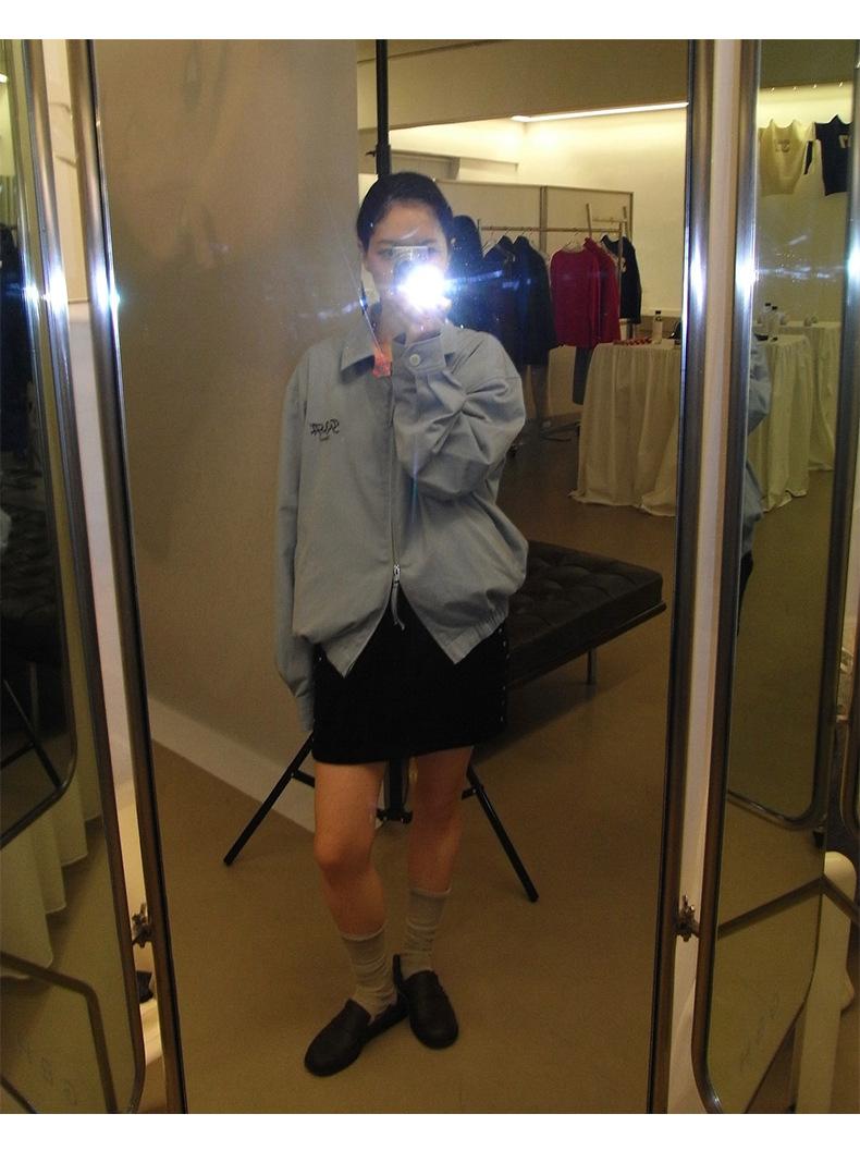 Corea Dongdaemun 2025 Otoño Nuevo Casual Solapa Holgado Adelgazante Bordado de Letras Chaqueta Abrigo con Cremallera para Mujer