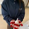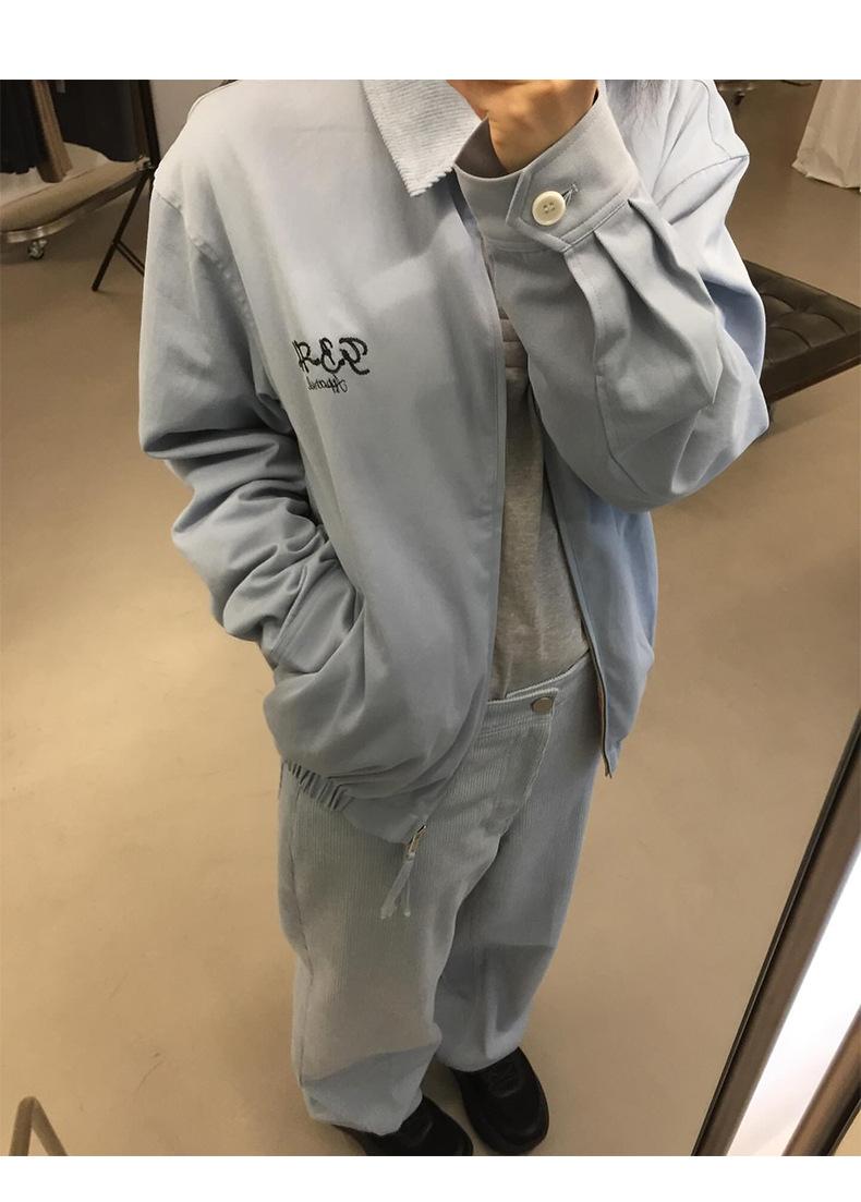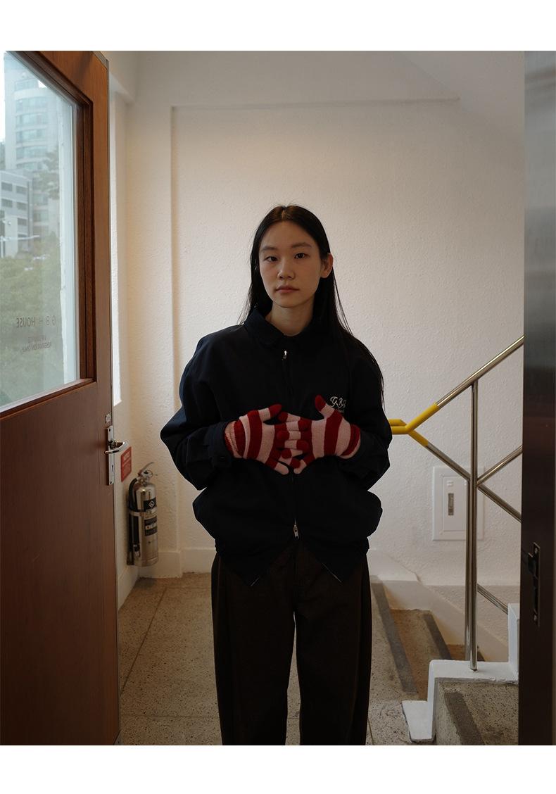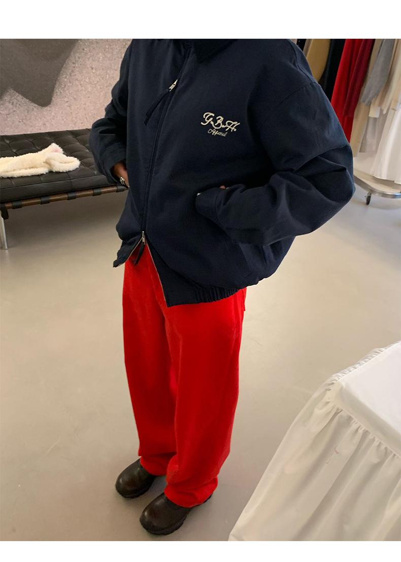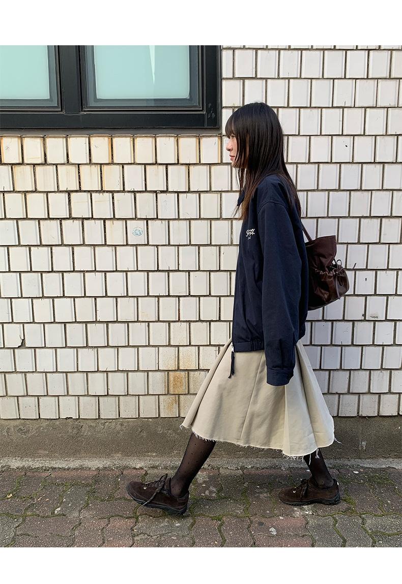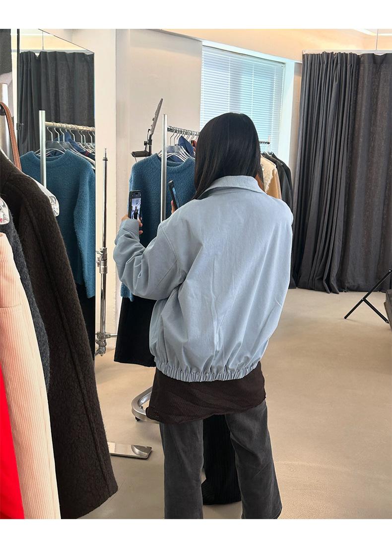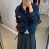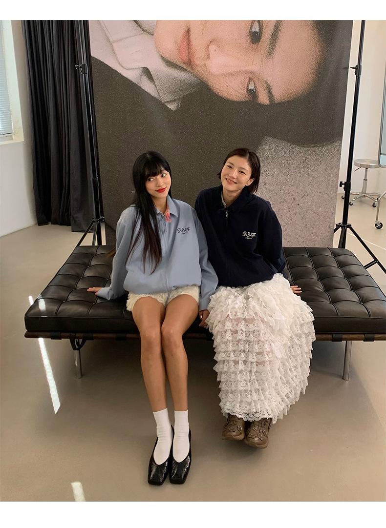 Corea Dongdaemun 2025 Otoño Nuevo Casual Solapa Holgado Adelgazante Bordado de Letras Chaqueta Abrigo con Cremallera para Mujer