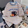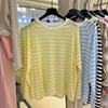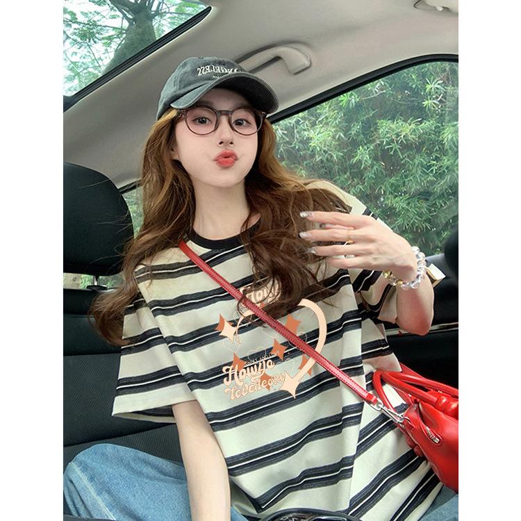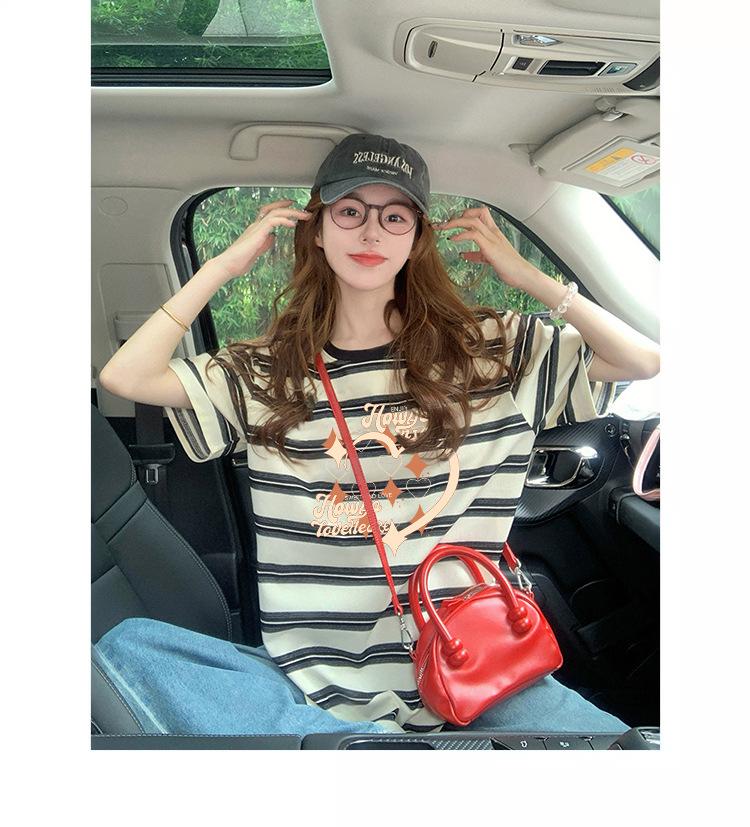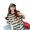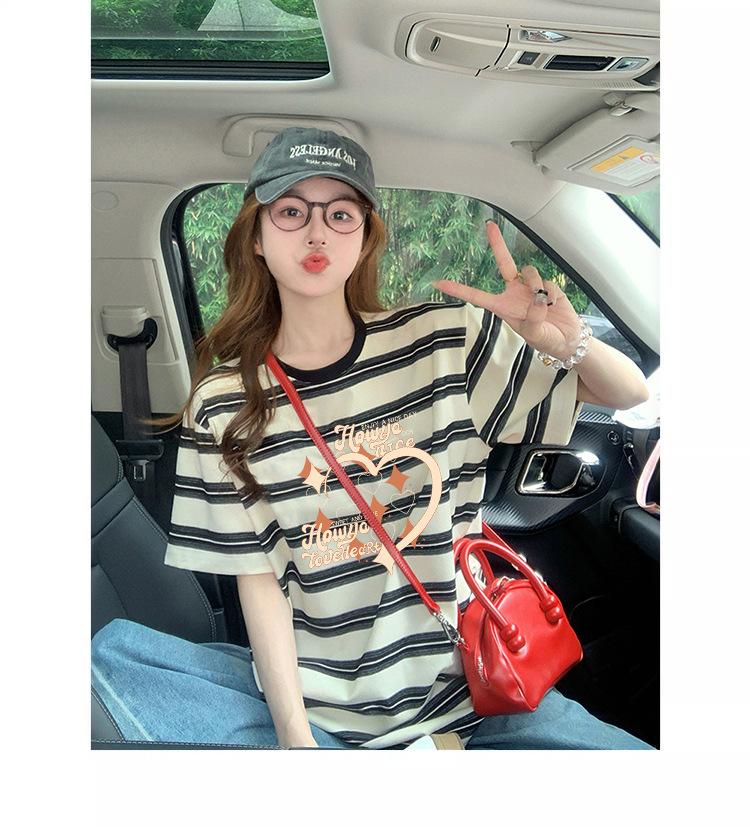 Playera Única de Corazón Graffiti de Media Manga a Rayas para Mujer, Estilo Holgazán con Diseño de Color Contrastante, Top Versátil Suelto y a la Moda