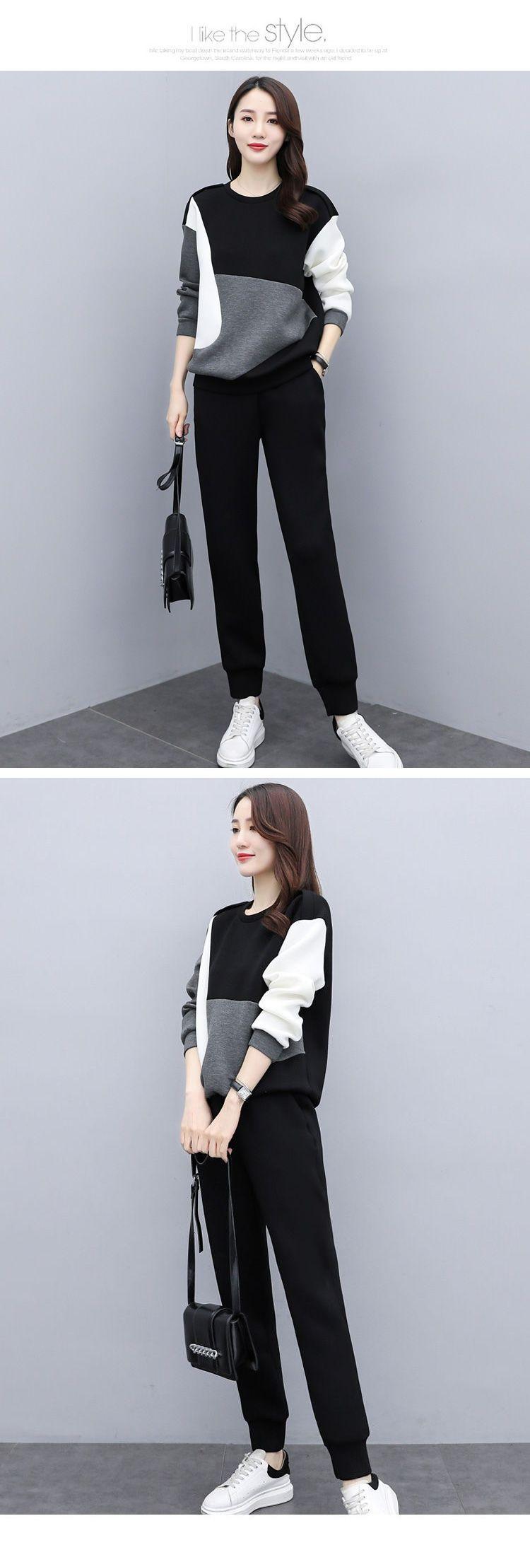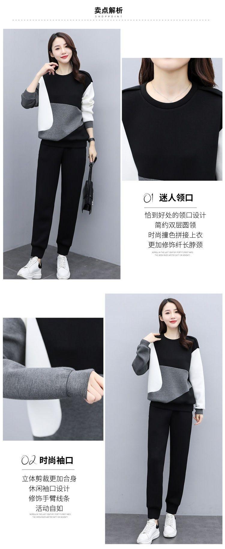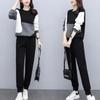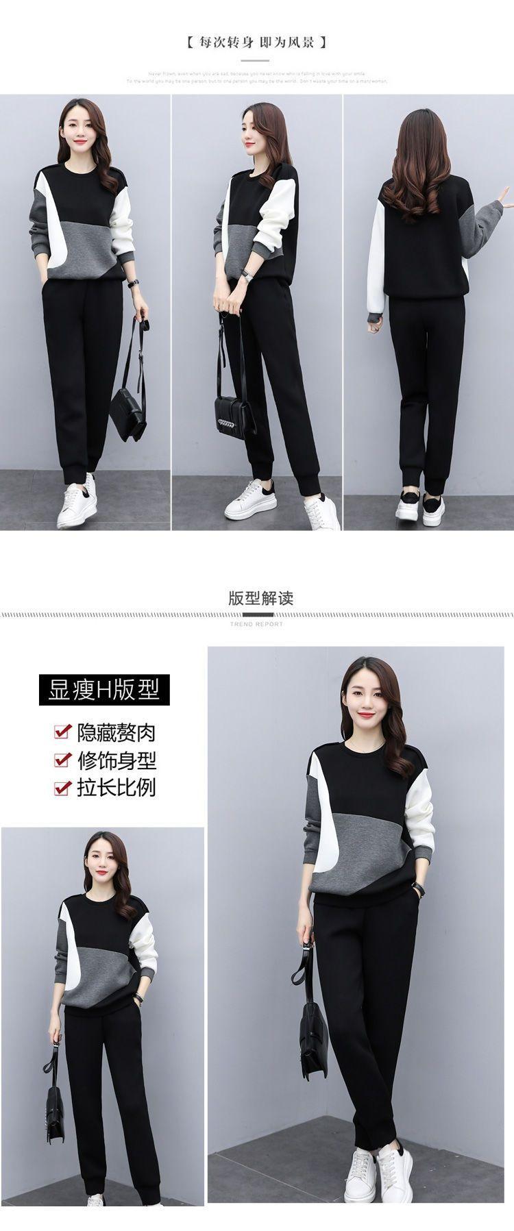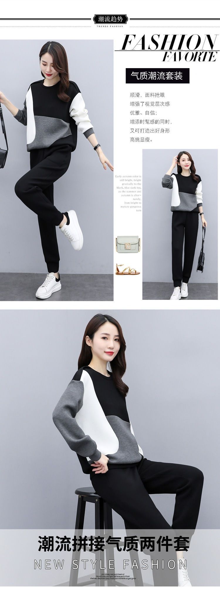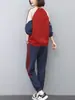 Conjunto de Ropa Deportiva de Moda Patchwork Colorblock de Talla Grande para Mujer Ajustado Suelto Cuello Redondo Otoño/Invierno 2025 Conjunto de Dos Piezas Elegante Reductor de Edad