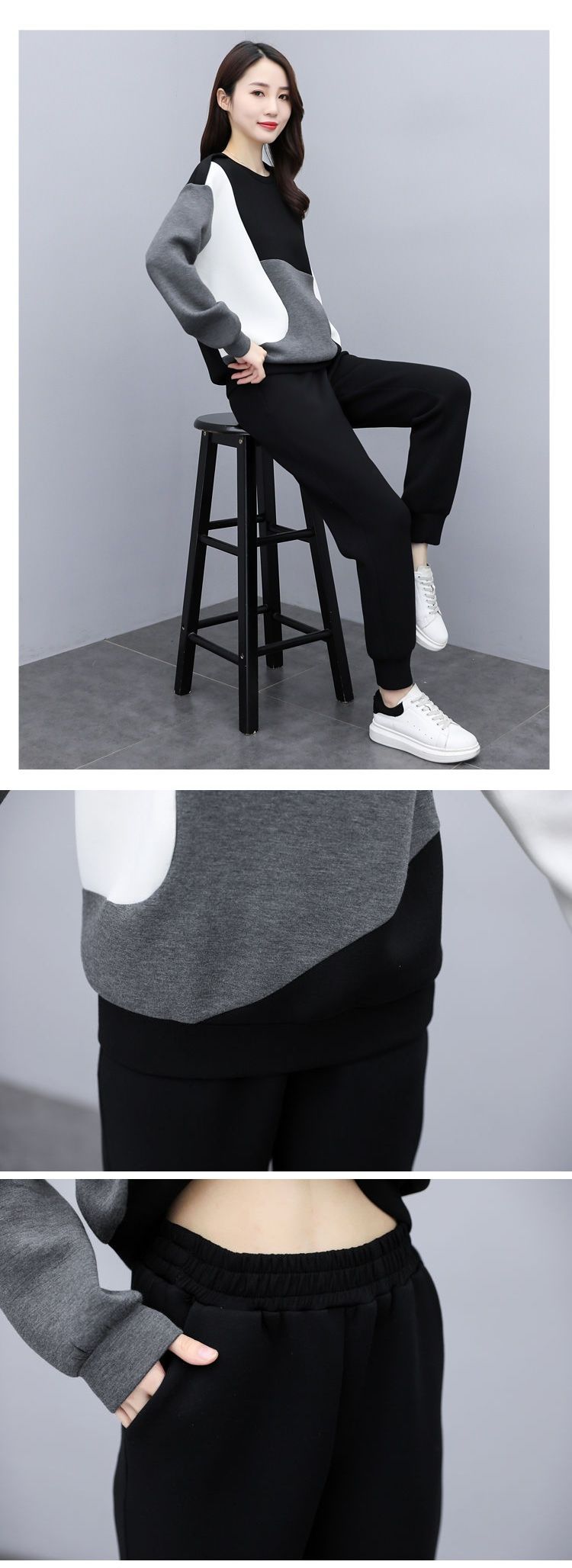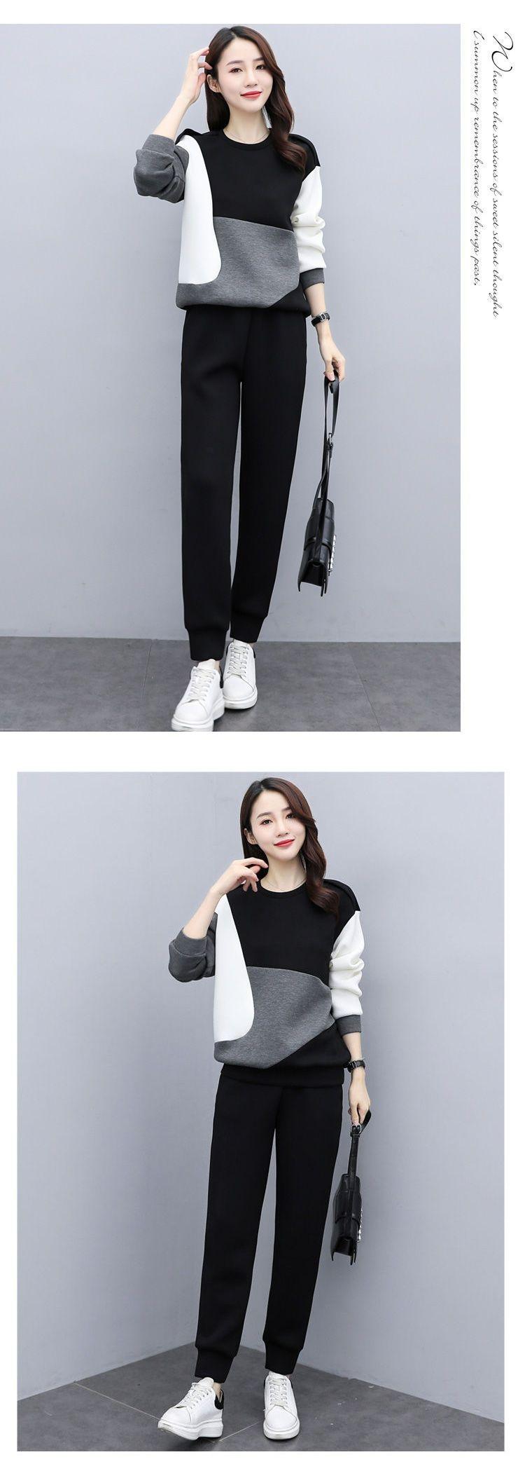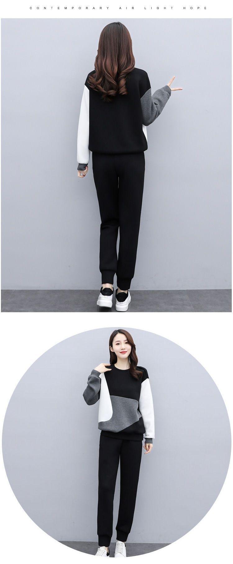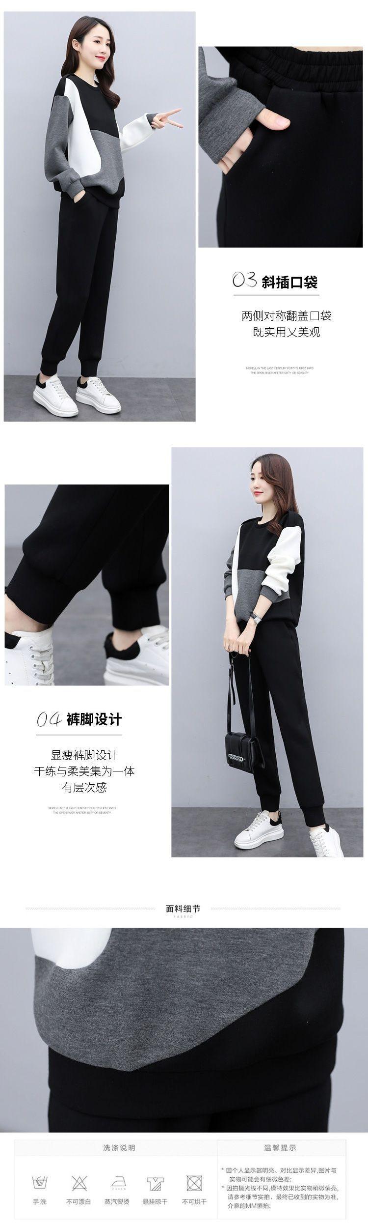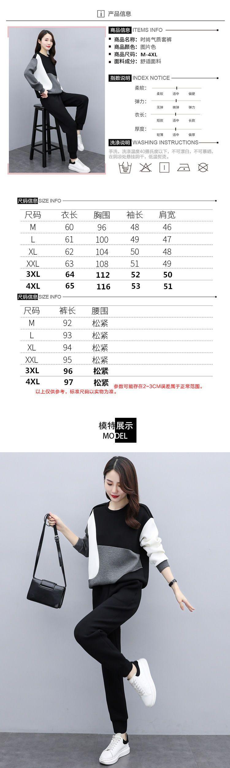 Conjunto de Ropa Deportiva de Moda Patchwork Colorblock de Talla Grande para Mujer Ajustado Suelto Cuello Redondo Otoño/Invierno 2025 Conjunto de Dos Piezas Elegante Reductor de Edad