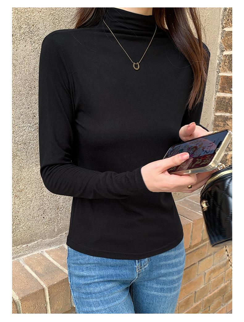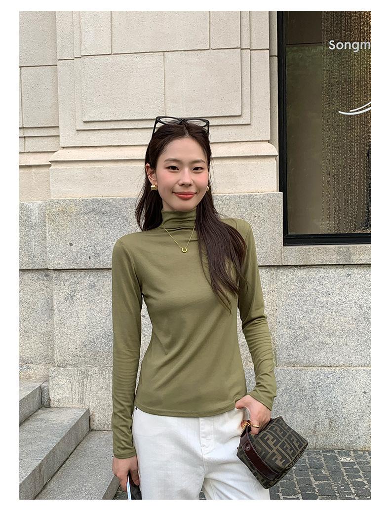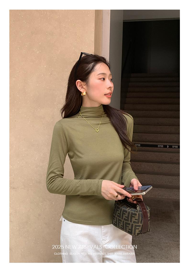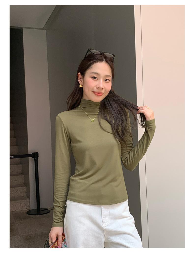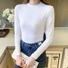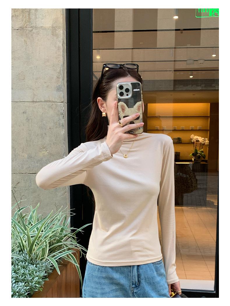 Camiseta básica para mujer con cuello alto de pelo medio, estilo primavera y otoño con camiseta larga, nueva 2025, corte ajustado, cuello mao pequeño, camiseta básica para mujer