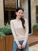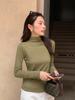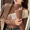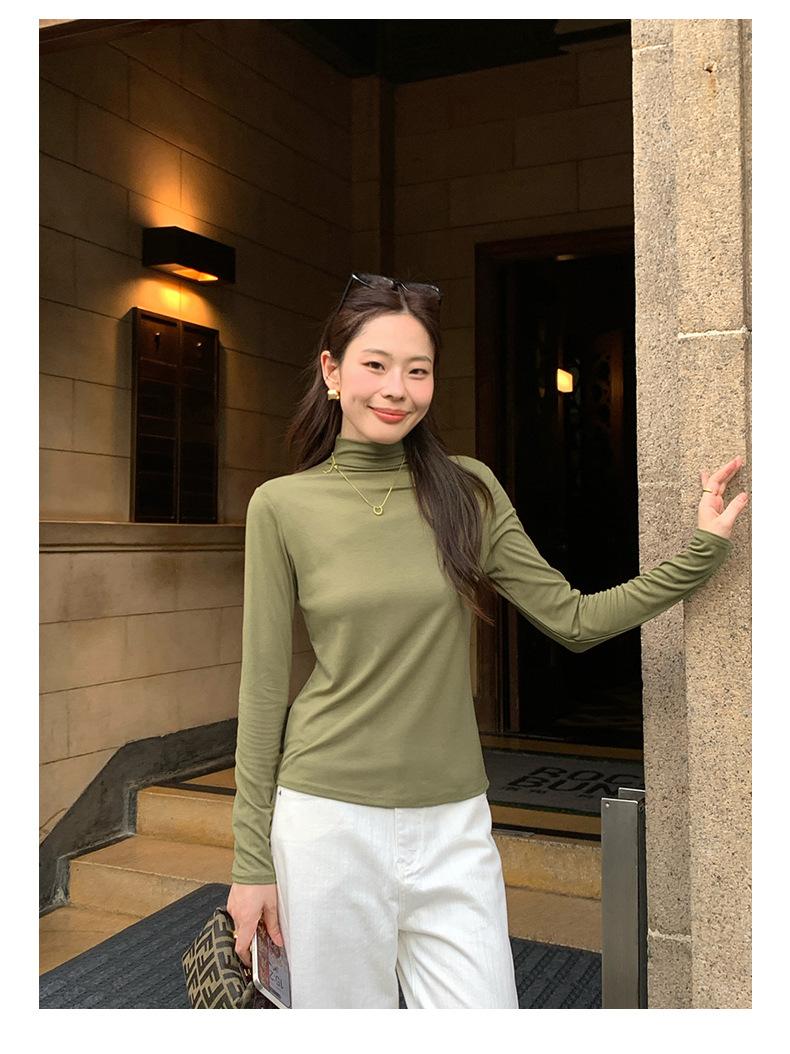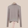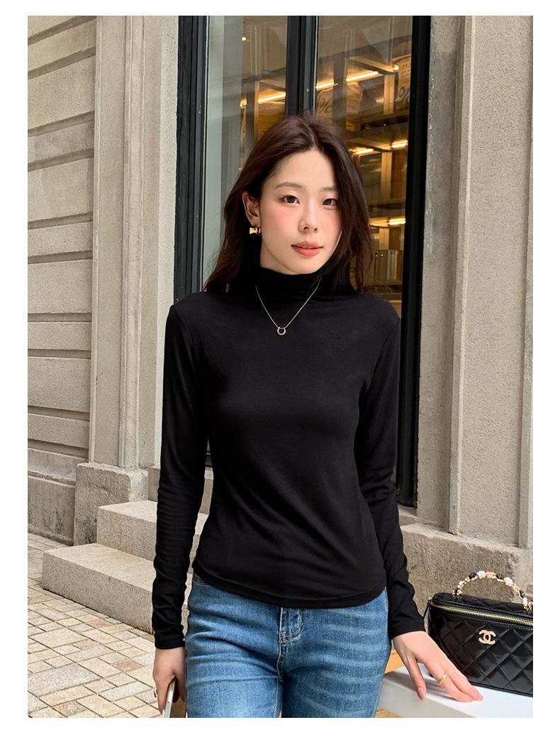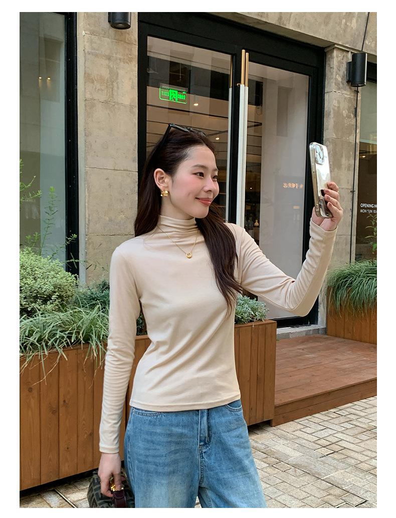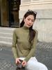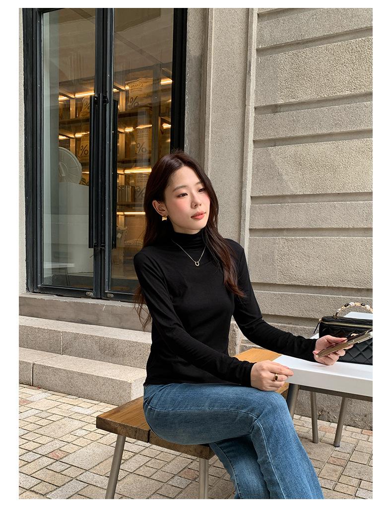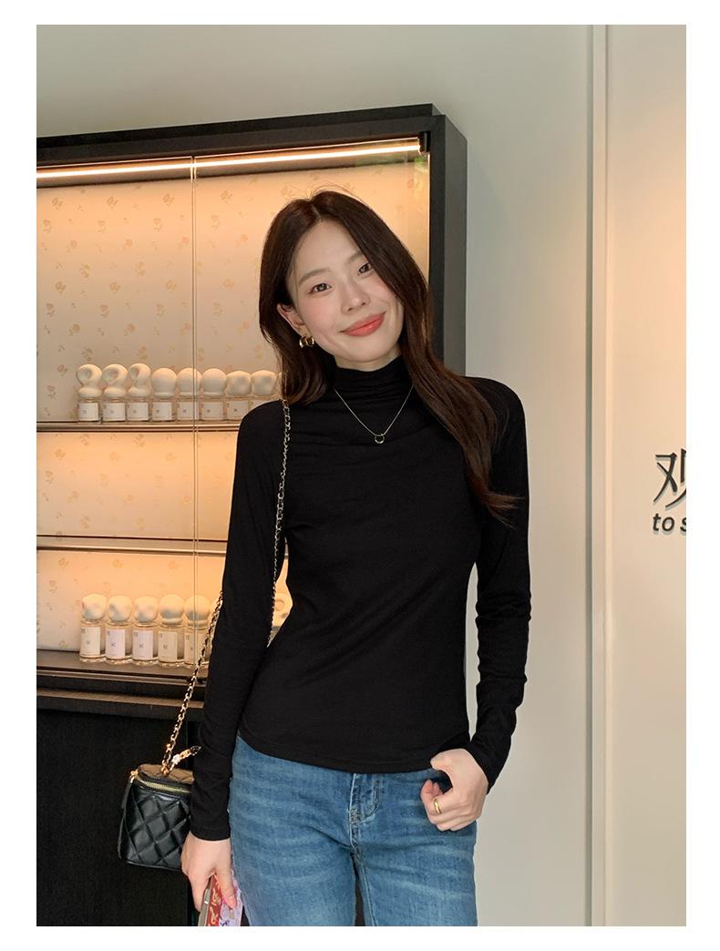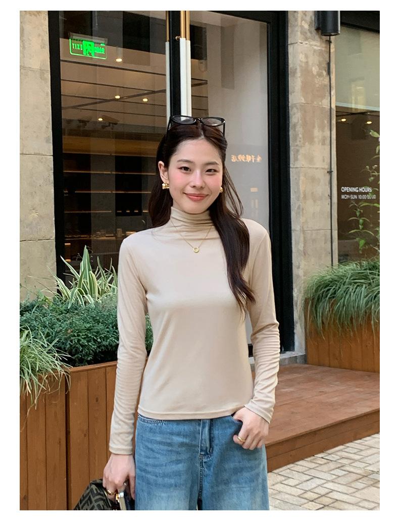 Camiseta básica para mujer con cuello alto de pelo medio, estilo primavera y otoño con camiseta larga, nueva 2025, corte ajustado, cuello mao pequeño, camiseta básica para mujer