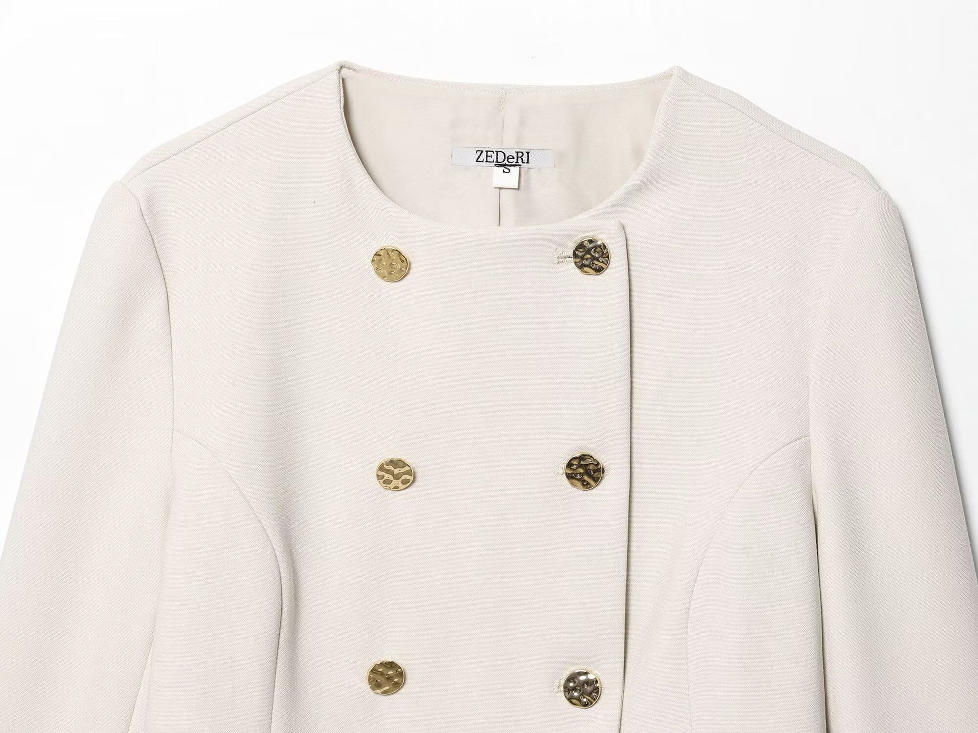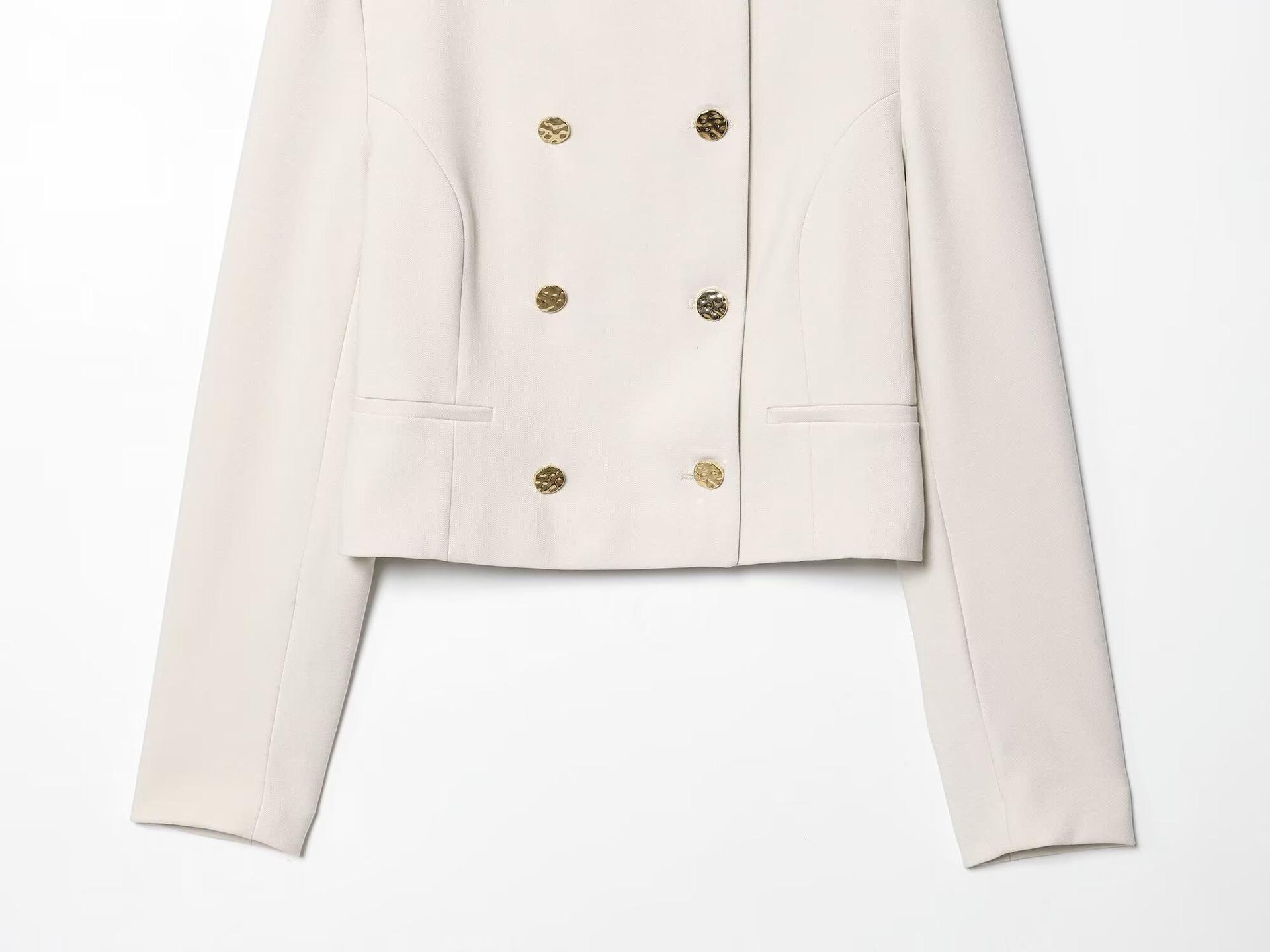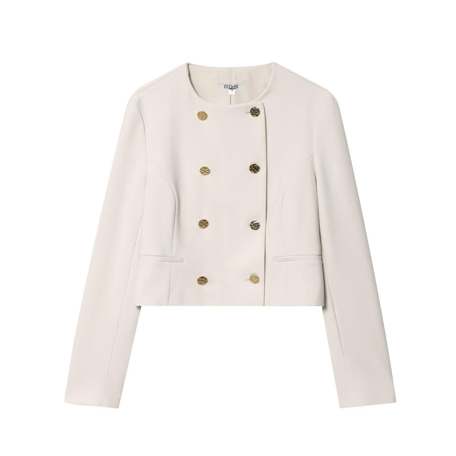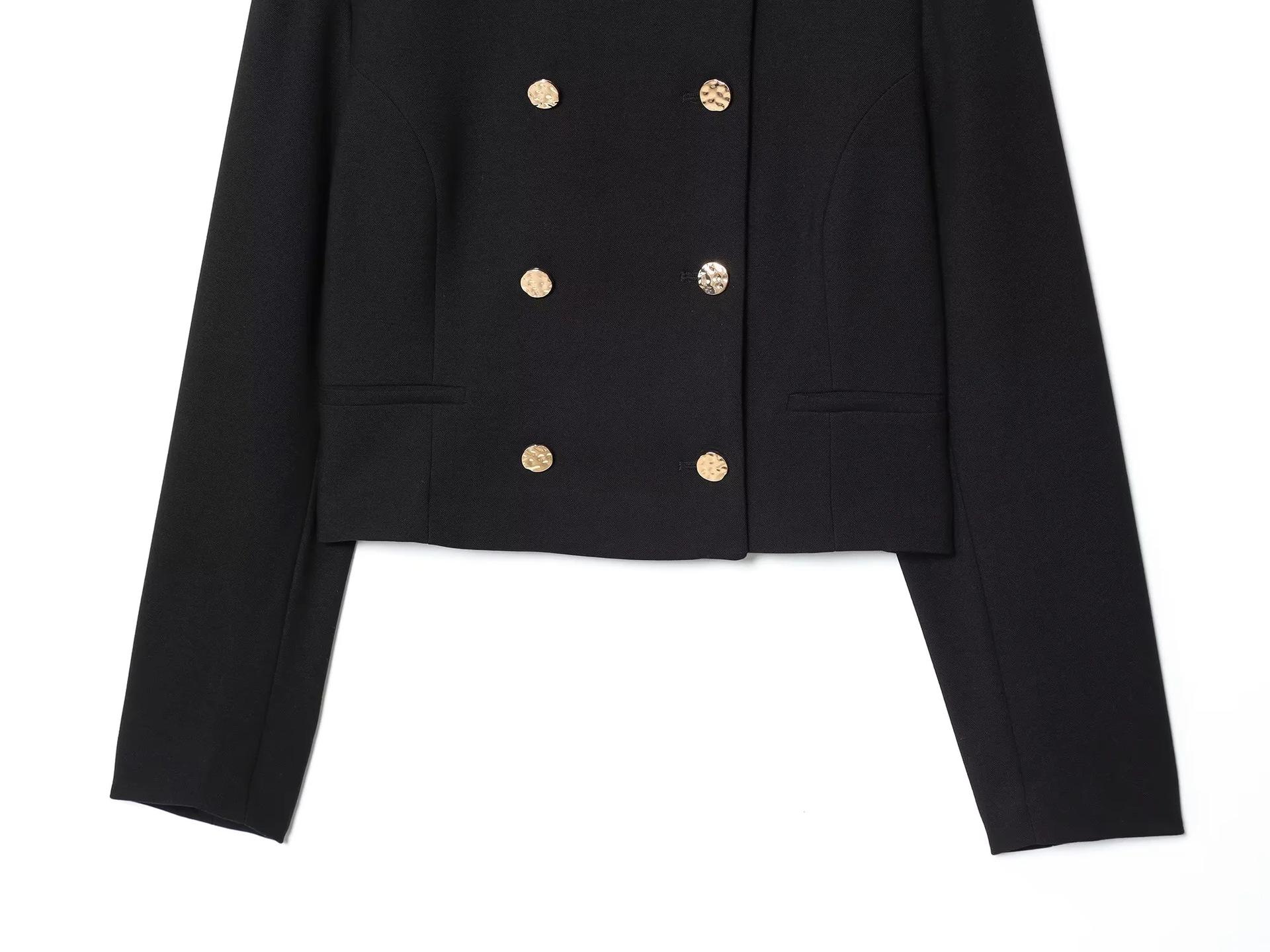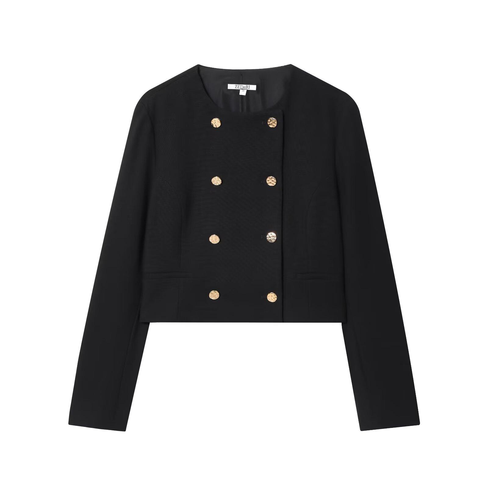 ZA AliExpress Estilo Caliente Comercio Exterior Transfronterizo Estilo Europeo y Americano Ropa de Mujer Temperamento Versátil Chaqueta de Traje Corta de Doble Botonadura