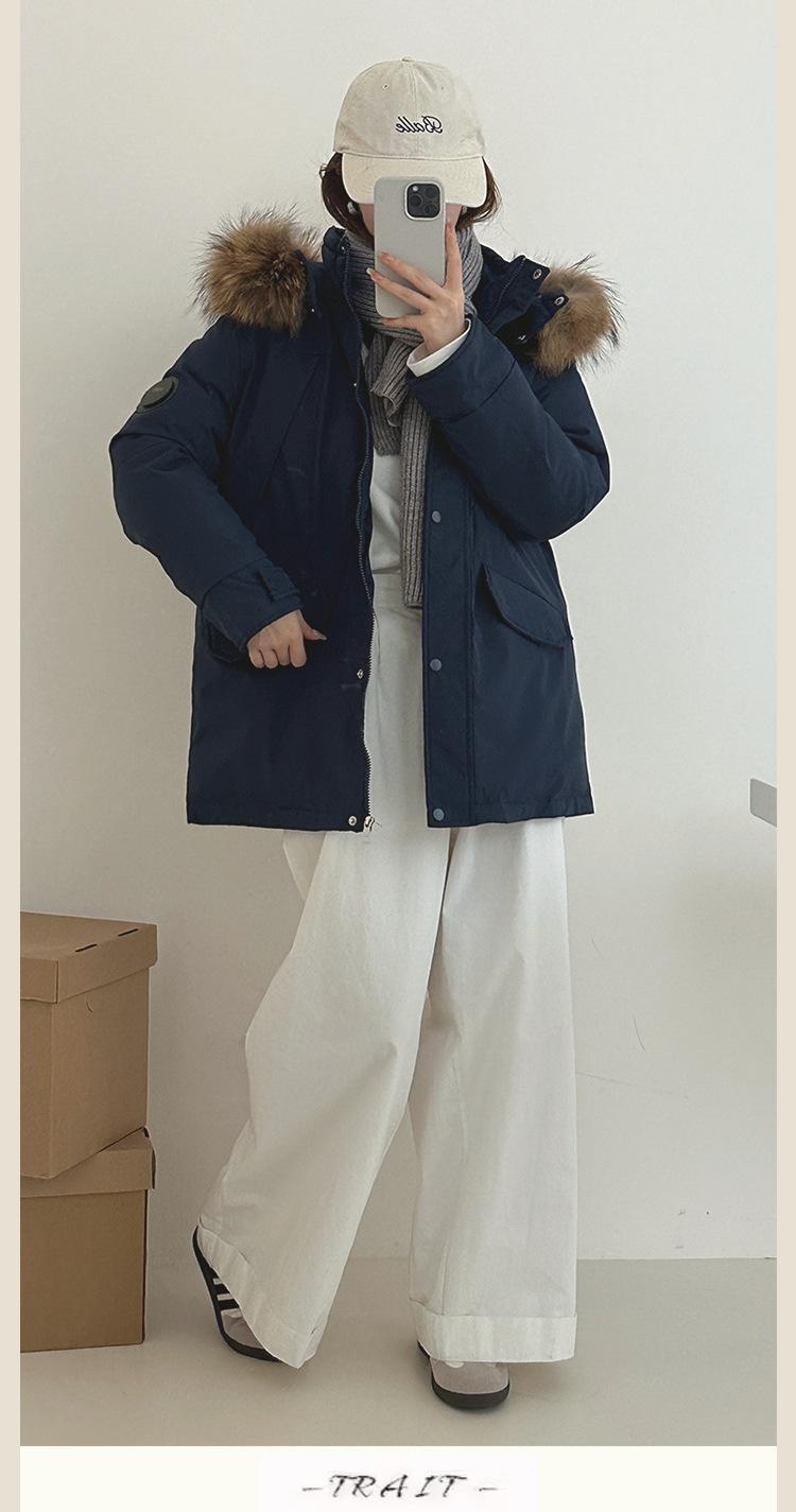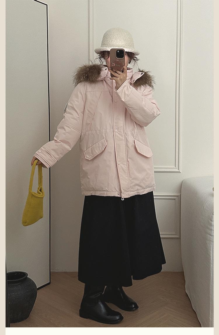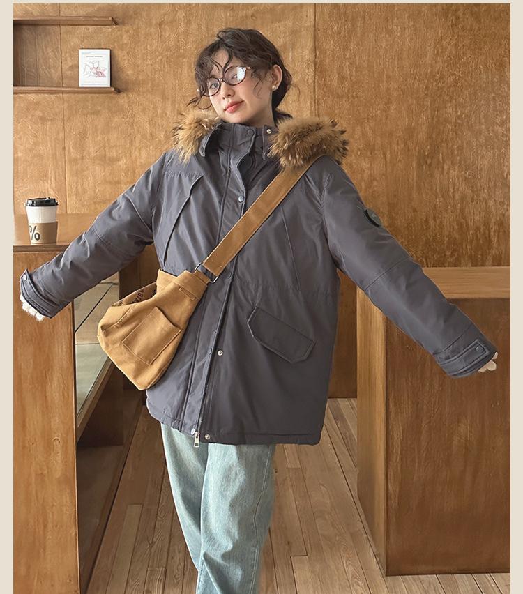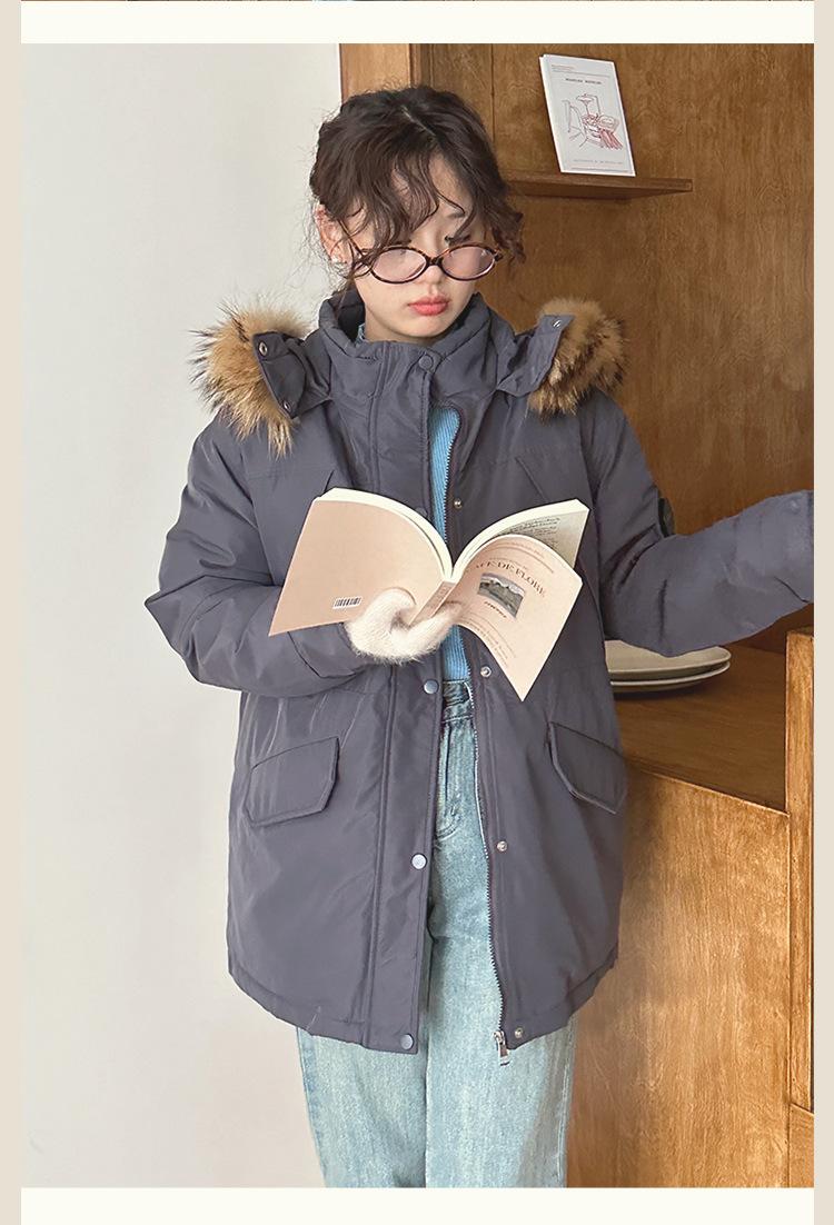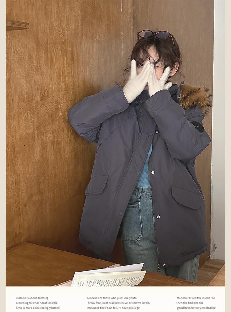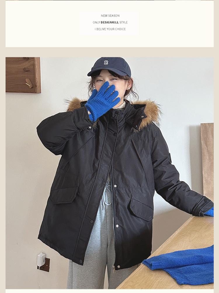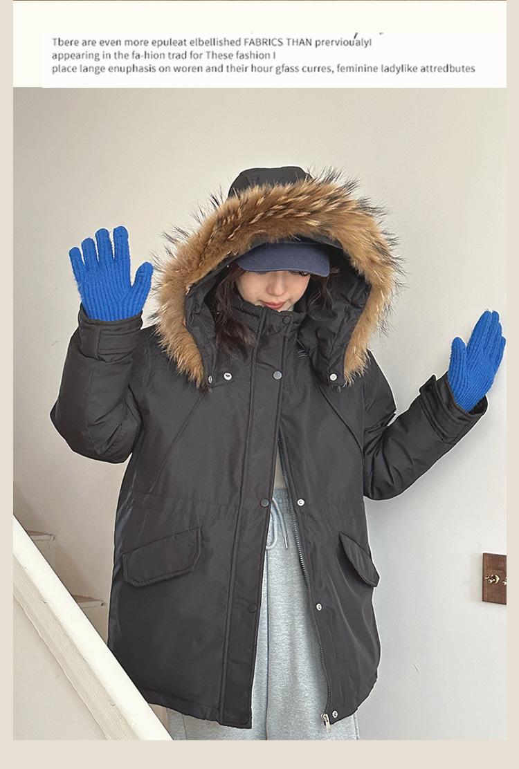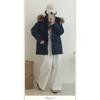 Abrigo Nuevo con Capucha Otoño/Invierno 2024 Cuello de Piel Petite Retro Versátil Abrigo Nuevo Otoño Suelto para Mujer